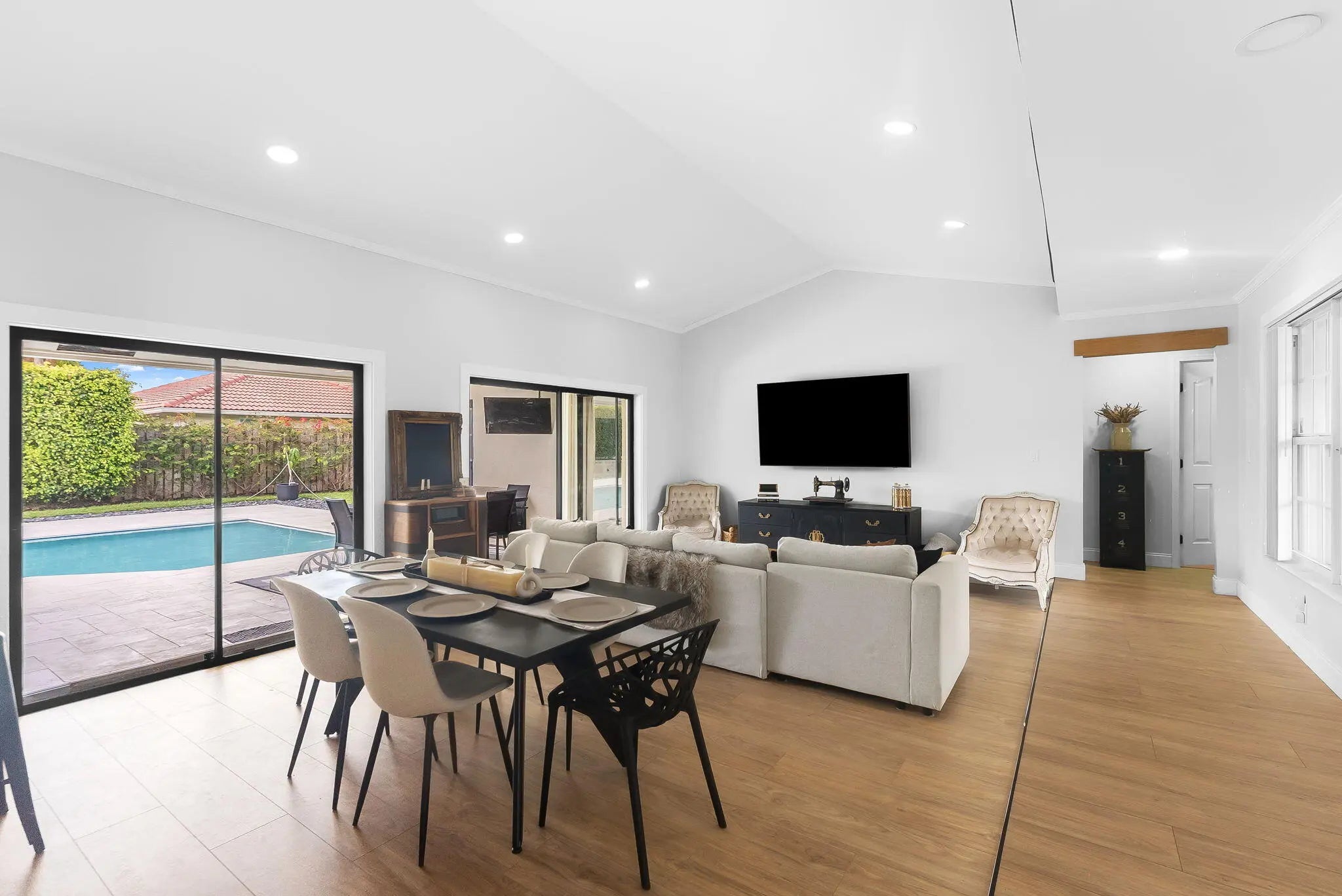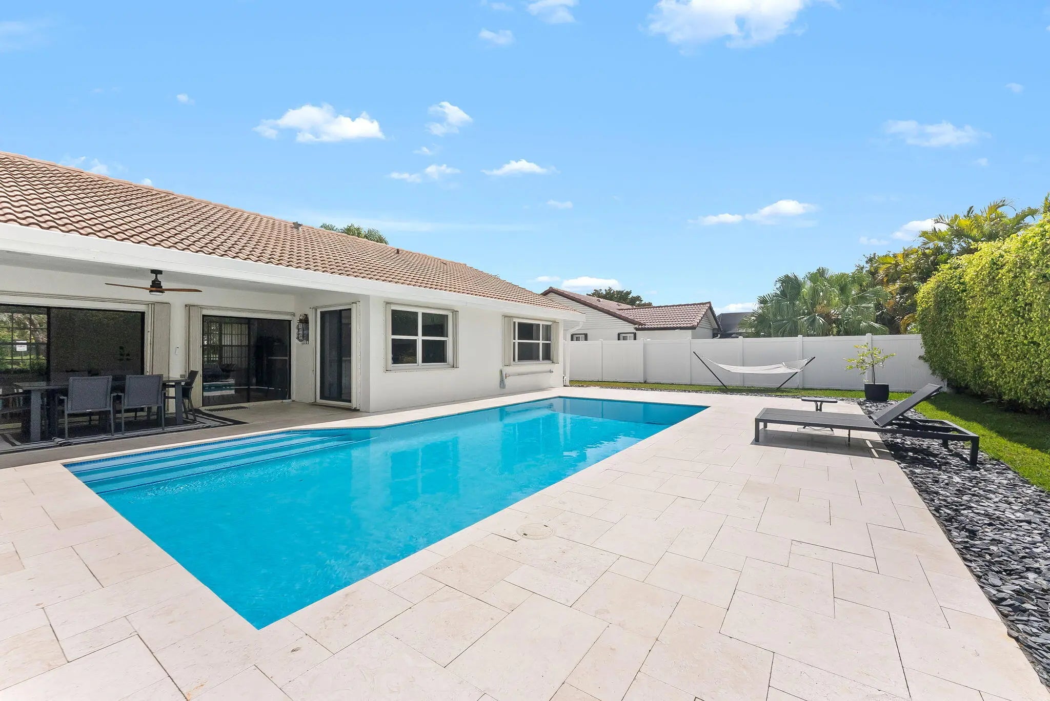Stunning 4 Bed / 2 Bath Turnkey Pool Home with Over $100K in Upgrades! Located on a beautiful park-facing lot with no front neighbors, this move-in ready home blends style, comfort, and privacy. Recent updates include new attic insulation, water heater, resurfaced pool with elegant limestone deck, and a fully remodeled custom kitchen with brand-new stainless appliances. Additional upgrades include new flooring throughout, epoxy garage floor, fresh interior and exterior paint, renovated bathroom with smart toilet, built-in closets, smart lighting with step-down LED accents, plus new fencing and landscaping. Perfect for relaxing or entertaining... and yes, there's even a secret room. Come see it for yourself!