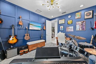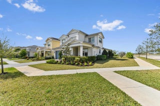 Welcome to Arden, a beautifully planned gated community offering resort-style living and modern comfort. This spacious 2-story home with OVER $100,000 in upgrades, sits on a desirable corner lot and features 2,549 sq ft of living space, 5 total bedrooms, 3 full bathrooms, a large upstairs loft along with a 2-car attached garage. Step inside to a welcoming foyer that opens to bright dining, living, and kitchen areas with custom tile flooring throughout the main living spaces. The kitchen is designed for both everyday living and entertaining, complete with an island, water filtration and two ovens. The master suite is conveniently located on the main floor & features a private bathroom with dual sinks & a separate shower. There is a guest bedroom & full bathroom on the first floor as well! All bedrooms are custom carpeted for comfort and are spill resistant. The home also includes a laundry room with a washer, dryer, and utility tub. A top-of-the-line air conditioning and air filtration system adds comfort and efficiency year-round. Enjoy outdoor living in the screened and covered patio, equipped with gas and water hookups for outside kitchen install, electrical connection for a TV, and prewiring for a future pool, perfect for entertaining and west facing for colorful sunsets. Residents of Arden enjoy exceptional amenities including the new clubhouse which is just steps way and will feature a heated pool, playground, pickleball courts and more. The Lakehouse has a resort-style pool, Fitness Center, Arden Farm, scenic trails, sport courts and kayak launch. Experience the perfect blend of comfort, functionality, and resort-style community living in Arden.
