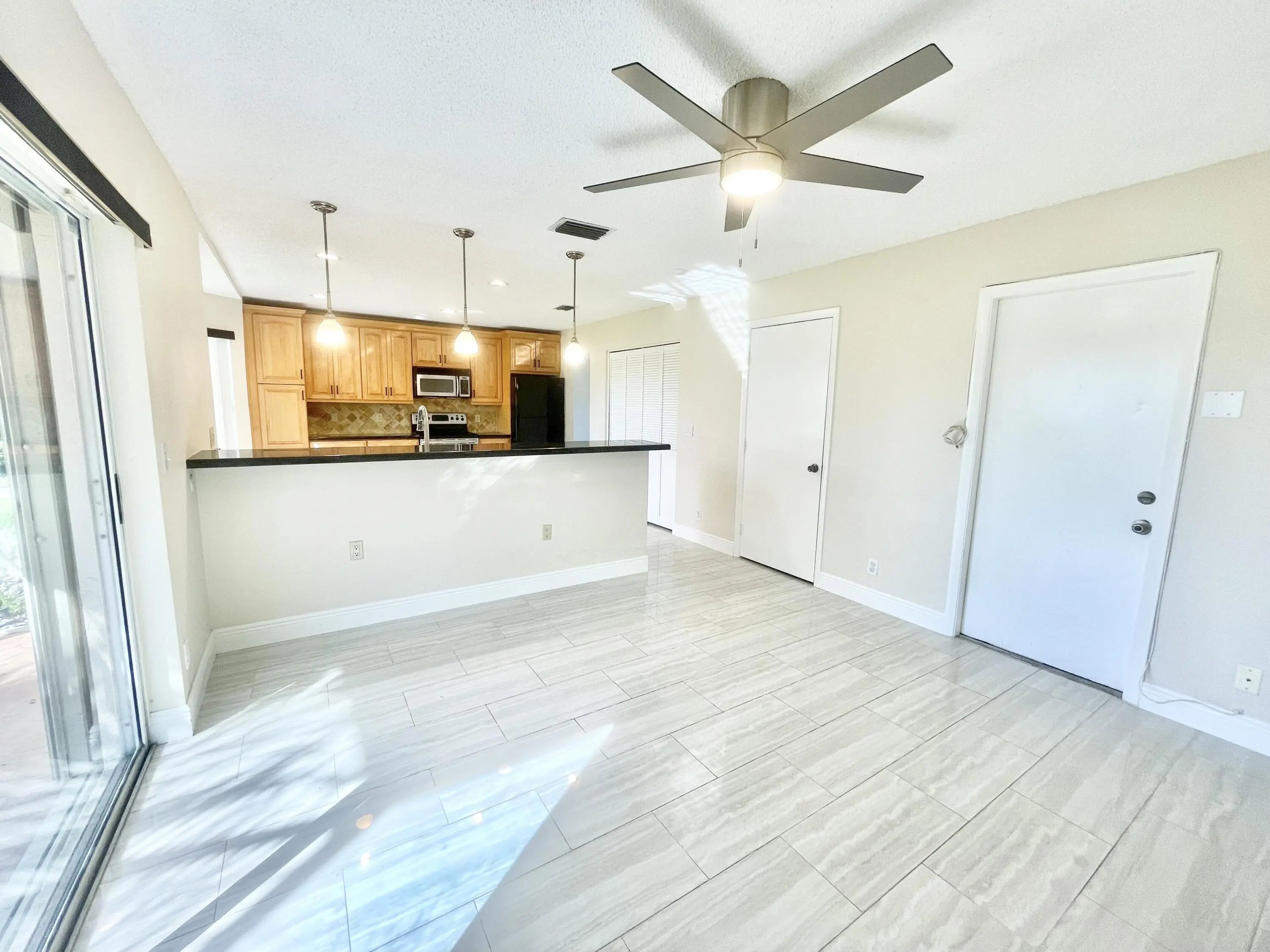 Light and bright two-story LAKE FRONT HOME with screened patio space. Immaculate throughout and updated! All bedrooms upstairs, accordion hurricane shutters throughout, beautifully renovated kitchen w/wood cabinets, granite countertops & stainless steel Range, Microwave, + Dishwasher. Sliding glass doors in the family room overlooking screened patio & panoramic tranquil lake views. Spacious Backyard, one of the largest lots in the community! Accordion Hurricane Shutters throughout. The master bedroom has a large walk-in closet overlooking lake & updated master bath. All baths have been remodeled. HOA includes community pool & tennis courts. Convenient to FLA Turnpike, Sawgrass Expressway, shopping & dining. Walk to pool. Pets okay. Landlord takes care of lawn and pest control.