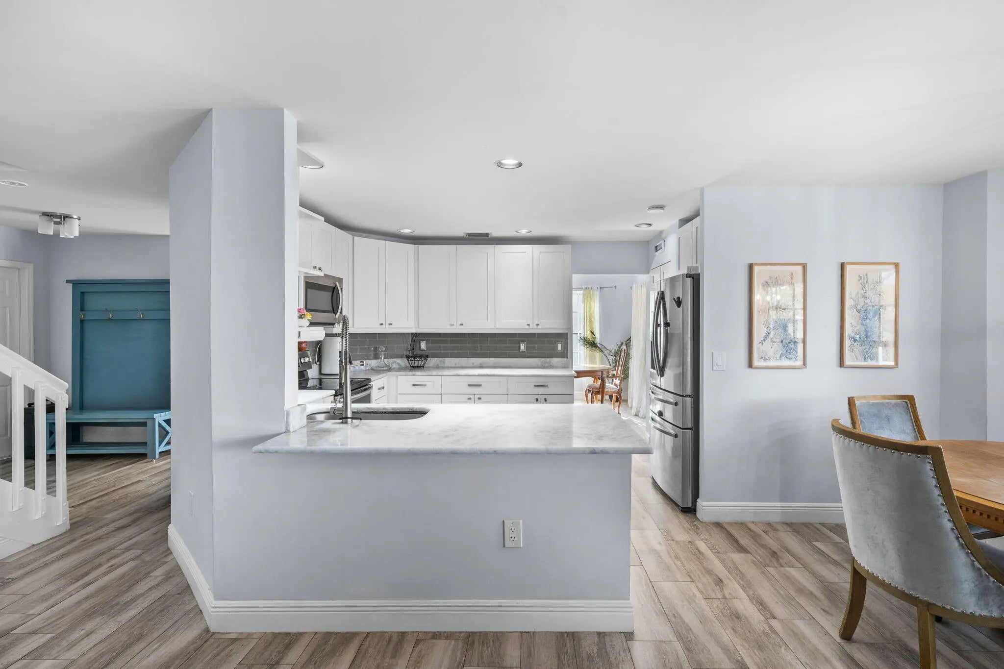 Beautifully renovated home in the highly desirable Greens at Carolina Club, offering peaceful green area in the back. This move-in ready residence features a bright open floor plan with modern upgrades throughout. The updated kitchen showcases white shaker cabinetry, quartz countertops, stainless steel appliances, and a large island that opens seamlessly to the living and dining areas, perfect for everyday living and entertaining. The main level features elegant porcelain tile flooring, while the 2nd floor offers high quality luxury vinyl plank flooring, with no carpet throughout the home. Spacious primary suite with a fully renovated spa-style bathroom, complete with a soaking tub and oversized walk in shower. Newer A/C (2020), roof (2022) and updated plumbing throughout.