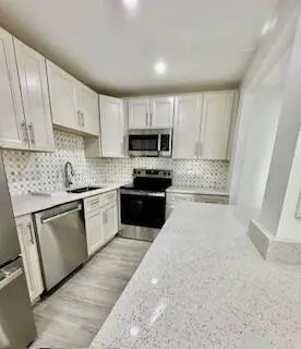 Nice corner unit on the first floor. This is a complete remodeled unit with new appliances including dishwasher. Basic cable is included. The best entertained senior living in South Florida. Bus services are available all day.