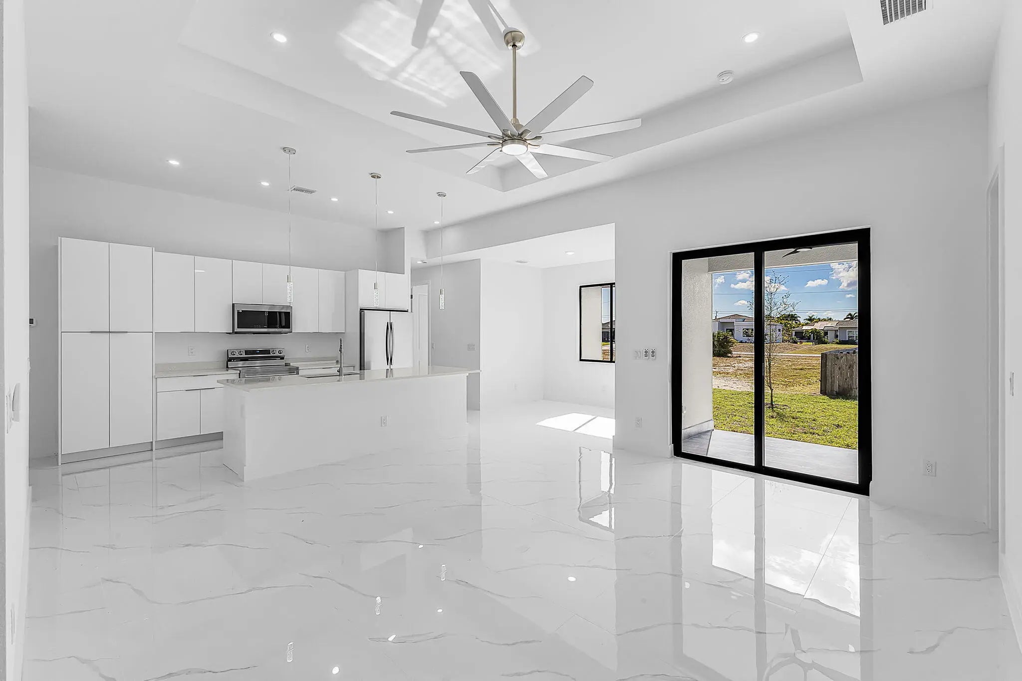 Located in the highly coveted NW Cape Coral area, west of Burnt Store Road — one of the most desirable addresses in the city. This stunning 2026 new construction 4-bed, 3-bath home sits on a south-facing rear lot with beautiful water views toward open sailing water. Featuring high ceilings, premium finishes throughout, and a generous open floor plan ideal for entertaining. No flood insurance required. Pool-ready lot with southern exposure — enjoy Florida sunshine all day. Minutes from Coral Oaks Golf Course, Burnt Store Boat Ramp, and the future Seven Islands waterfront development. Move-in ready — your Southwest Florida dream home awaits.