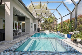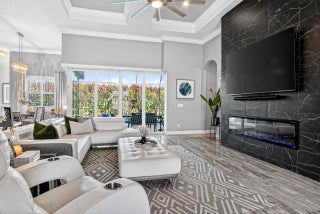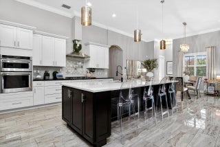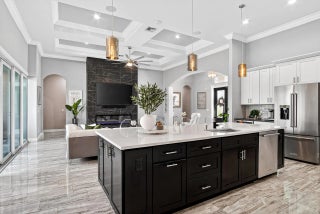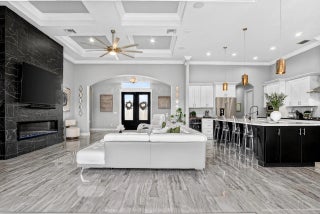 Stunning custom home located on a quiet cul-de-sac in the desirable Country Club Estates community of Port St. Lucie. This 4-bedroom, 3.5-bath residence features elegant architectural details including tray ceilings, a four-way coffered ceiling in the living room, and a 12-foot accent wall with a 75-inch smart electric fireplace. The gourmet kitchen offers a 36-inch KitchenAid five-burner gas range with griddle, pot filler, beverage wine cooler, and a custom walk-in pantry. The spacious primary suite features a freestanding soaking tub, oversized sport shower, and custom closet. Enjoy seamless indoor-outdoor living with zero-edge sliding doors leading to a private backyard with saltwater pool and spa with gas heater. Full Feature Sheet Available!
