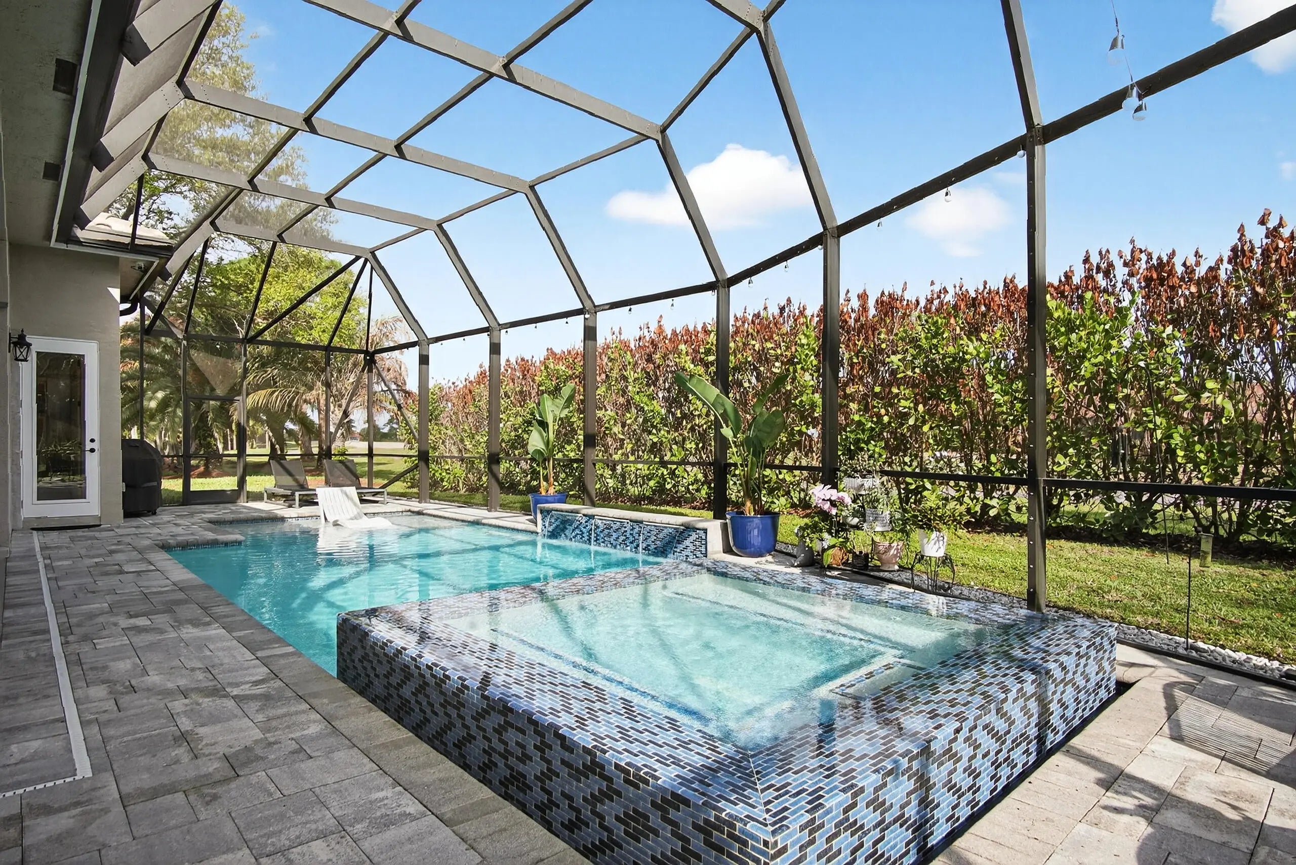 Heated, In Ground, Pool/Spa Combo, Screen Enclosure, Salt Water, Private