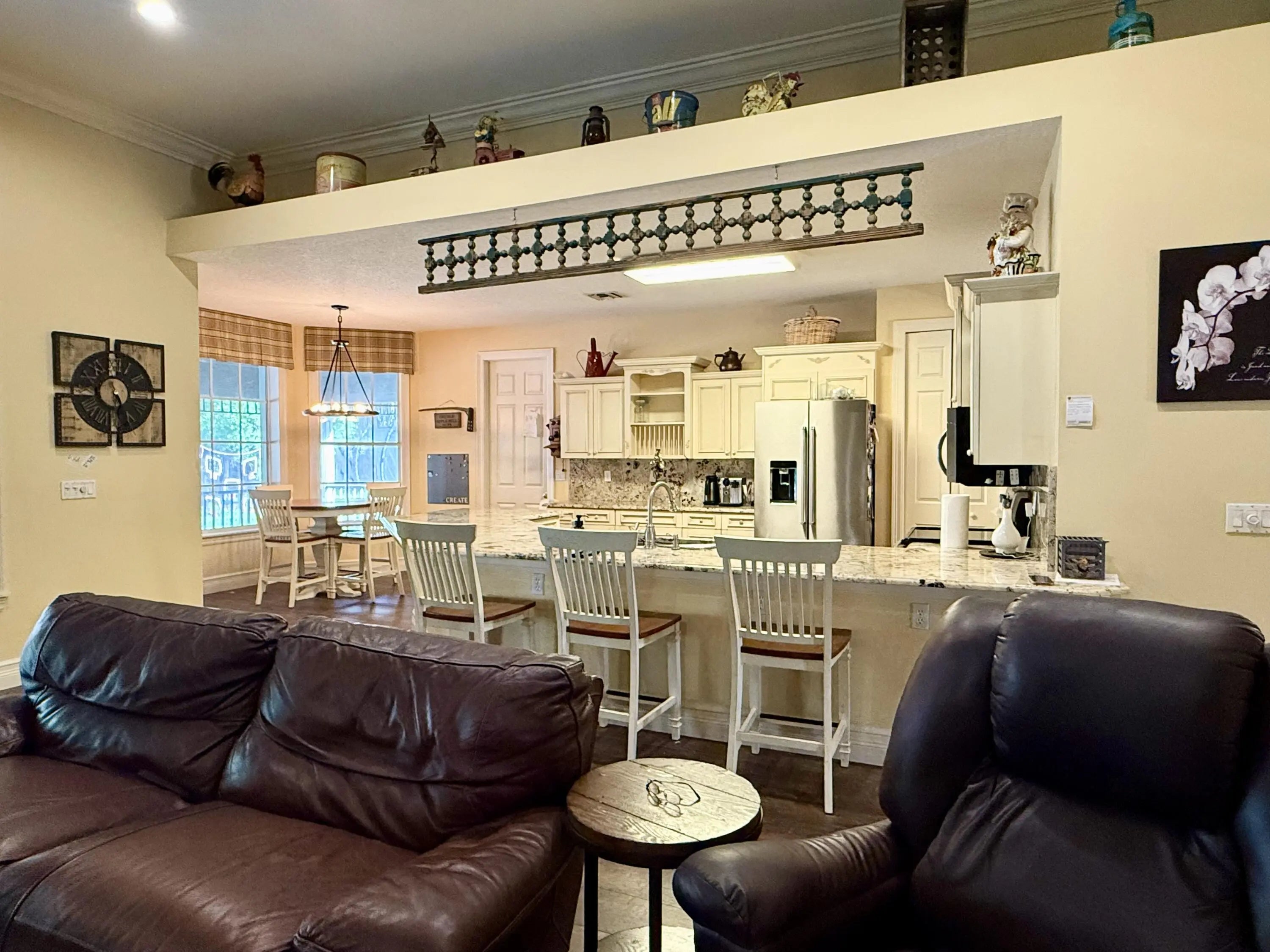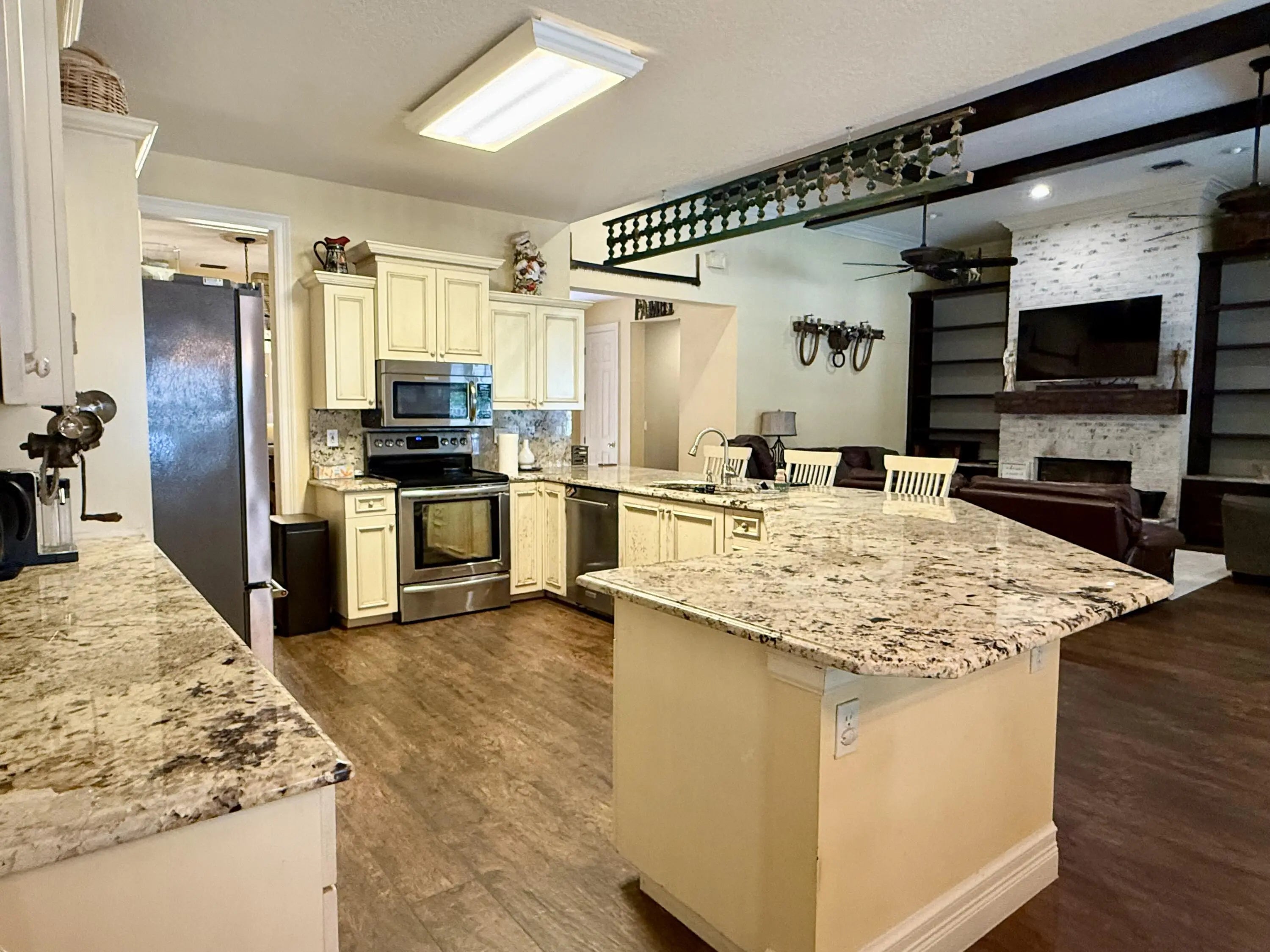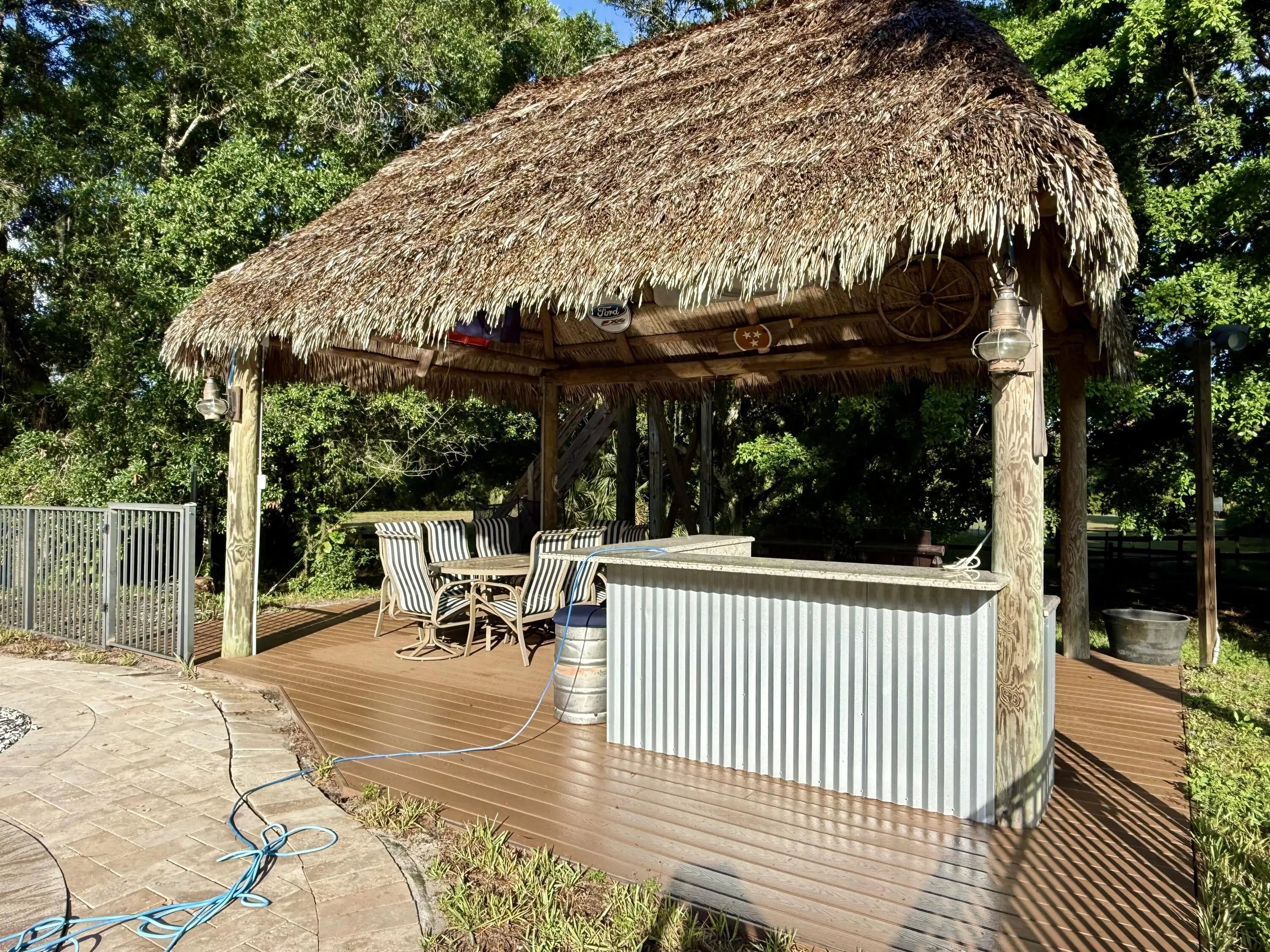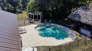 Located down the coveted historic Taylor Road in Jupiter Farms this CBS 5 bed 3.5 bath 5 car garage POOL home w/ 2024 Standing Seam Metal Roof on 5 ACRES has endless possibilities. With tastefully designed updates, the interior offers a bright & open living area, well designed kitchen, convenient Office/Den & inside laundry. The primary bedroom opening to the pool has a newly renovated bathroom & 17'x13' closet + extra closet for add'l storage. A private wing brings you to 4 more bedrooms & 2 updated bathrooms. Pool area is ready for festive entertaining w/ a built in firepit, gazebo with outside kitchen & a ZIP line! Plenty of storage & parking w/ a 3 car attached garage, 2 car detached garage PLUS 45'x18' Carport, Barn w/5 Stalls, open pasture, mature oaks all surrounded by preserves.