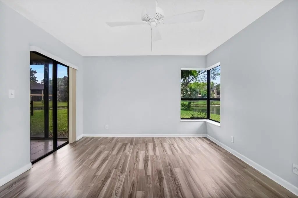Experience all that the Township located in Coconut Creek has to offer! Community offers resort like amenities. This exceptional 2/2 s first floor corner unit located in the desirable Pond Apple Place 4. Wake up to your morning coffee to breath taking/serene lakeviews from you screen patio that brings the water right to all windows from every corner of the condo. Lush green area to enjoy which wraps around entire unit. Light & bright fully equipped kitchen w/gorgeous quartz counter tops, & large pantry. Functional split bedroom plan with upgraded primary bath. Beautiful wood flooring throughout. Almost new A/C and hot water heater. Interior Washer/Dryer for your convenience!!!! Association requires 15% down for financing. No Leasing