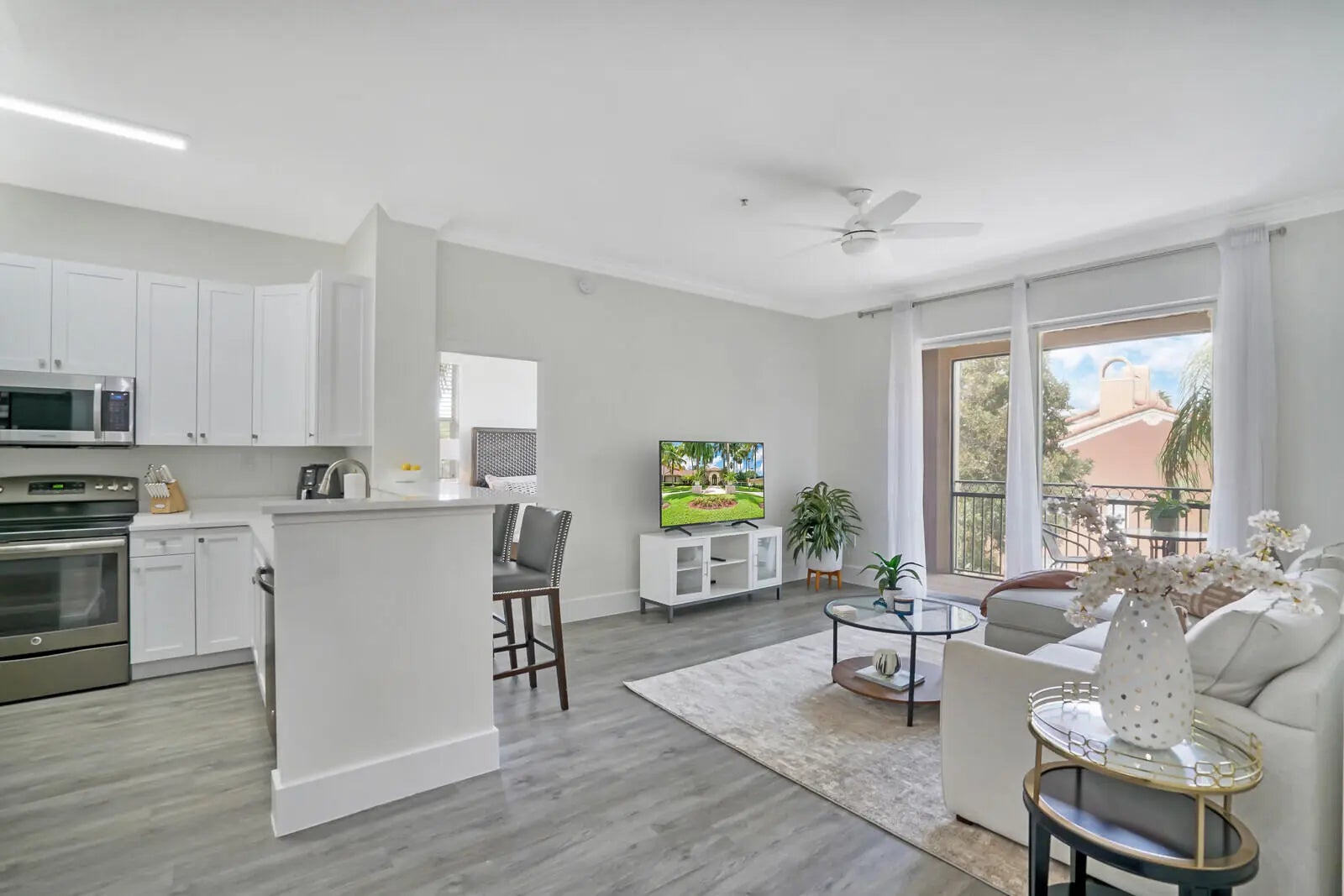 Flexible rental terms available. Beautiful two bedroom two bath condo newly remodeled with all new furnishings plus a detached oversized one car garage. The washer and dryer is inside the unit just off the kitchen. The community has a pool, clubhouse, tennis courts and fitness center. Gated community for security. Centrally located in Wellington, near the polo grounds, great shopping and restaurants.