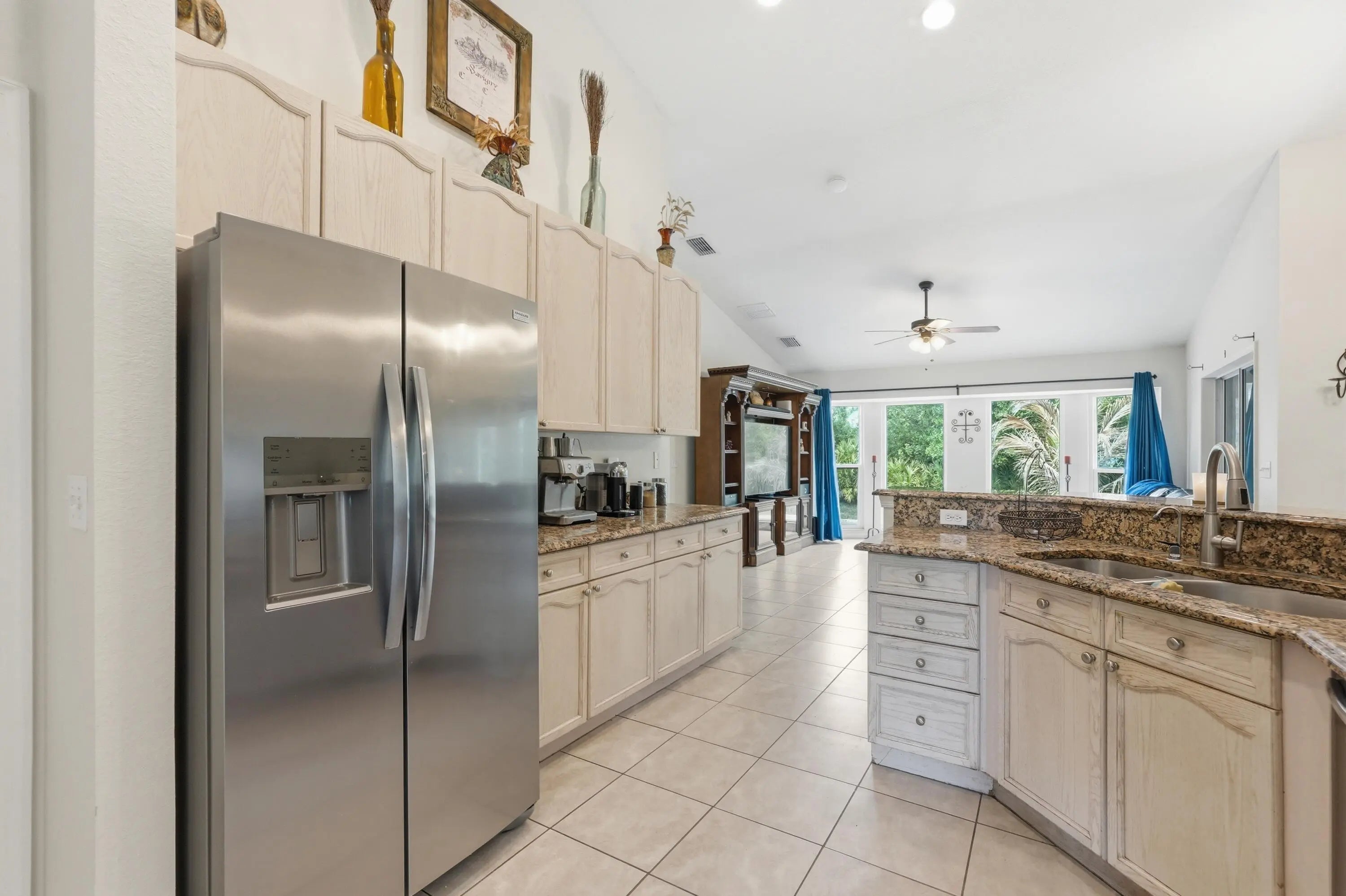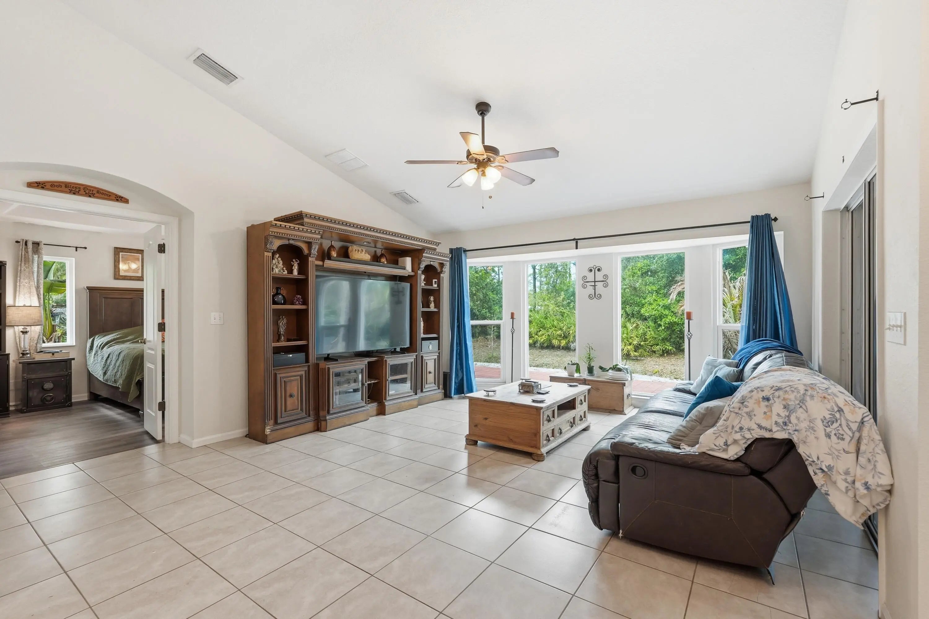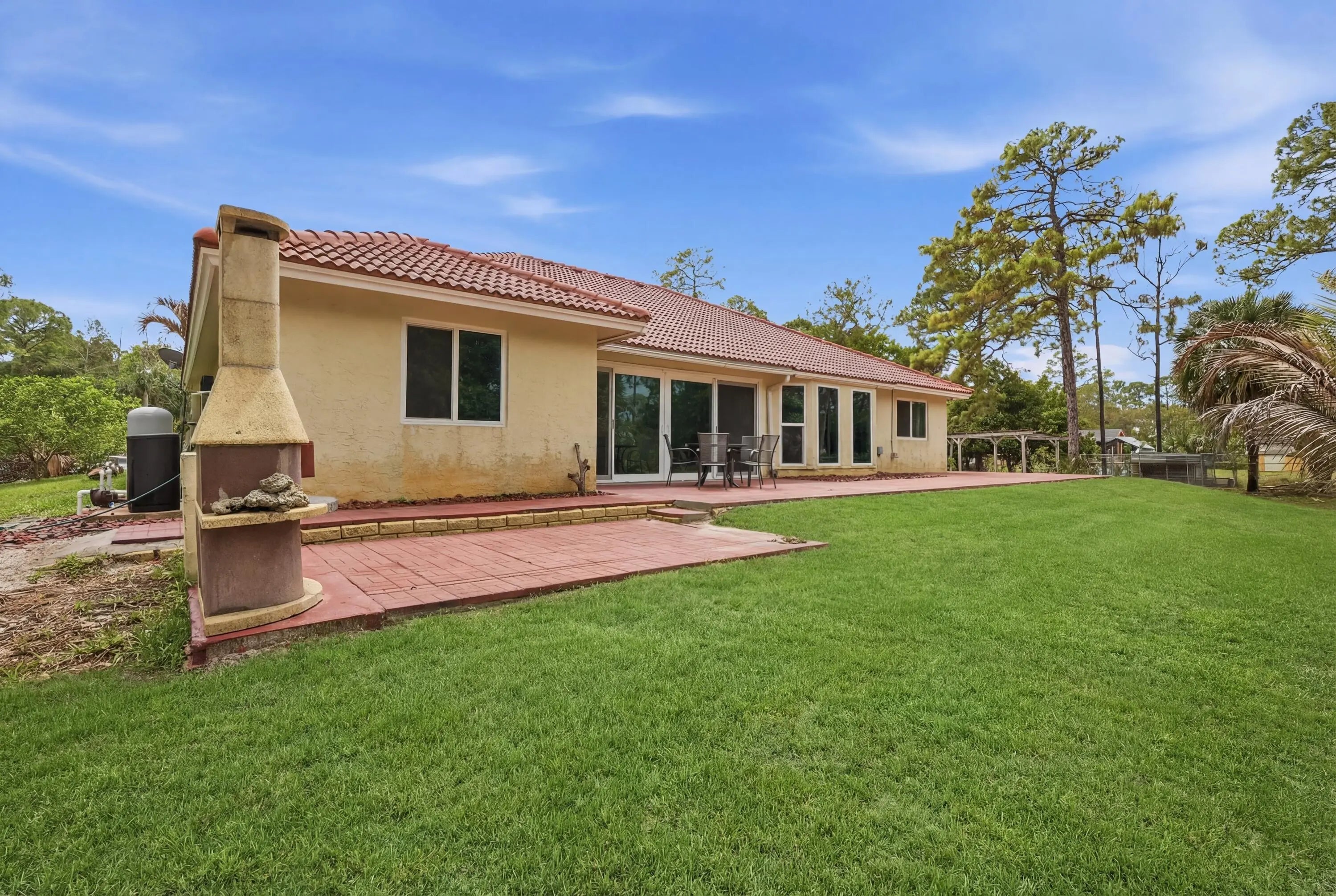 Located on a spacious 1.14-acre lot in the desirable Acreage community of Loxahatchee, this well-maintained home offers privacy and flexibility with approximately 2,176 sq ft of living space. The split floor plan features 4 bedrooms and 4 full bathrooms, including a separate-entry suite ideal for guests, in-laws, or a home office. Interior highlights include vaulted ceilings, decorative archways, crown molding, and an open kitchen with granite countertops and custom cabinetry overlooking the family room. All 2024 stainless steel Frigidaire Gallery appliances, 2021 AC, and New South Impact Windows installed and new laminate flooring in 2026. 10' x 20' storage shed. The expansive lot has plenty of room for a pool, workshop, or outdoor living space. Separate-entry guest suite ideal for multigenerational living, rental potential, or home office. Fully fenced 1.14-acre lot with ample room for boats, RVs, animals, pool, or workshop. No HOA restrictions. Enjoy peaceful rural living with no HOA while still being conveniently located near local schools, parks, and everyday amenities. AC 10-yr warranty, Impact windows lifetime warranty, 2025 Samsung washer/dryer.
