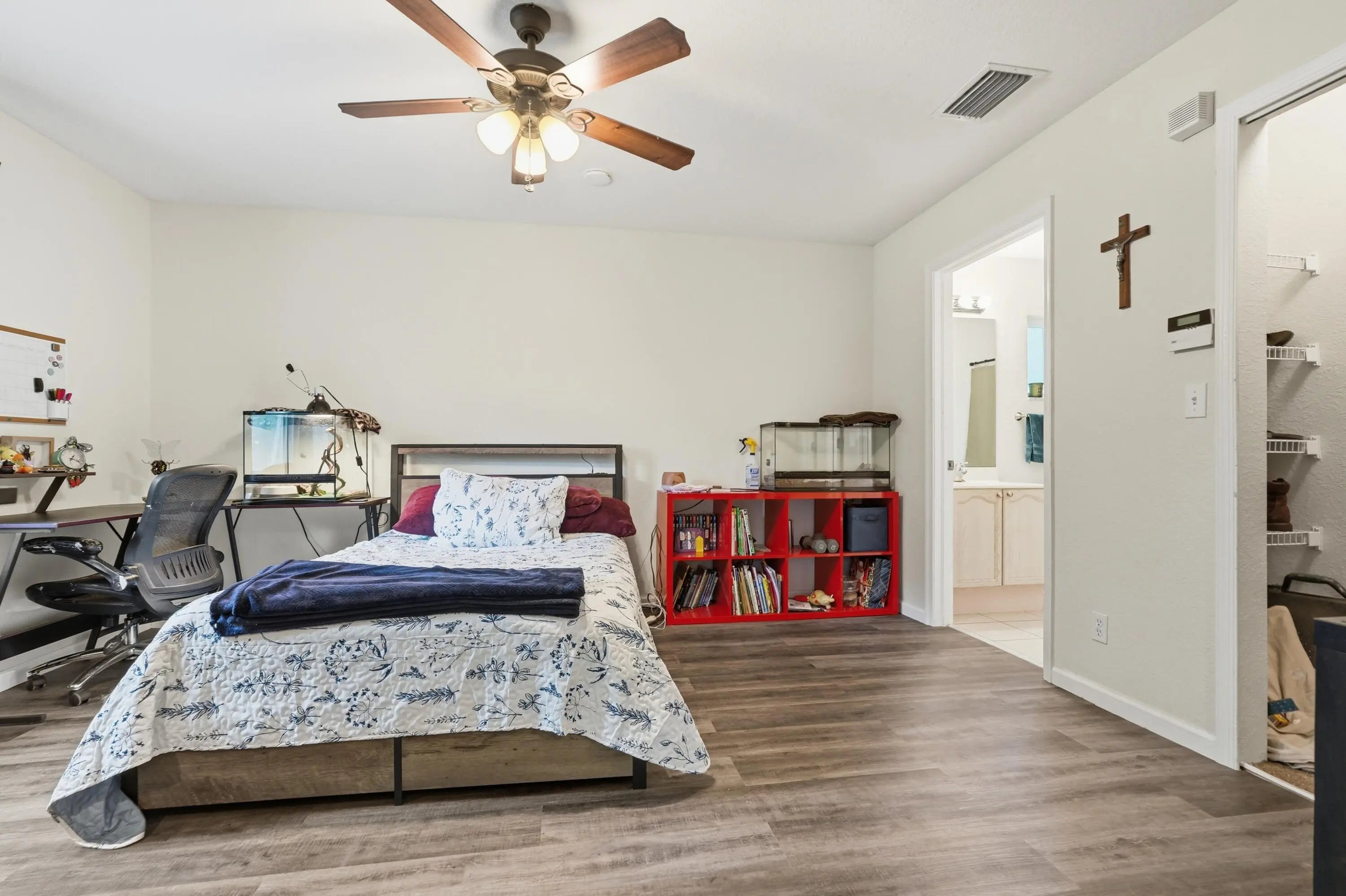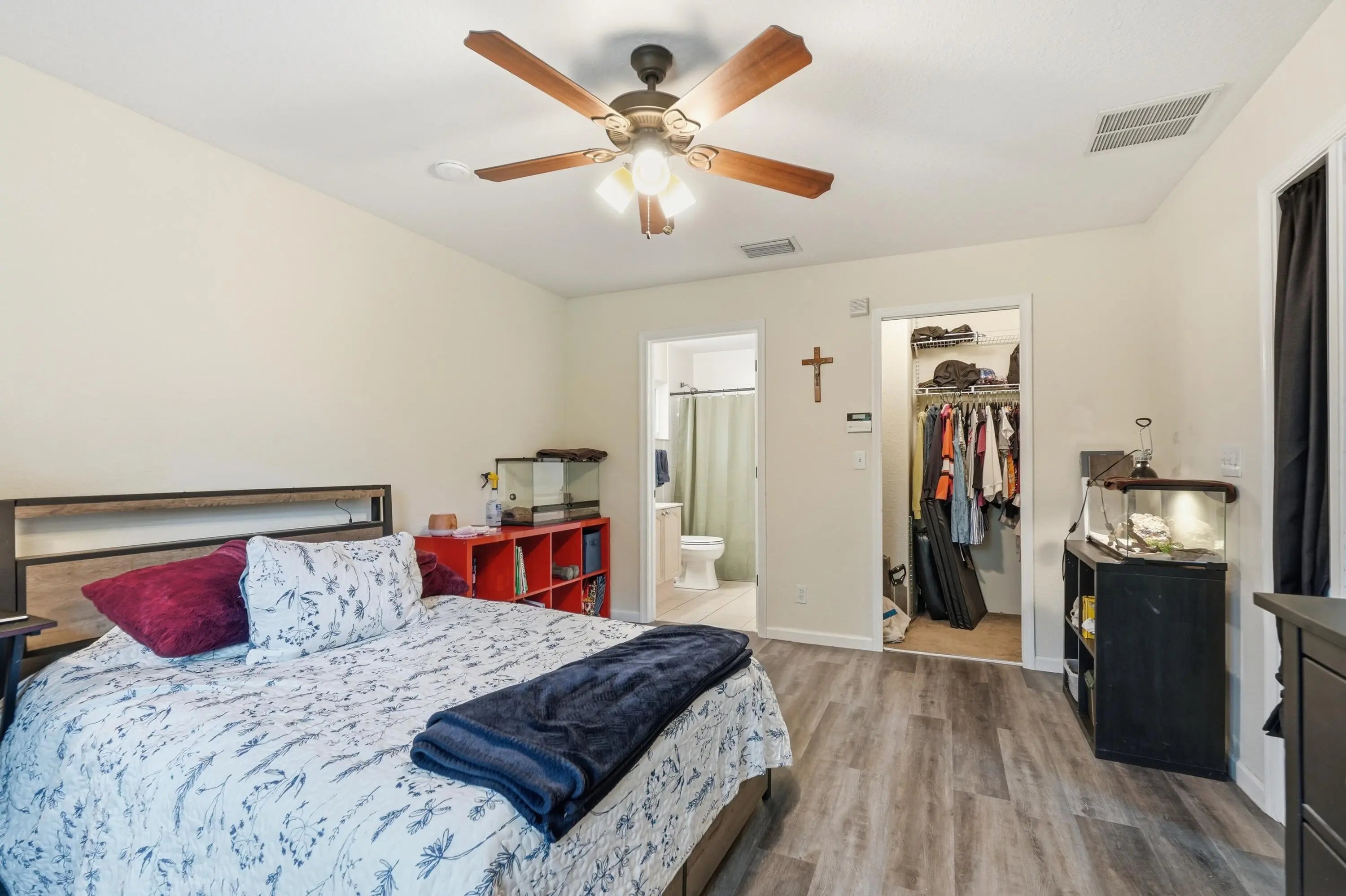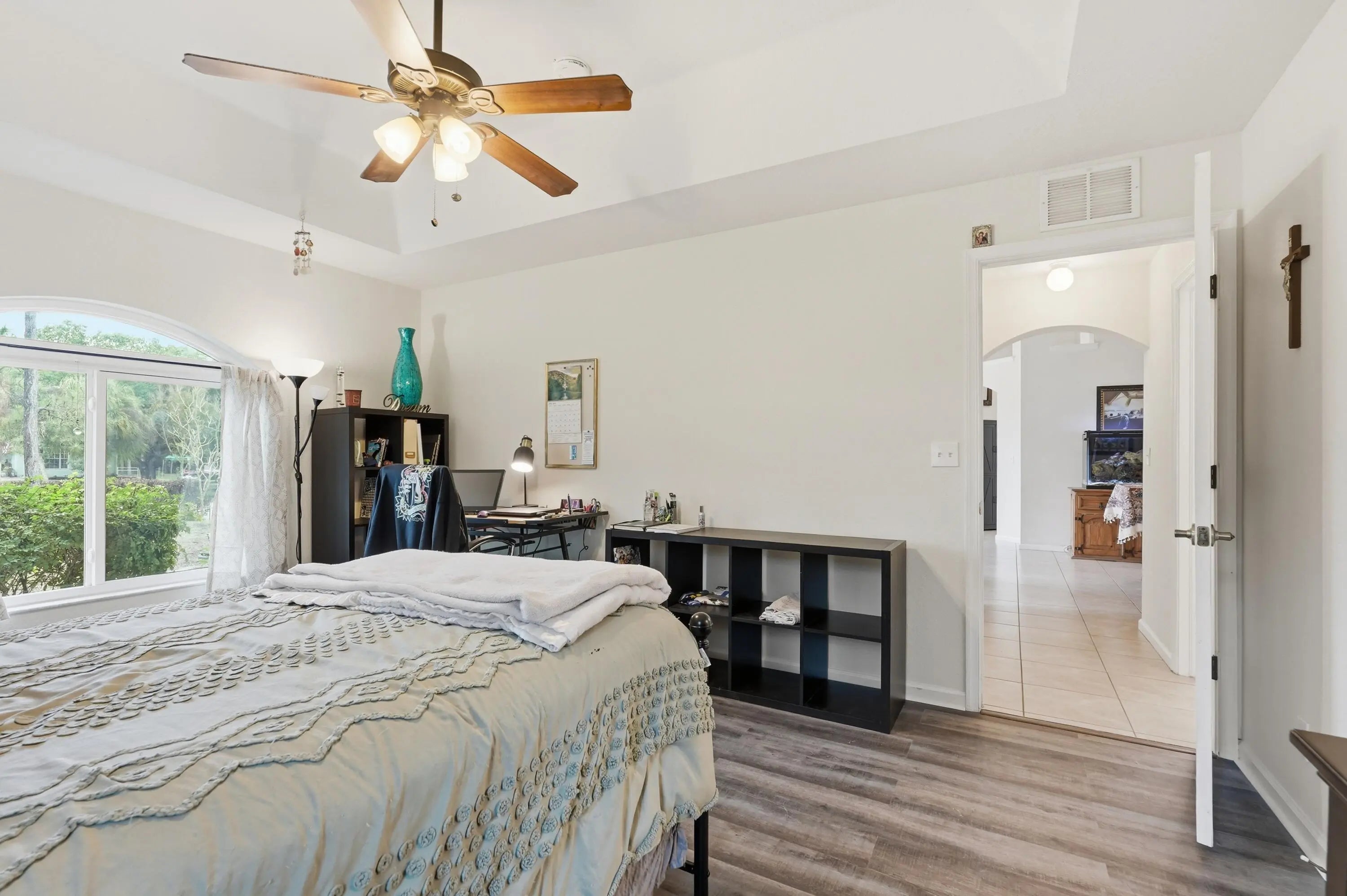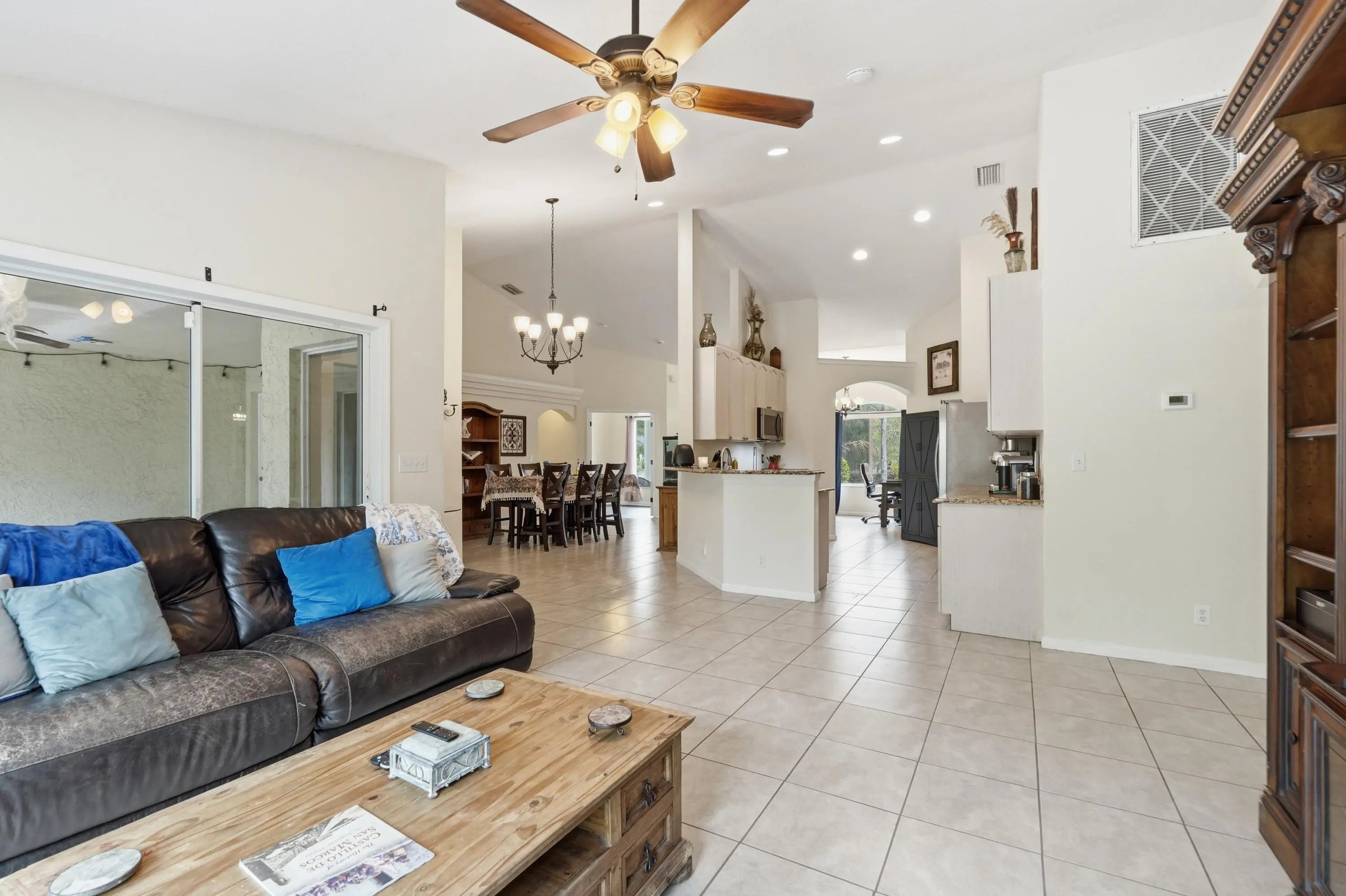 Located on a spacious 1.14-acre lot in the desirable Acreage community of Loxahatchee, this well-maintained home offers privacy and flexibility with approximately 2,176 sq ft of living space. The split floor plan features 4 bedrooms and 4 full bathrooms, including a separate-entry suite ideal for guests, in-laws, or a home office. Interior highlights include vaulted ceilings, decorative archways, crown molding, and an open kitchen with granite countertops and custom cabinetry overlooking the family room. All 2024 stainless steel Frigidaire Gallery appliances, 2021 AC, and New South Impact Windows installed and new laminate flooring in 2026. 10' x 20' storage shed. The expansive lot has plenty of room for a pool, workshop, or outdoor living space. Separate-entry guest suite ideal for multigenerational living, rental potential, or home office. Fully fenced 1.14-acre lot with ample room for boats, RVs, animals, pool, or workshop. No HOA restrictions. Enjoy peaceful rural living with no HOA while still being conveniently located near local schools, parks, and everyday amenities. AC 10-yr warranty, Impact windows lifetime warranty, 2025 Samsung washer/dryer.