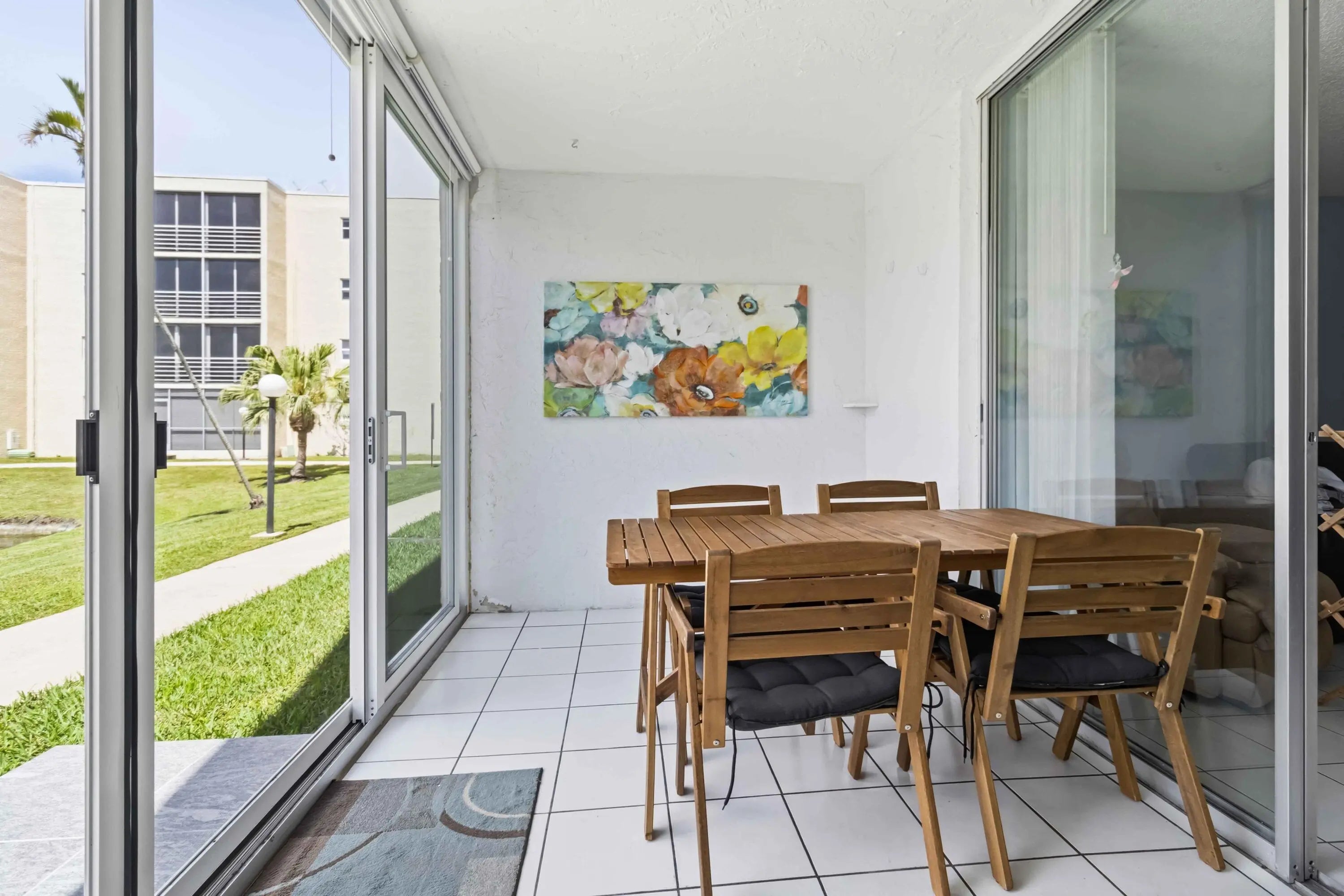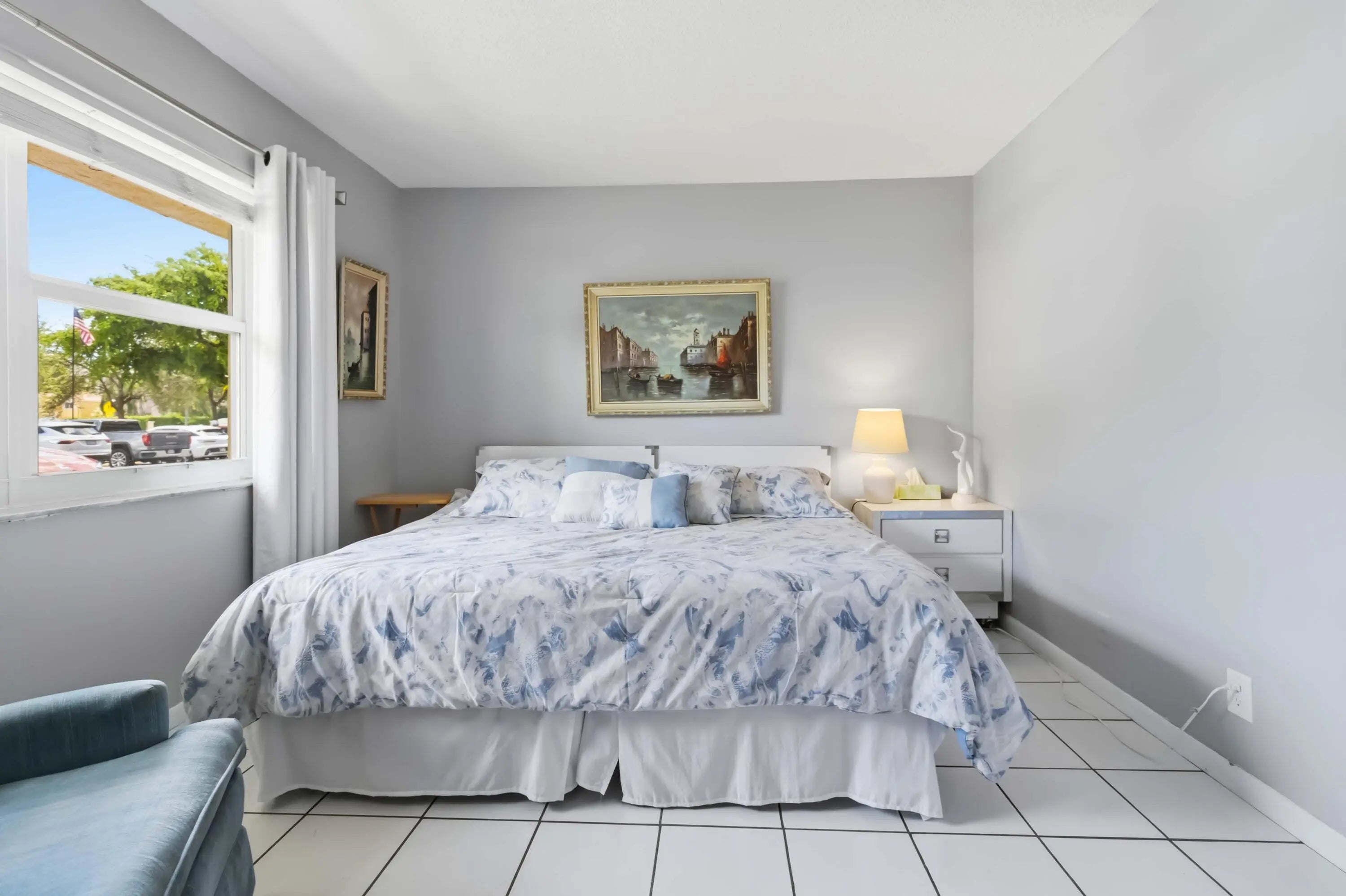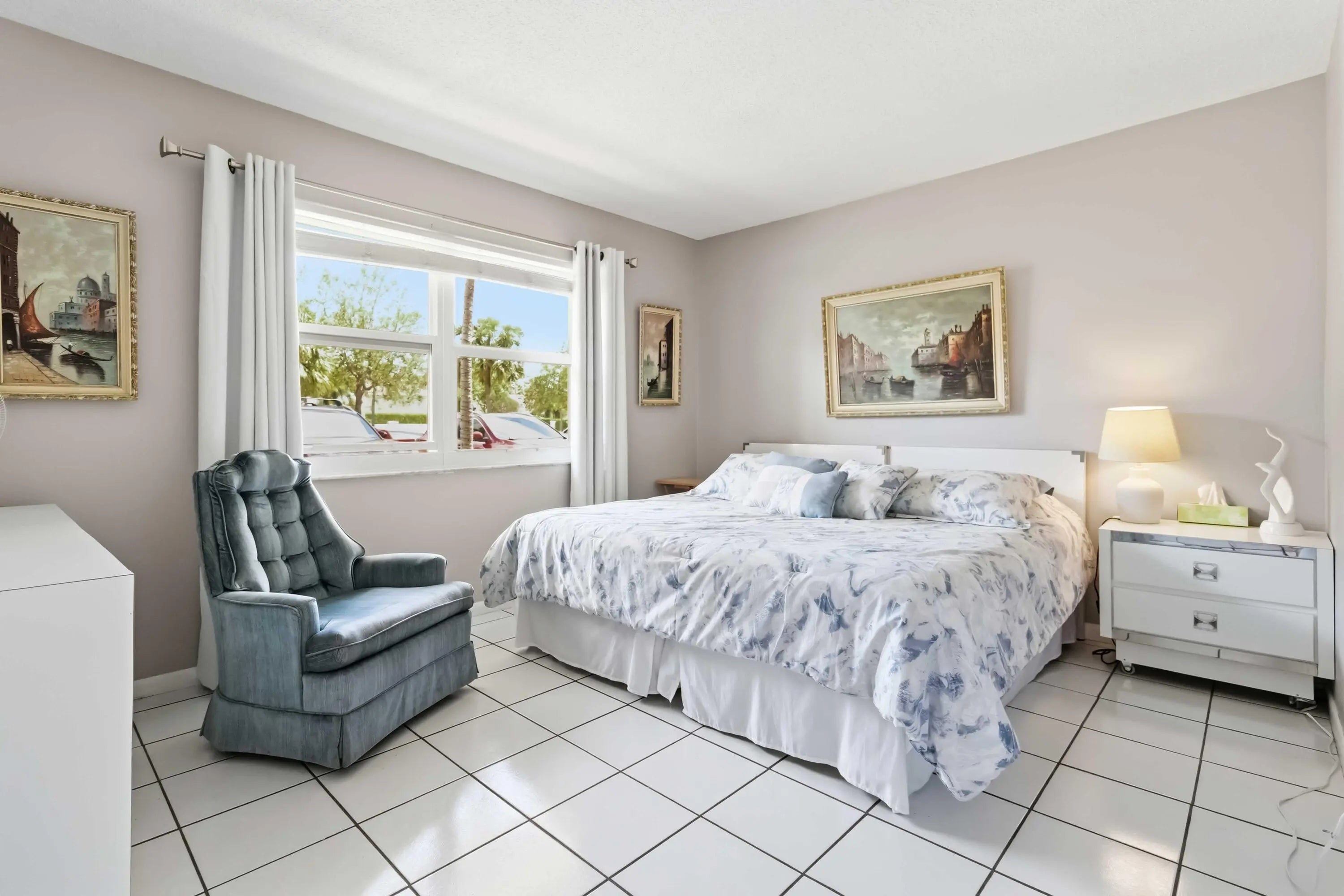 Fully furnished 2/2 condo on the 1st floor. Perfect opportunity to make this one your own. Living room opens to a covered patio overlooking the lake, amazing views of the sunset! One updated bathroom in the primary. Tiled floors throughout. Washer included in the unit, first floors only!