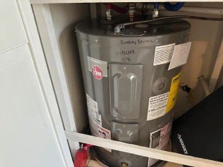 Electric Water Heater, Disposal, Dishwasher, Electric Range, Refrigerator, Water Heater