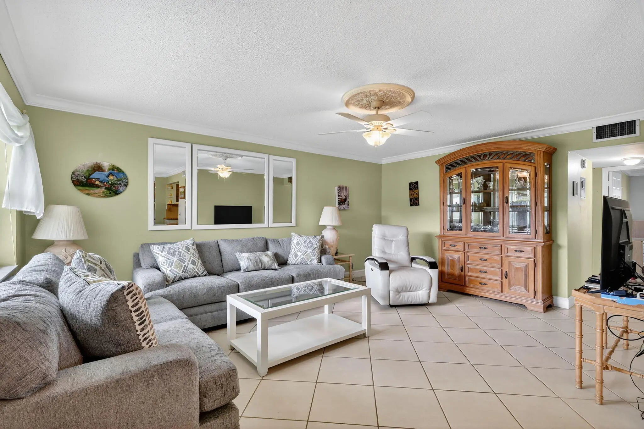 Extra special 2BR 1.5BA unit in Sterling Village! Airy corner unit loaded w/ natural light & many other lovely features. All remodeled w/ gorgeous custom cabinets, newer stainless appliances, granite counters. Both bathrooms updated w/ extensive tile surrounds, new vanities, updated lighting. Attractive tile floors thru-out, central A/C, brand new furniture in living & dining room, updated windows, parking directly outside your glass enclosed lanai. Gated Sterling Village is located where all of sunny Florida living and lifestyle activities are highlighted. Take a stroll along the Intracoastal, or sit & watch boats go by, enjoy ocean breezes, waterfront pool, just over the bridge to beach, convenient to shops, popular dining spots. 55+ HOPA 1person