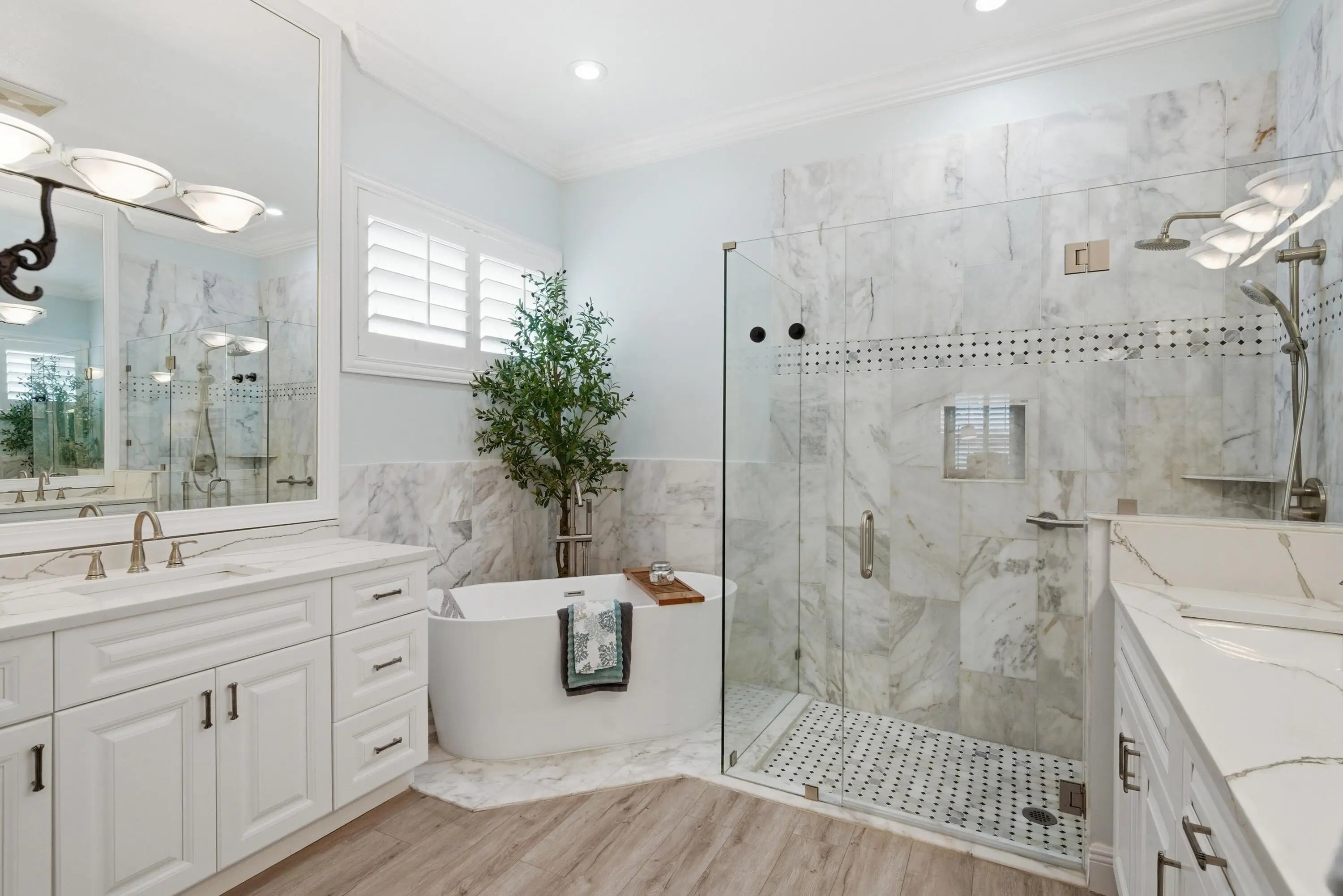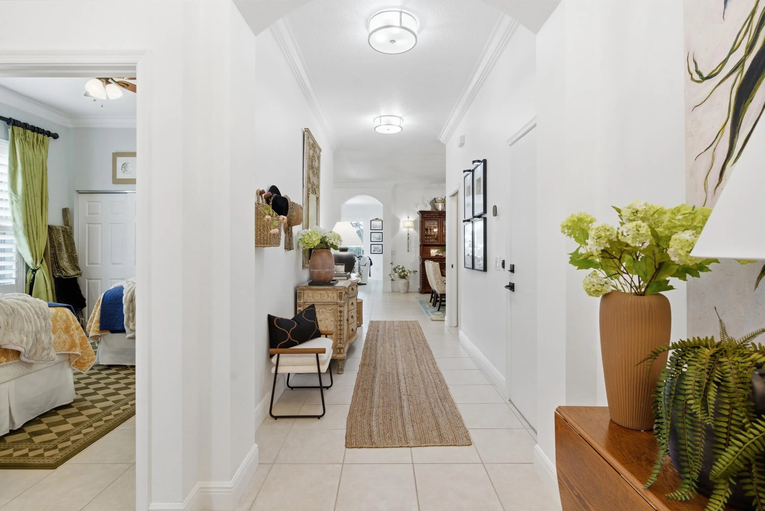Experience elevated living in this stunning residence designed for both sophistication & comfort. From the moment you enter, you're greeted by soaring ceilings, refined finishes, & an open-concept layout that showcases every detail. The gourmet kitchen features premium appliances, custom cabinetry, & an expansive island perfect for hosting. The primary suite offers a spa-inspired retreat with a spacious walk-in closet & elegant updated bath featuring marble tile & a beautiful soaking tub. Step outside to a beautifully landscaped outdoor oasis ideal for entertaining or quiet evenings. Some of the additional upgrades include a new roof (2023), crown molding throughout, wainscoting, high end lighting, plantation shutters, & literally so much more. This home is located on a private corner lot.