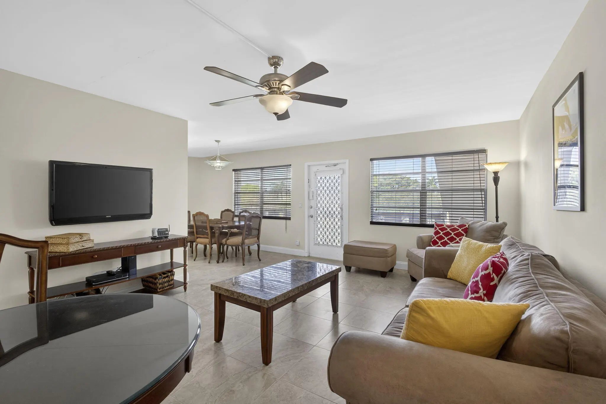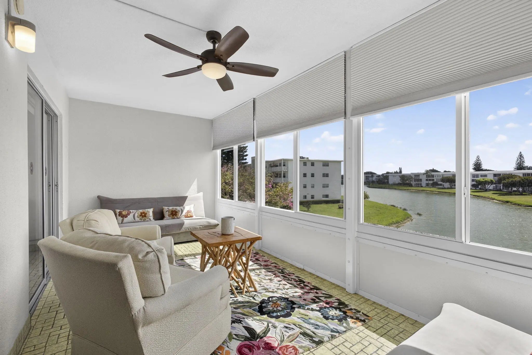 Welcome to this beautifully renovated 2 bed 2 bath spacious condo which features tiled floors throughout, built in microwave, dishwasher, all SS appliances, central Air and ceiling fans, Hurricane windows on the large Lanai and Hurricane shutters on the front windows, recessed lighting in the kitchen, nicely tiled back-splash, doors were replaced with 6 panel doors, plenty of closet space and a large walk-in closet in the main bedroom. Extra storage cage in the common laundry room, there are 2 laundry rooms on every floor. This spectacular unit comes furnished, the 2 newer bedroom mattresses and swivel chairs on the Lanai are from Baer's furniture, the furniture in the guest bedroom, the coffee table, tan armchair and ottoman are newer the master bedroom furniture is quality brand and solid white oak with indented handles. the lovely console under the TV is a lovely vintage piece. The Kitchen features nicely tiled back splash and recessed lighting. this well maintained no assessment building is equipped with an elevator. Enjoy your very spacious lanai with breathtaking long views of the huge lake. The building is right next to the heated Wellington residence swimming pool which has bathrooms showers changing area and sauna. The Wellington J building also has a lovely barbeque patio to enjoy with family and friends. Century Village has many activities, some of the amenities are Listed below Clubhouse Amenities: -Shuffleboard -Bocci Ball -1200 seat theater for shows and movies. -Numerous clubs to join. -Hasting's fitness center with complete fitness center, heated pool, the Lazy River resistance pool chair yoga, pool aerobics plus much more. -Sailing on the lakes of Century Village, don't know how to sail, no worries they have lessons. -Tennis/Pickleball -Indoor saltwater swimming pool, plus many swimming pools to choose from throughout the community -Duck Island with pier: picnics, barbeques, gatherings or just relaxation. -Community bus to transport you inside the village and outside the village for shopping, dining and much more. - hair/nail salon and barber located in the village. -Library -Dance/Party room -Pool table and ping pong room Billiards Room Wood Shop -And so much more, call me today for a private showing