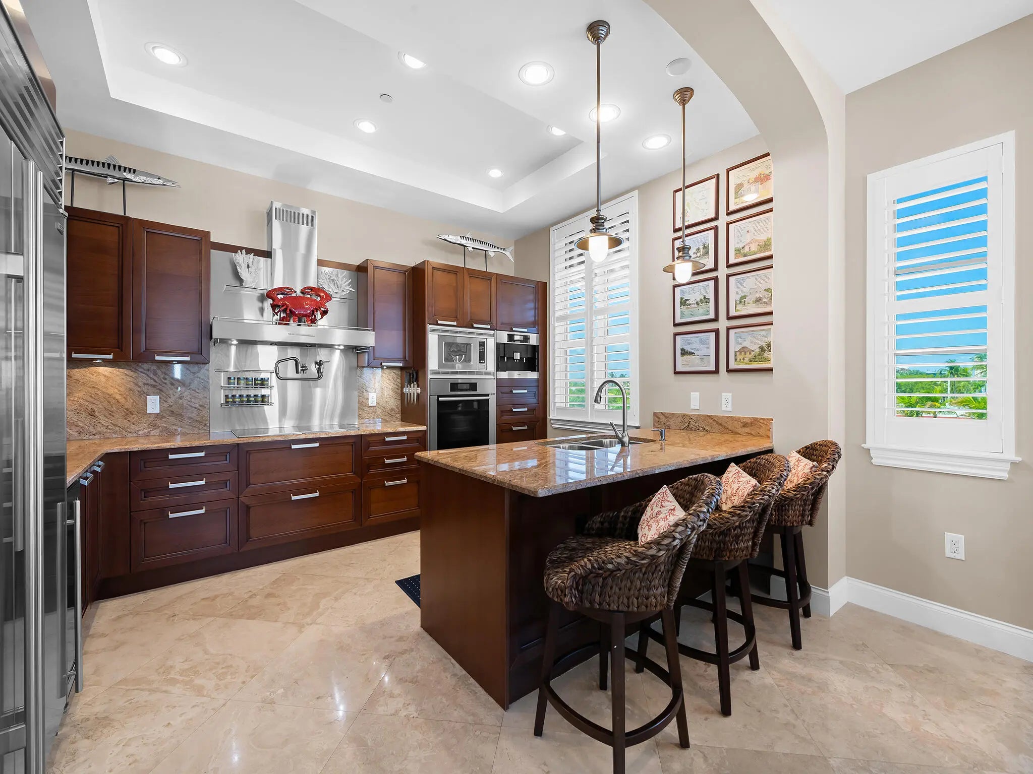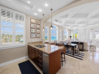 Enjoy the ultimate coastal lifestyle in this rarely available 3-bedroom, 2½-bath end unit offering 2397 sq. ft. of beautifully designed living space just steps from the sparkling Atlantic. Secure elevator access opens directly into your private foyer, welcoming you into a home defined by thoughtful details. Travertine marble floors flow throughout complement the open layout. The gourmet kitchen features a large cooking island, premium appliances, perfect for casual dining or entertaining. The primary suite offers a serene retreat with a spa-inspired bath. Two assigned covered parking spaces, plus dedicated bike and beach storage, provide ultimate convenience. Enjoy private beach access and a prime location close to shopping, dining, and all the charm of Lauderdale by the Sea.