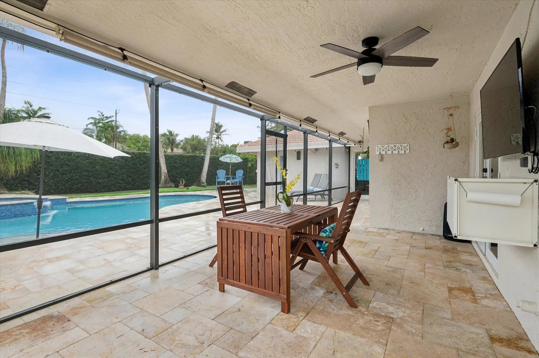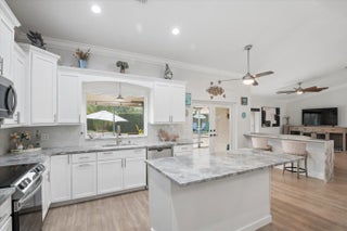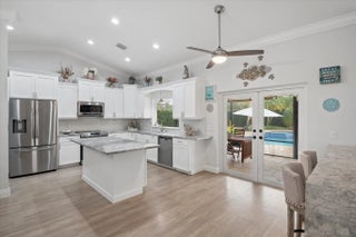 Fully renovated Pine Ridge pool home on oversized lot! Bright, open floor plan and 2023 A/C system. All impact windows and doors with a stunning custom entry door. Gourmet kitchen featuring granite countertops, glass tile backsplash and newer stainless steel appliances (newer washer and dryer too!) Luxury plank flooring thru-out, complimented by 6" baseboards and solid wood doors. Spacious primary suite with spa-like ensuite! The interior is enhanced with updated LED lighting, modern ceiling fans, textured ceilings, and crown molding. Outdoor living is equally impressive: French doors open to a large screened patio overlooking a heated freeform pool and spa. Expanded travertine pool deck and widened paver driveway. Fully enclosed yard surrounded by mature podocarpus with no rear neighbors. Fully renovated Pine Ridge pool home on oversized lot! Bright, open floor plan and 2023 A/C system. The home is protected by all impact windows and doors with a stunning custom entry door. Gourmet kitchen featuring granite countertops, glass tile backsplash and newer stainless steel appliances (newer washer and dryer too!) Luxury plank flooring throughout, complemented by 6" baseboards and solid wood doors. Spacious primary suite with spa-like ensuite! The interior is enhanced with updated LED lighting, modern ceiling fans, textured ceilings, and crown molding. Outdoor living is equally impressive: French doors open to a large screened patio overlooking a heated freeform pool and spa. Expanded travertine pool deck and widened paver driveway. Fully enclosed yard surrounded by mature podocarpus with no rear neighbors.