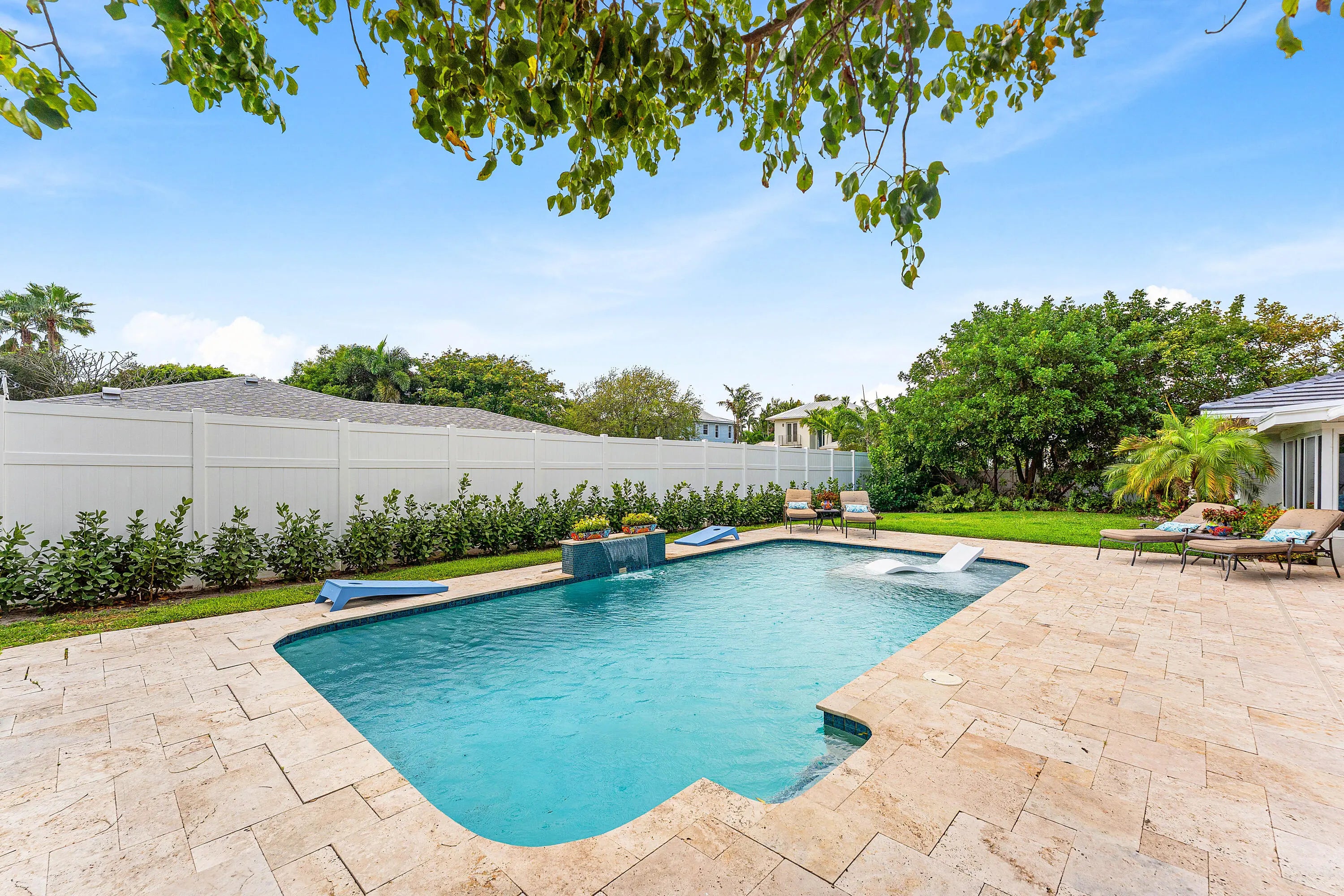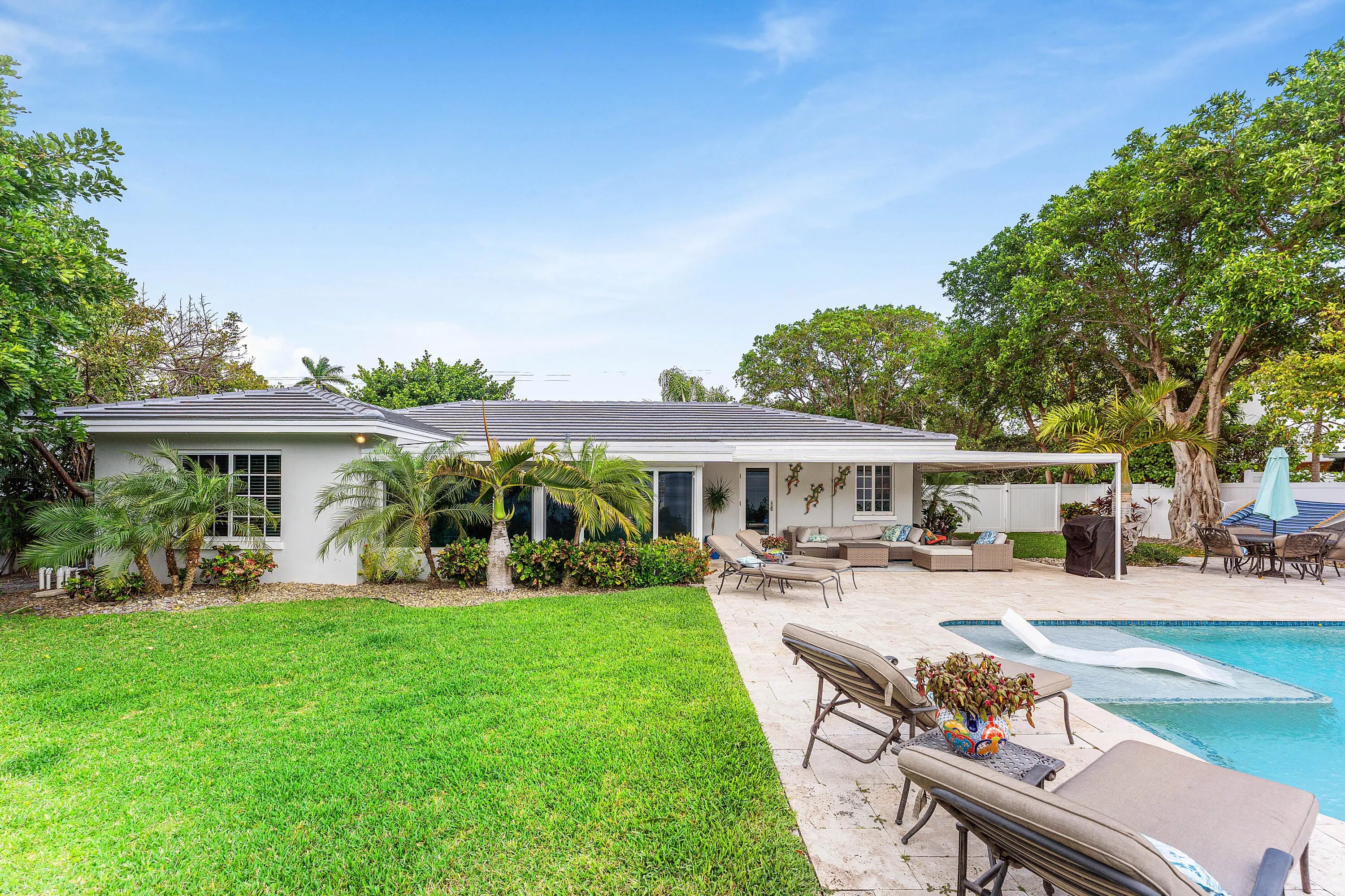 This charming 3 bed, 2.5 bath single-family home offers an open-concept layout perfect for entertaining. Step outside to a beautifully fenced backyard with a covered patio and private pool featuring a relaxing sunshelf—ideal for lounging or hosting guests. Tastefully furnished throughout, this home is fully move-in ready. Located in the heart of Delray Beach, just 1 mile from the ocean and vibrant Atlantic Ave, known for boutique shopping and top dining. Just bring your toothbrush and enjoy Florida's winter paradise!