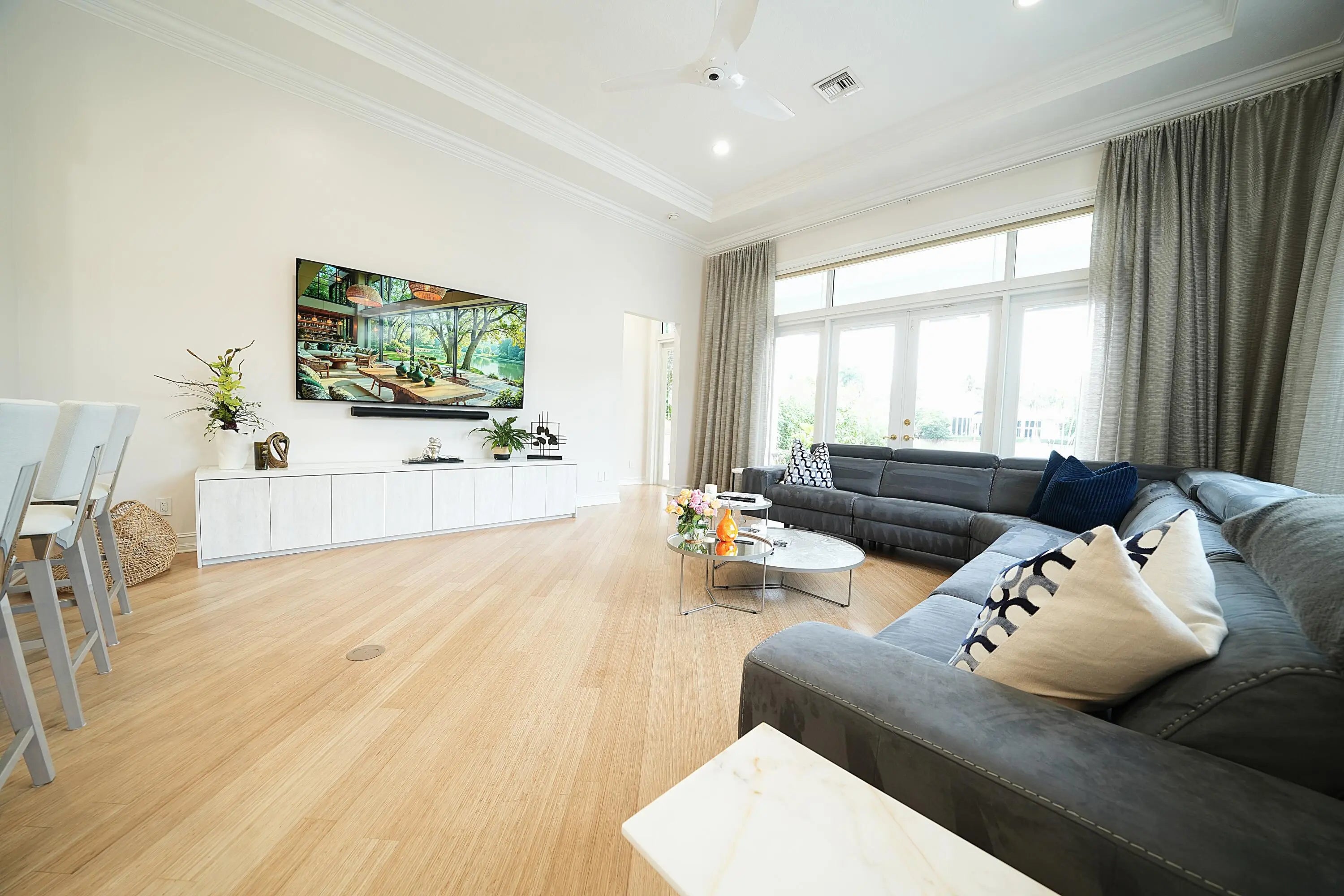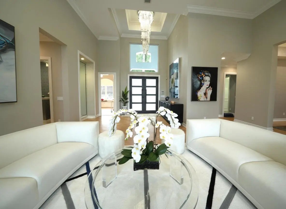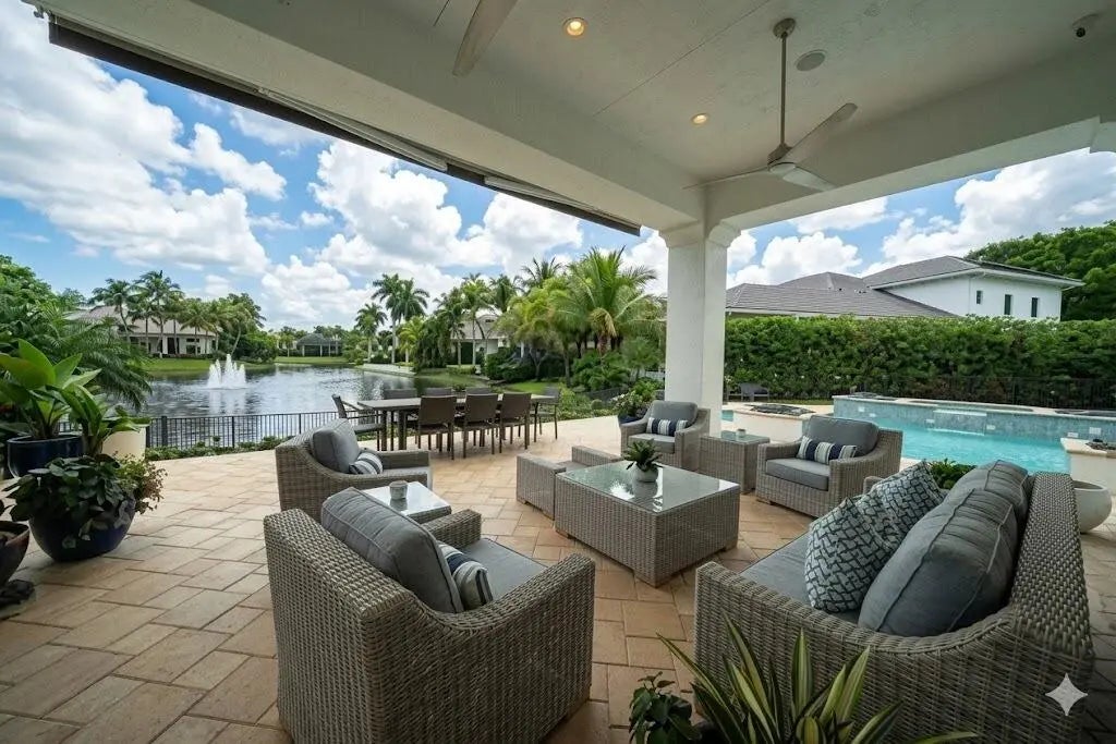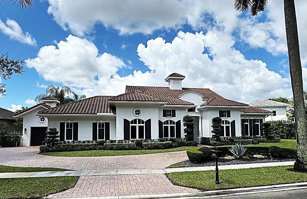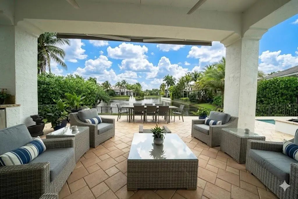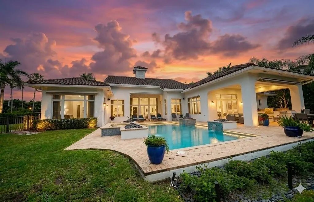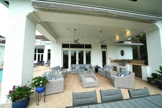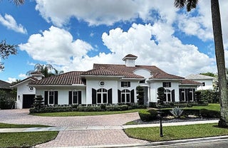 MUST SEE! This spectacular, one-of-a-kind Palm Beach-style ranch estate is set on just under half an acre (18,842 sq ft lot) and offers the perfect blend of luxury, comfort, and breathtaking lakefront views. This expansive one-story residence features 5 bedrooms, 4.5 bath plus a beautifully redesigned den/office, thoughtfully curated by high-end designers and a 3 car garage. Enjoy stunning long lake views from your private backyard oasis, complete with a sparkling salt pool and automatic retractable awnings.Inside, the home is beautifully appointed with premium finishes throughout, including stunning Cristallo quartzite kitchen countertops, top-of-the-line stainless steel appliances, a Sub-Zero refrigerator, and a built-in wine refrigerator. The office has been professionally redesigned by high end designers. Additional highlights include impact windows and doors a full-house generator, and central vacuum. This exceptional home combines timeless Palm Beach elegance with modern upgrades and an unbeatable lakefront setting offering a rare opportunity to own a truly distinctive estate in one of the area's most sought after communities. Hawks Landing offers an unparalleled living experience, combining luxury and convenience within a secure, gated community. Residents enjoy access to an impressive 15,000 sq ft clubhouse that serves as the heart of the community, perfect for social gatherings and events. The community's resort-style swimming pool, both currently being remodeled to enhance their features and offer an even more luxurious experience. The community also offers a state-of-the-art fitness center, complete with personal trainers and professional aerobic to keep residents in peak shape. For tennis enthusiasts, Hawks Landing boasts 7 lighted Har-Tru tennis courts, with private lessons and clinics available to perfect your game. The community also features a full-service spa, ensuring residents can enjoy a day of relaxation without leaving home. Active residents can enjoy the volleyball and basketball courts, as well as a playground for the kids. Families will appreciate the organized children's activities, including movie nights, pizza parties, and arts and crafts, creating a true sense of community for all ages. With its combination of luxury, recreation, and family friendly features, Hawks Landing offers a lifestyle that's second to none. **Please note: The chandelier in the kitchen, TV, Sonos system, and bracket in the bedroom with the couch do not convey with the property. **
