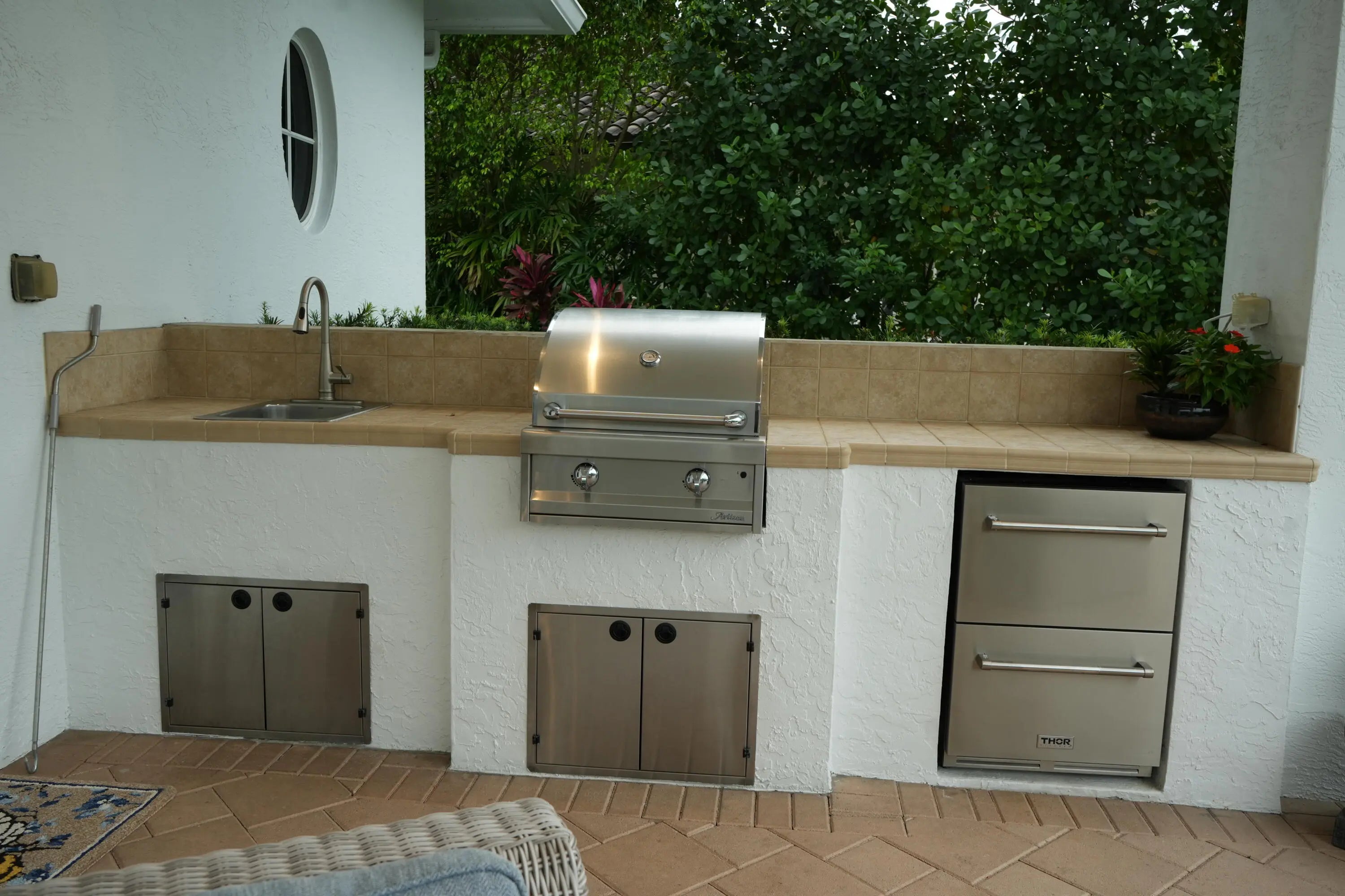 Awning(s), Built-in Barbecue, Barbecue, Lighting, Outdoor Kitchen, Custom Lighting