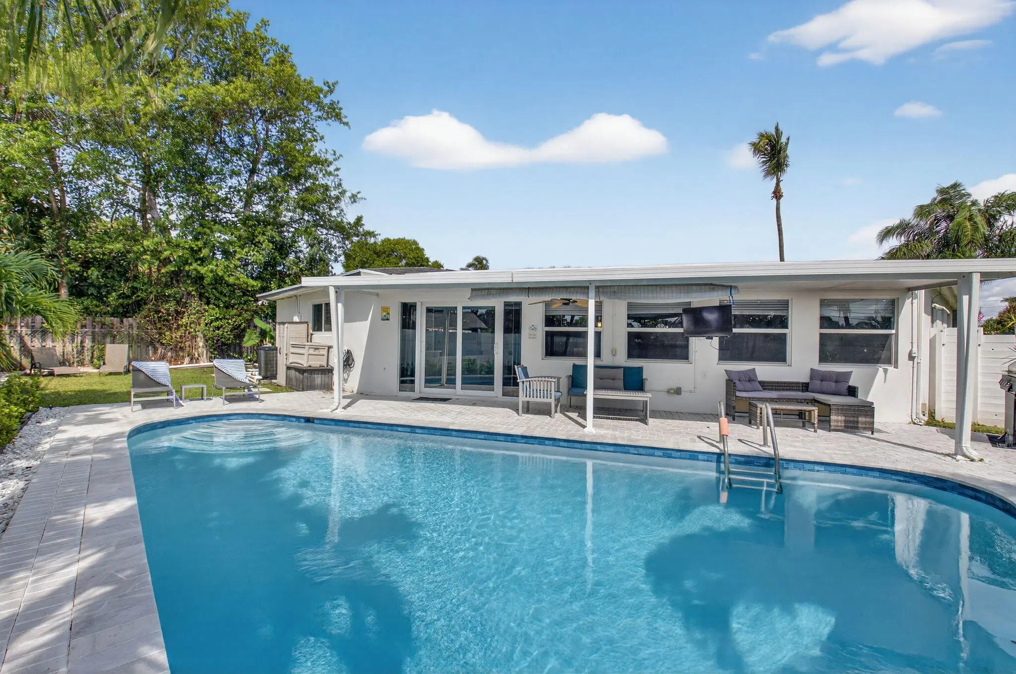 New roof with a 10-year transferable warranty & 2024 AC—move in worry-free! Just 2.5 miles from vibrant Downtown Delray and minutes from pristine beaches, this 3BR/2BA pool home in a quiet, non-HOA neighborhood exudes coastal charm. The open-concept layout is flooded with natural light and showcases gorgeous pool views. The kitchen features a large island, ample cabinetry, and convenient pull-out drawers. Step outside to your private backyard paradise: a sparkling pool, paver patio, and plenty of space to lounge, play, or host unforgettable gatherings. Currently a successful Airbnb with a strong rental history and transferable bookings, this home is offered furnished or unfurnished—ready for immediate enjoyment or income generation. This property is an active AirBnB property - please do not walk property without a confirmed showing.