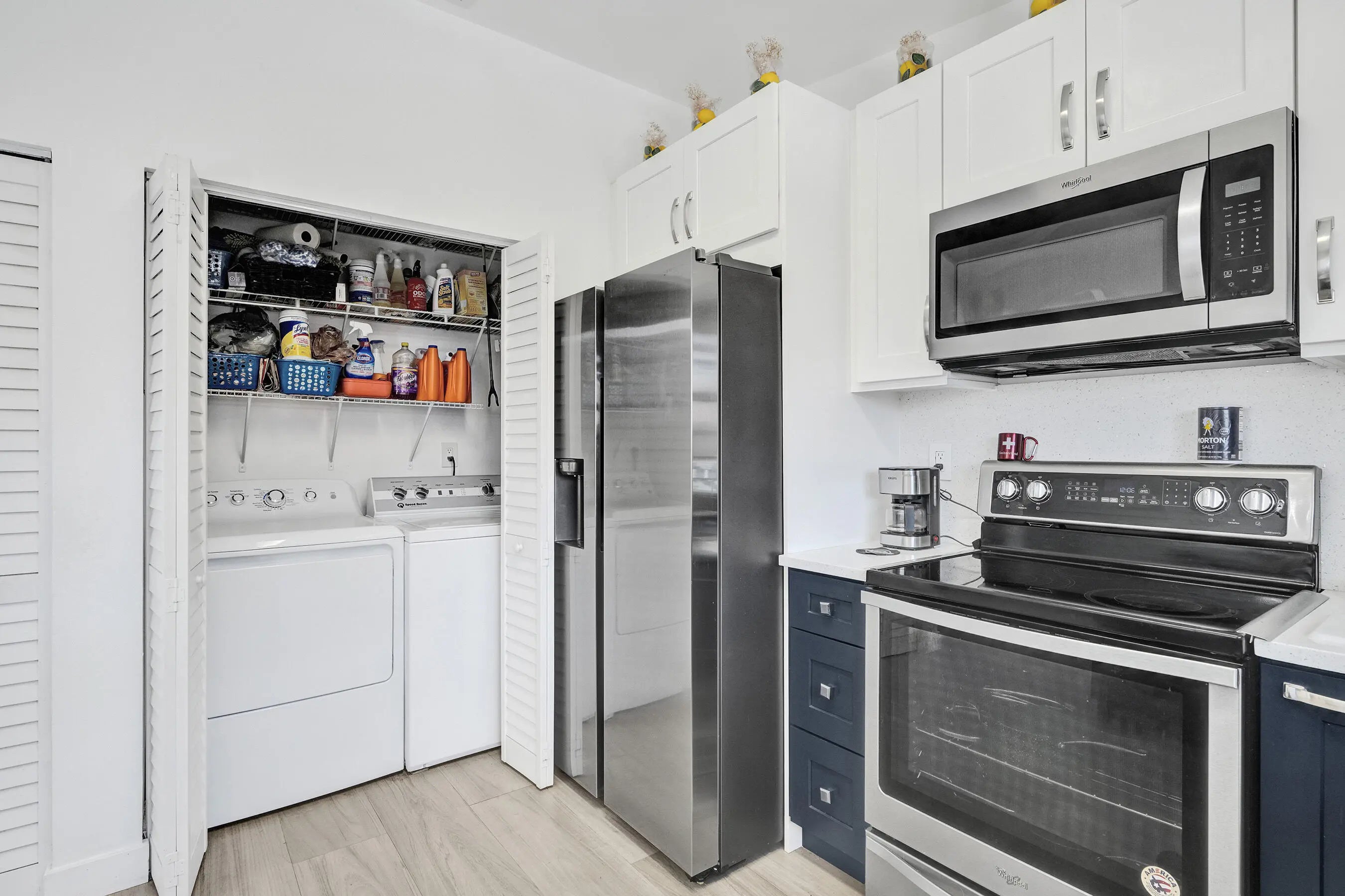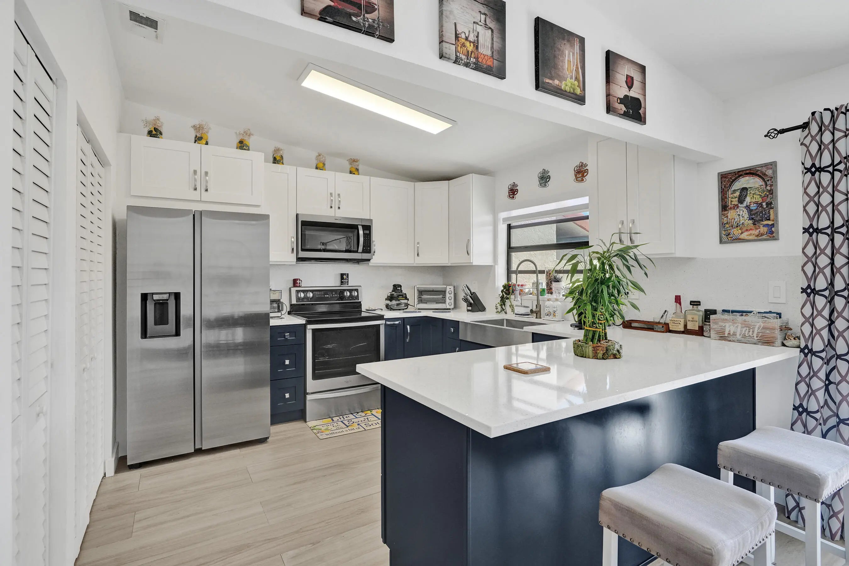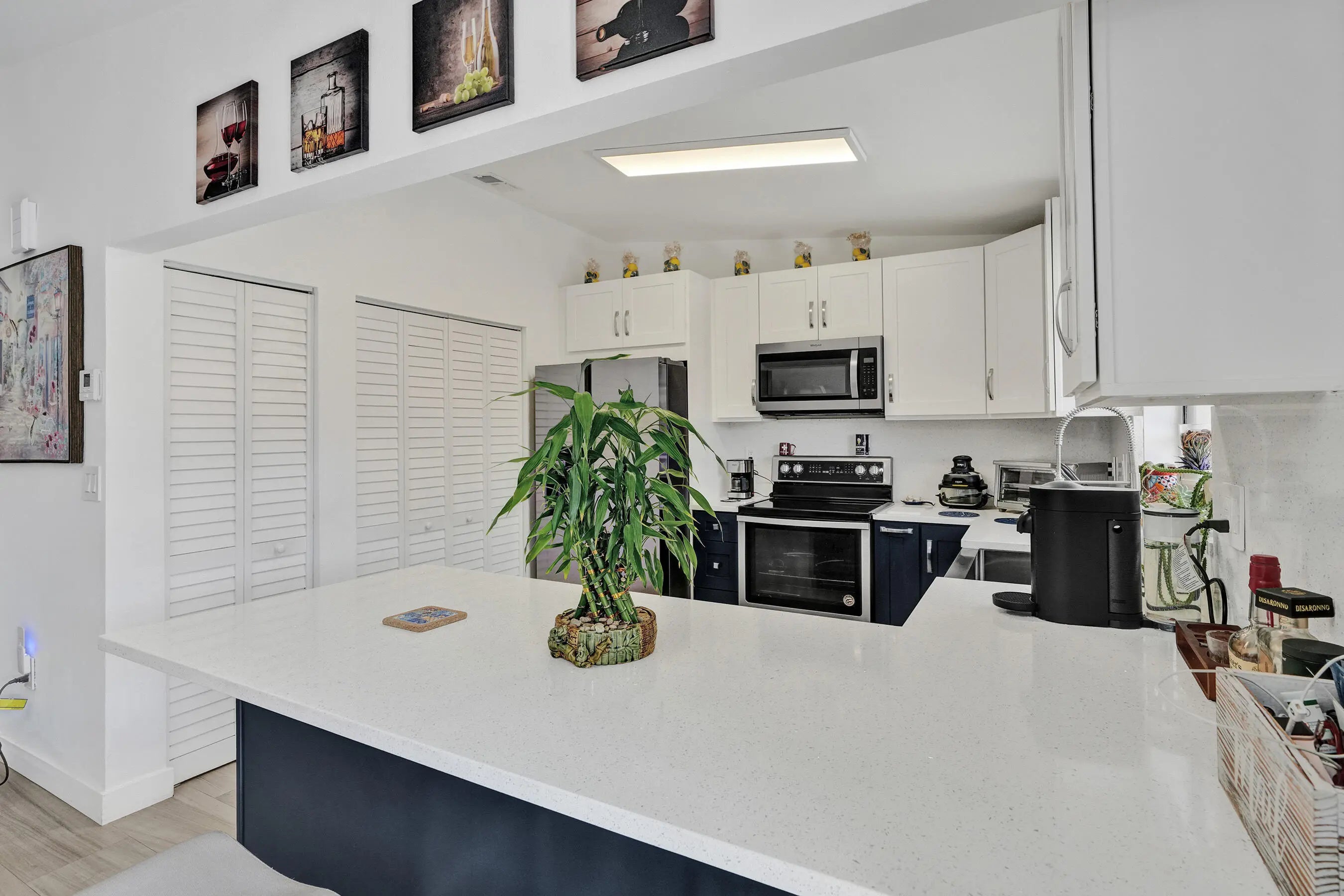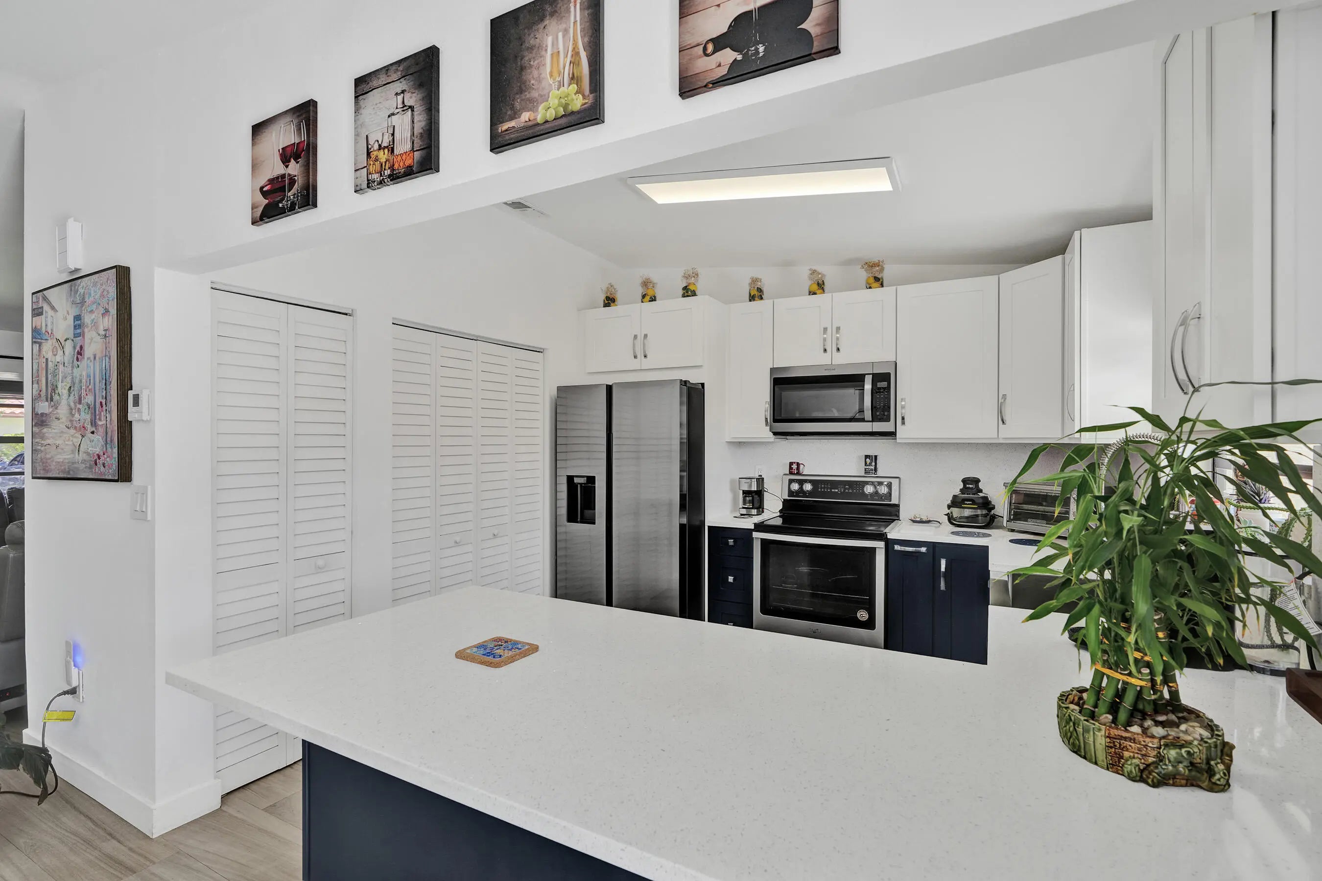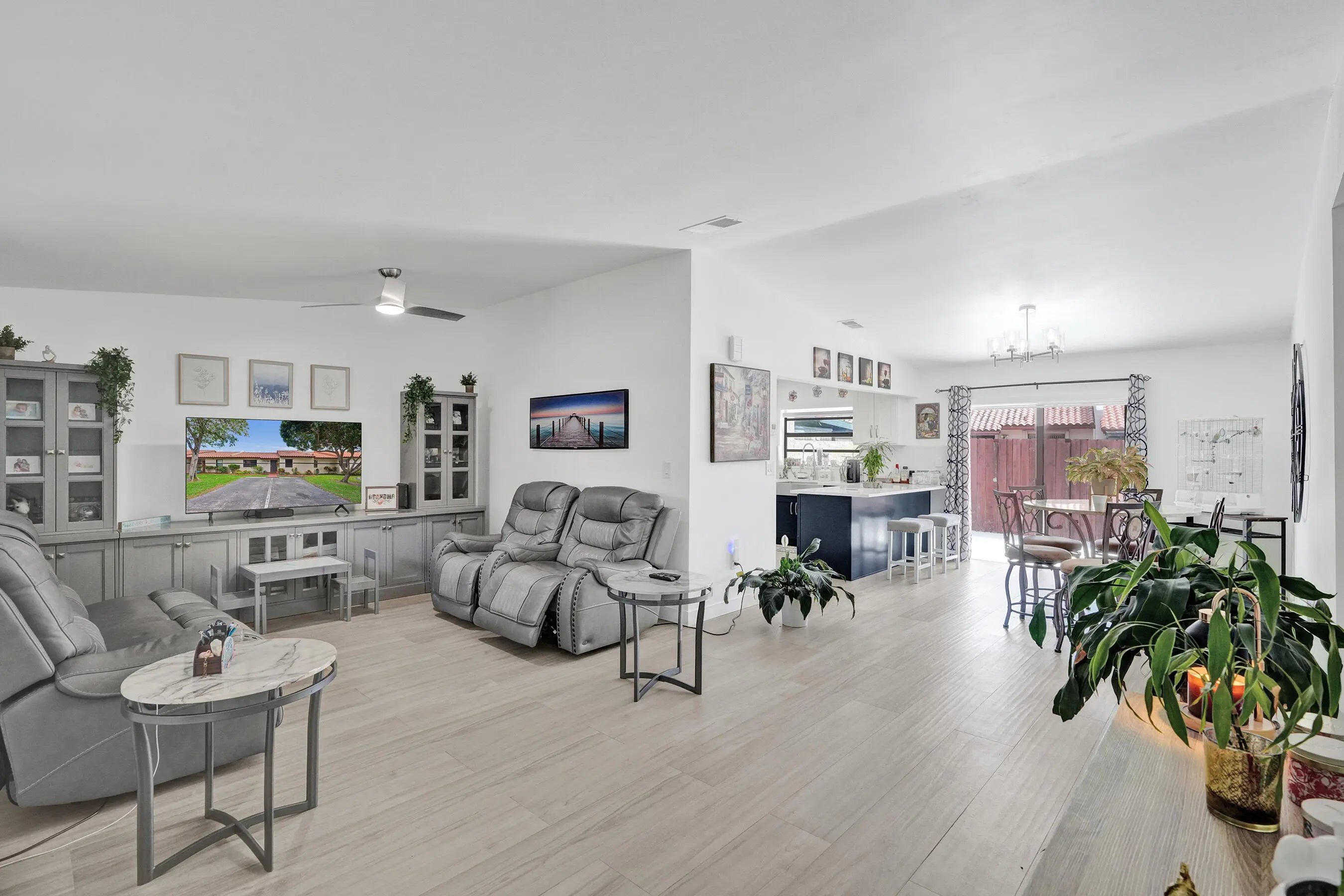 Beautiful updated 2 bedroom, 2 bathroom villa located in the highly desirable community of Cooper City. This move-in ready residence showcases a new barrel tile roof and fully renovated kitchen featuring premium white quartz countertops and an extended peninsula ideal for both everyday living and entertaining. Both bathrooms have been tastefully remodeled with modern white vanities topped with quartz, LED backlit mirrors, and stylish mosaic tile flooring. Additional upgrades include new washer and dryer, contemporary window treatments, modern two-panel white shaker interior doors, and updated ceiling fans throughout. The home is finished with neutral-tone tile flooring creating a clean and cohesive aesthetic and it also features a newer refrigerator. Hurry it won't last long! Furniture is included with a full-priced offer. Owner financing is available, offering a below-market interest rate and a streamlined, accelerated closing process.