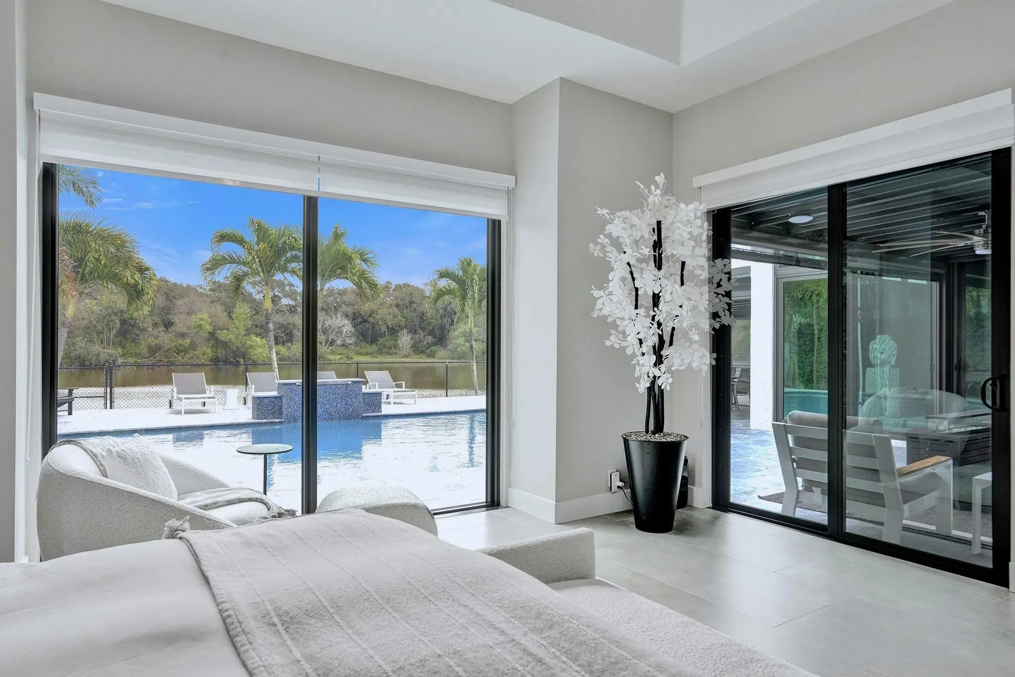 Highly desirable waterfront home in a prime Davie neighborhood, beautifully renovated to offer modern elegance and exceptional comfort. Featuring premium finishes, top-of-the-line appliances, refined Italian interior doors, high ceilings, impact windows and doors, and large-format tile flooring throughout, this residence showcases quality throughout. Major upgrades provide peace of mind. Enjoy serene water views from the kitchen, living room, and primary bedroom, creating a resort-style setting. A circular driveway enhances curb appeal. The outdoor living area features a sparkling pool with a sun shelf, summer kitchen, and two large pergolas with motorized screens—perfect for entertaining and relaxing. Designed for those who appreciate quality, comfort, and exceptional outdoor living.