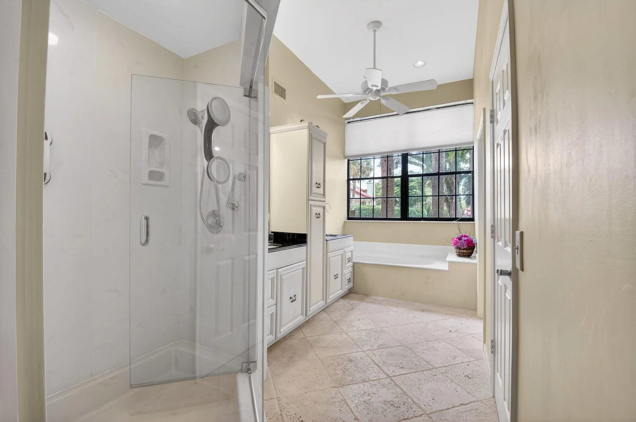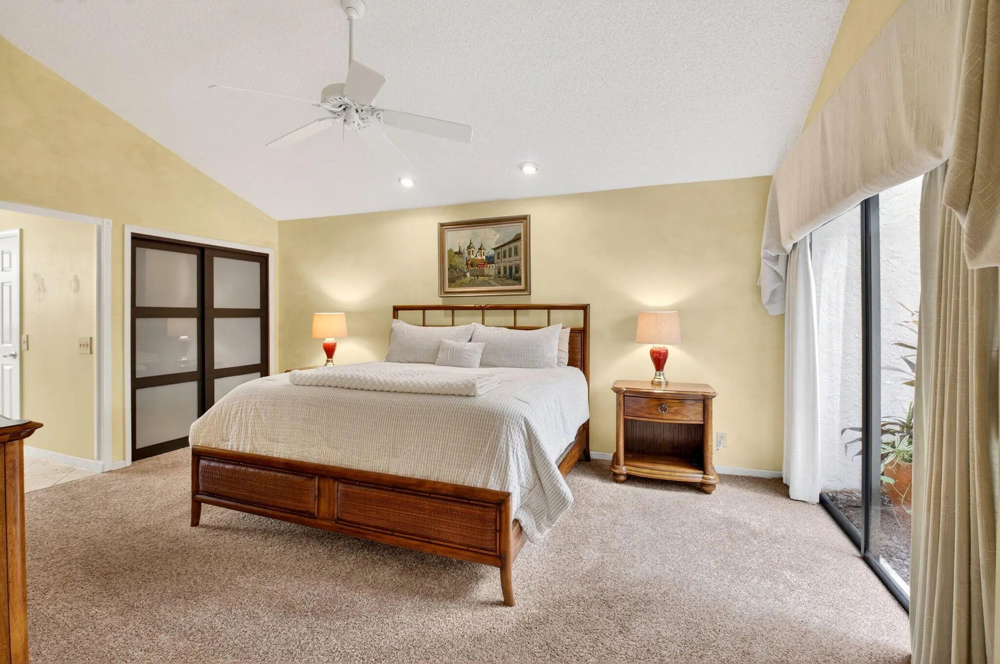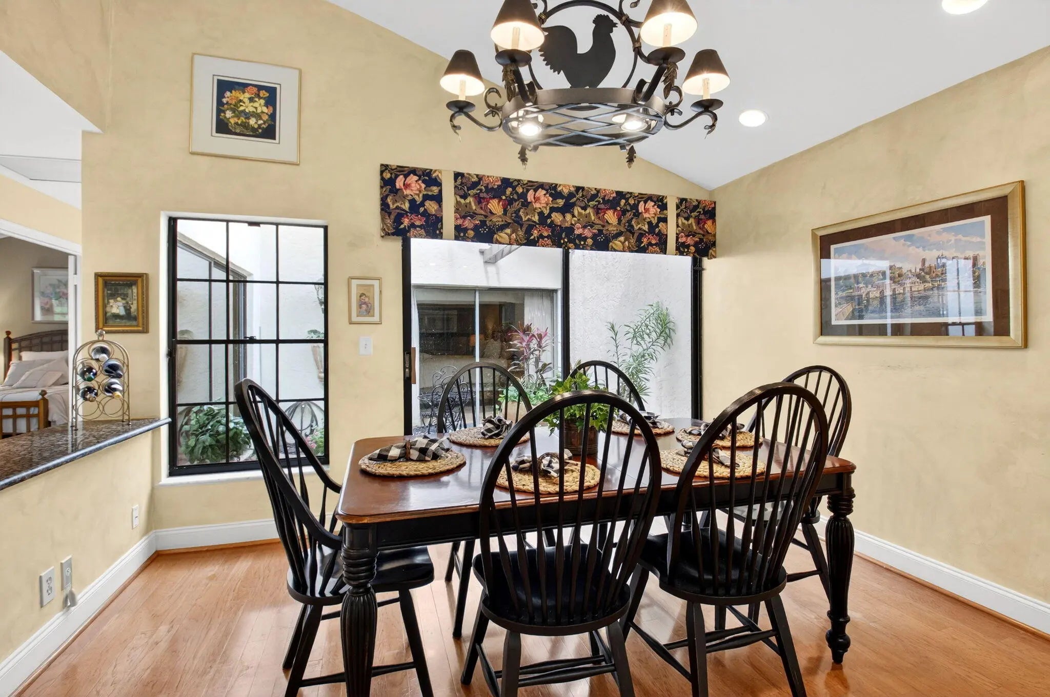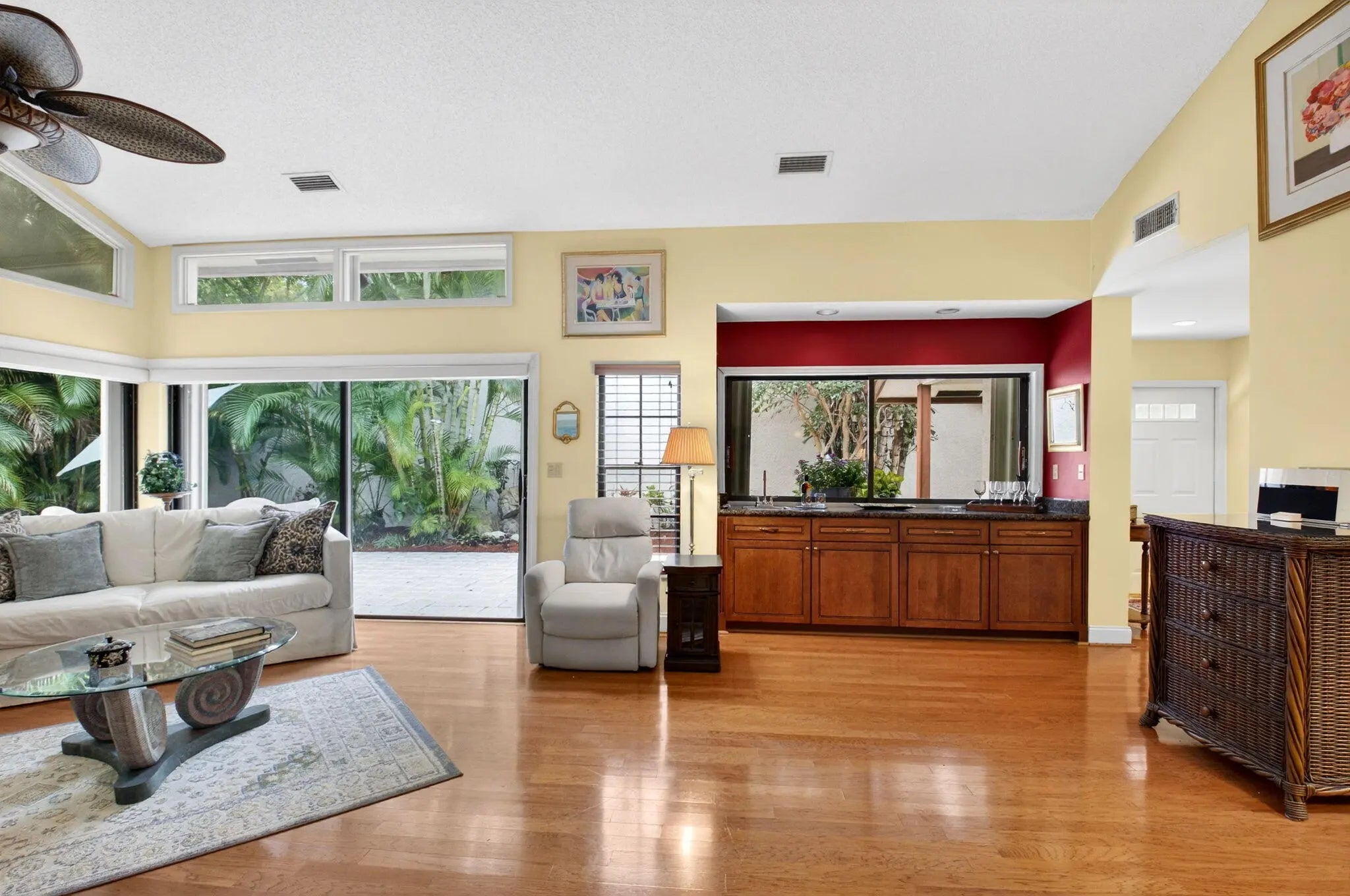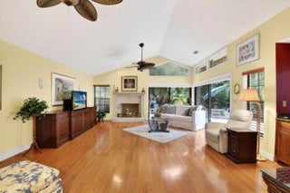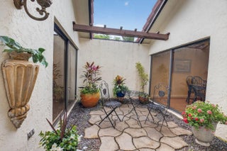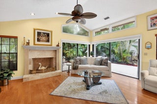 Discover refined living in this meticulously maintained residence ideally situated in the heart of the Town Center just moments from premier shopping, fine dining and entertainment. A lush private courtyard entry sets the tone leading to your tropical oversized patio designed for seamless indoor-outdoor living space, entertaining and dining alfresco. This home offers vaulted ceilings, cozy fireplace and rich hardwood floors creating a warm elevated ambiance. Updated kitchen boasts custom wood cabinets and granite countertops. Spacious primary suite with vaulted ceilings, serene atrium views, updated bath with soaking tub, separate shower and dual-sink granite vanity. A generously sized light-filled guest suite offers dramatic high ceilings and private bath. Oversized 2CG w/extra storage. Town Place Club Villas is perfectly located in the best Town Center area just across from Boca Raton Swim & Racquet Club offering heated/chilled pool and spa (plus kiddie pool) and 26 Har Tru courts. Flexible memberships available. Close to the famed Town Center Mall, Publix, Walgreens, CVS, shops, parks and the absolute best restaurants. "A" rated schools. Just a short drive to Boca Raton's best beaches, vibrant Mizner Park, downtown Boca, weekend festivals and famers markets. Close to universities, I95 & the Florida Turnpike. Monthly fee includes 24 hour manned gate, cable, HBO, internet, front lawn, heated in the winter and chilled in the summer community pool, relaxing spa and all common areas. Annual master association fee to Via Verde $178. One time capital contribution of $750 due at closing to Via Verde and $1720 to Town Place Club Villas.