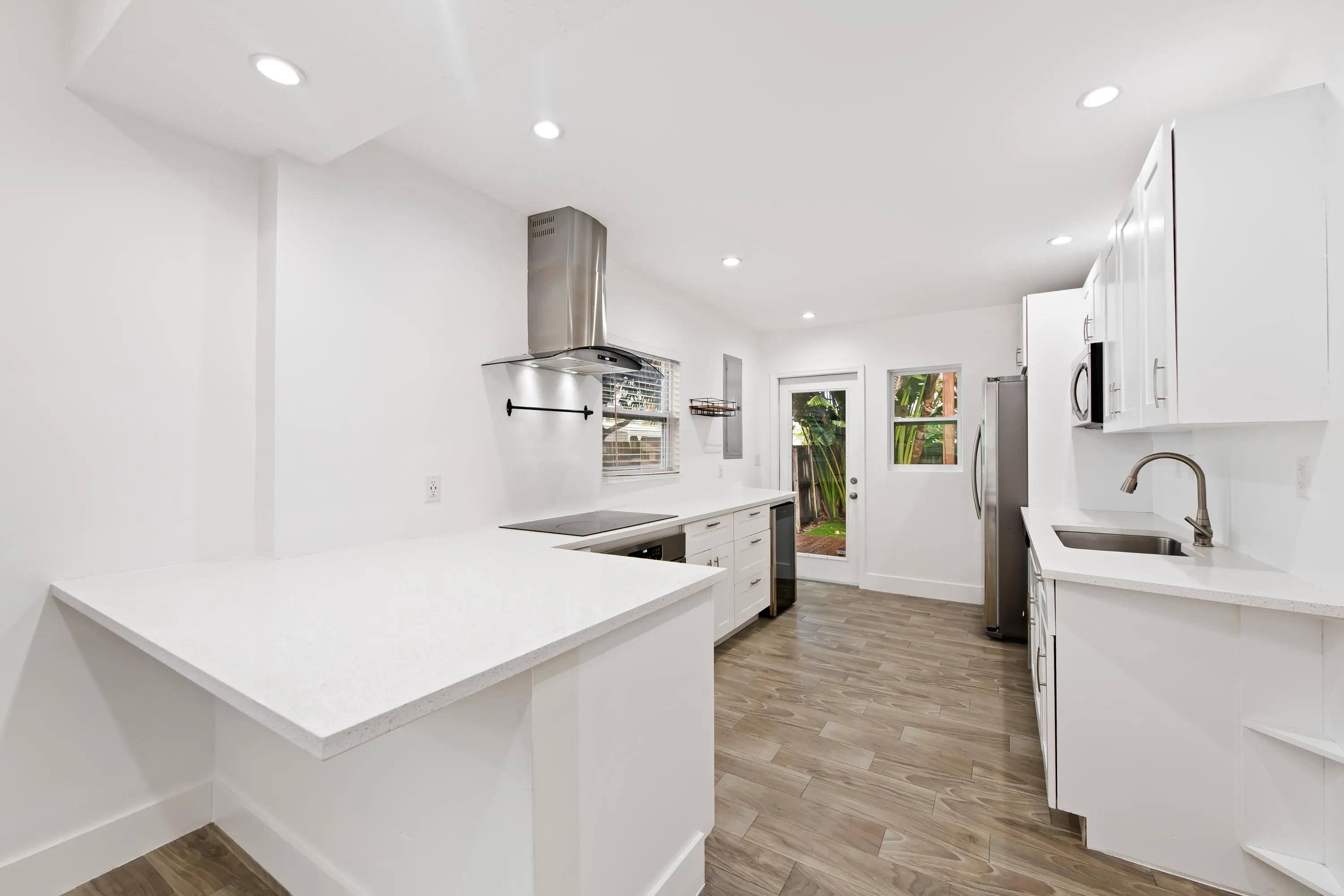 Totally updated Mediterranean home east of US-1 in Dania! This 2BR/2BA features a primary en-suite, spacious bedrooms with walk-in closets, and luxuriously updated bathrooms. Tile floors throughout, recessed lighting, central A/C, and hurricane-impact windows. Stylish kitchen with quartz countertops, shaker cabinets and top-of-the-line appliances. Fully fenced backyard with deck, pergola, shed, and tropical landscaping. Covered carport parking. Prime location near beach, airport, I-95, and downtown Fort Lauderdale. Pets allowed!