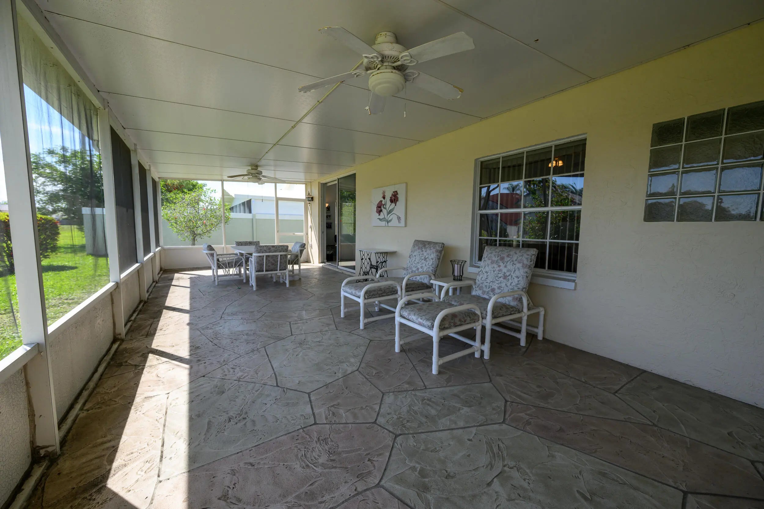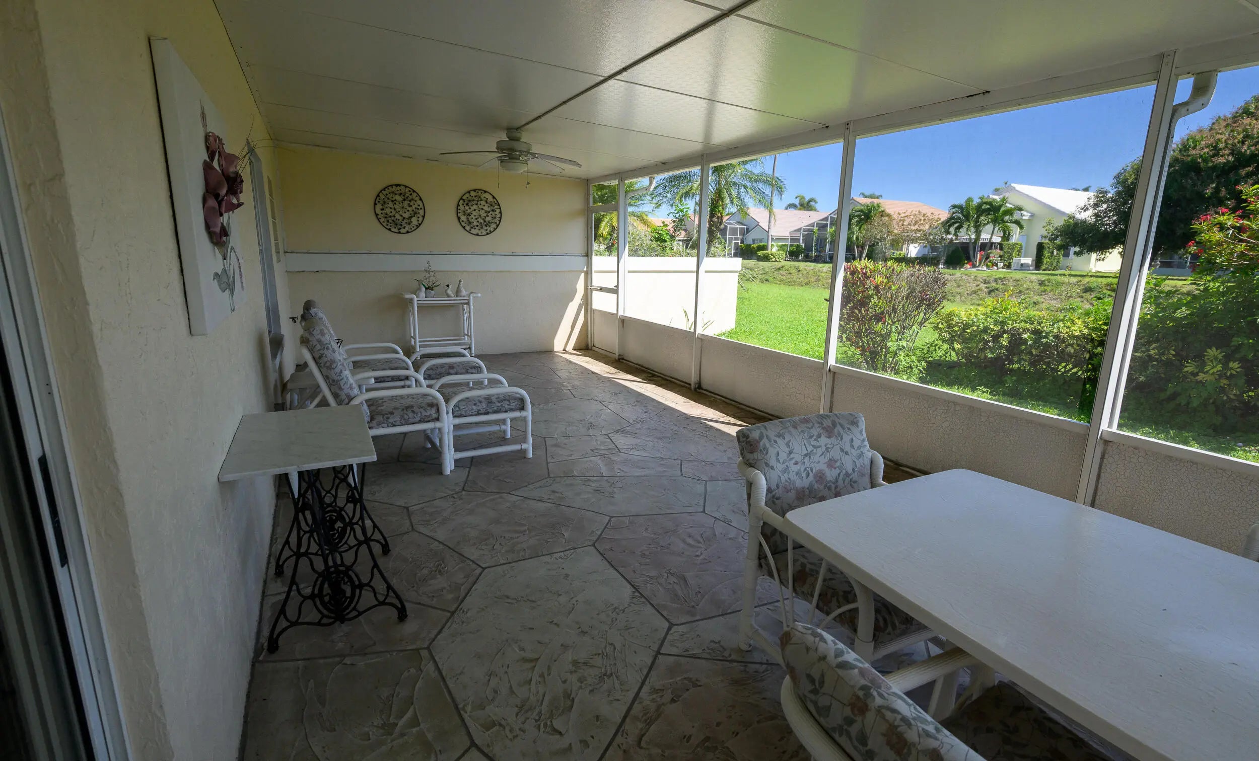 Beautiful single family home ranch style in West Delray Beach. 55+ community with pools, jacuzzi, pickle ball courts and bocce. Conveniently located next to Publix, Walgreens, Delray market place with tons of restaurants, 6 miles from the beach and 2 miles from the Turnpike. Very spacious 2 bedroom 2 bath single family home with immaculate white kitchen cabinets and a gorgeous granite counter top, Stainless steel appliances. Tile in the living room/dining/kitchen and carpet in the bedrooms. Both bedrooms have walk in closets. The master bedroom has two walking closets. Original bathroom in clean condition. Vaulted ceiling with the addition of a skylight in the kitchen for extra light. The hoa fees include house painting (every 7 years), internet, cable tv. Great place to live in Florida! One car garage.