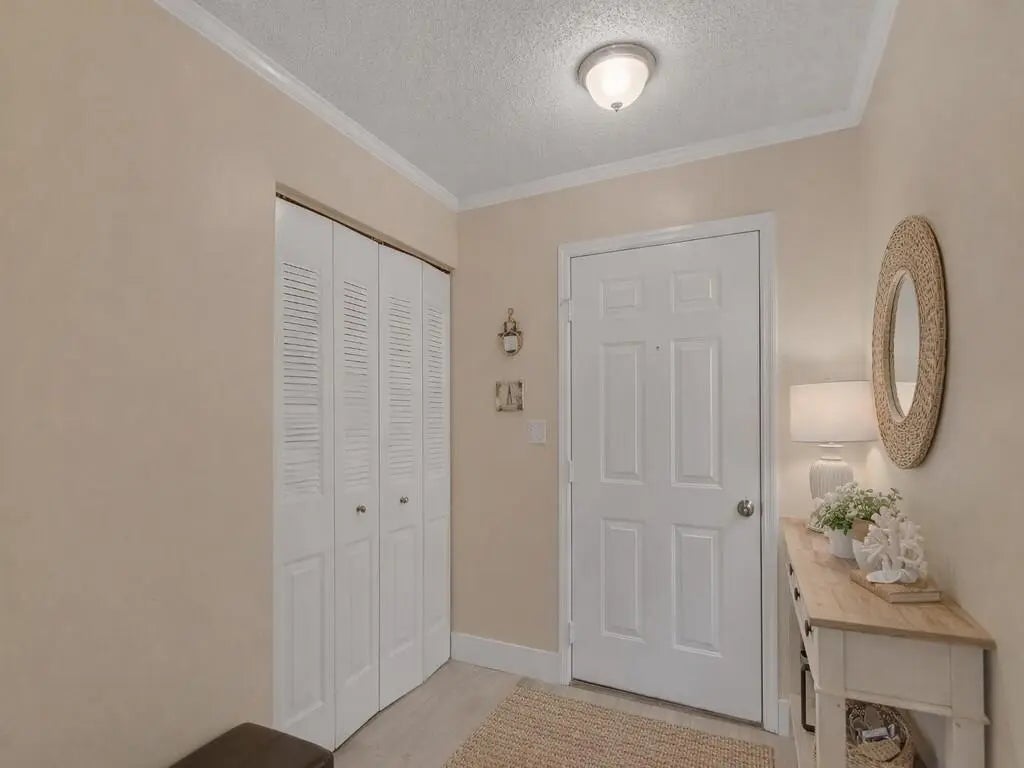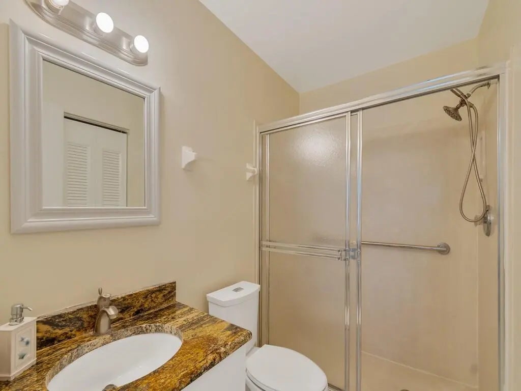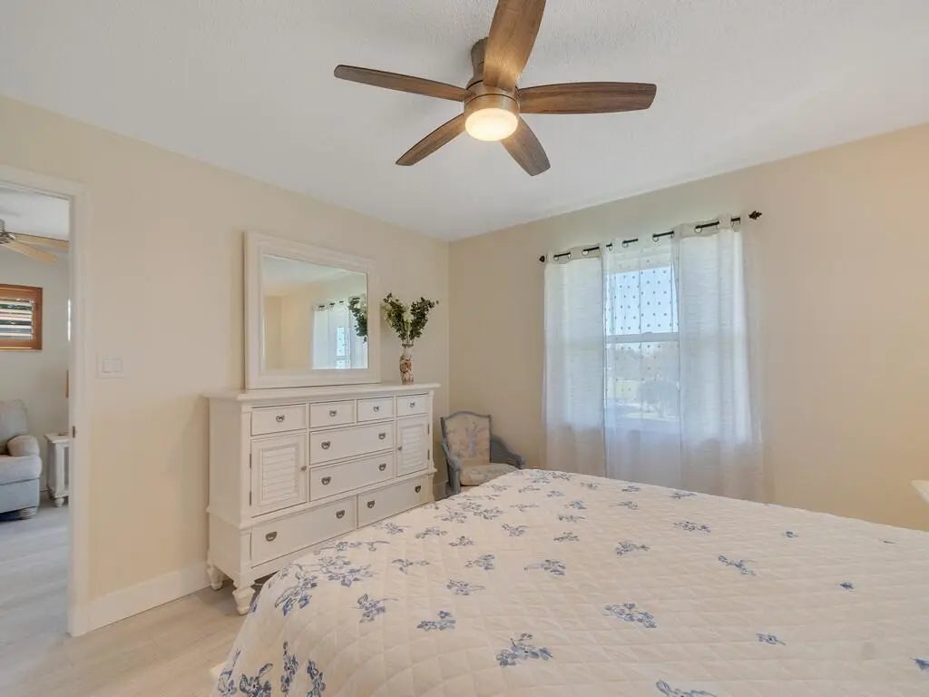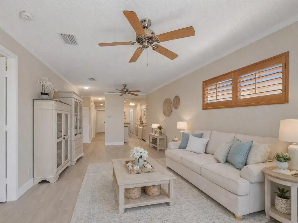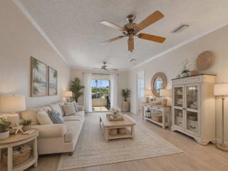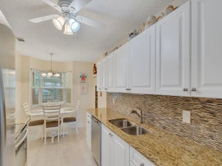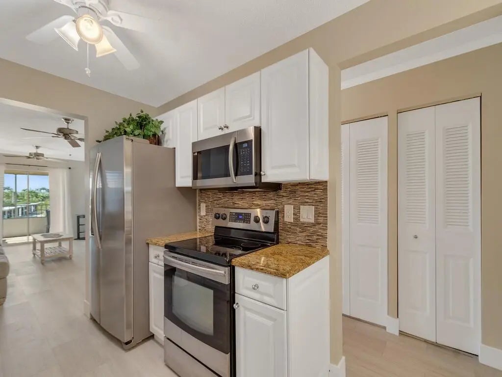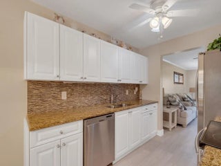 Freshly Remodeled & Move-In Ready! Bright 2BD/2BA second-floor condo in desirable Grove Isle 55+ community. All updated: new flooring throughout, new water heater, new vanity, ceiling fans, fresh paint. Updated kitchen with white cabinets, tile backsplash, granite countertops, stainless steel appliances. In-unit washer/dryer for convenience. Spacious bedrooms with large walk-in closets. Private screened patio with peaceful water views—perfect for relaxing. Community perks: 2 pools, clubhouse, tennis, trails, dock, kayaks & more. Turnkey and priced to sell—don't miss this great opportunity! Close