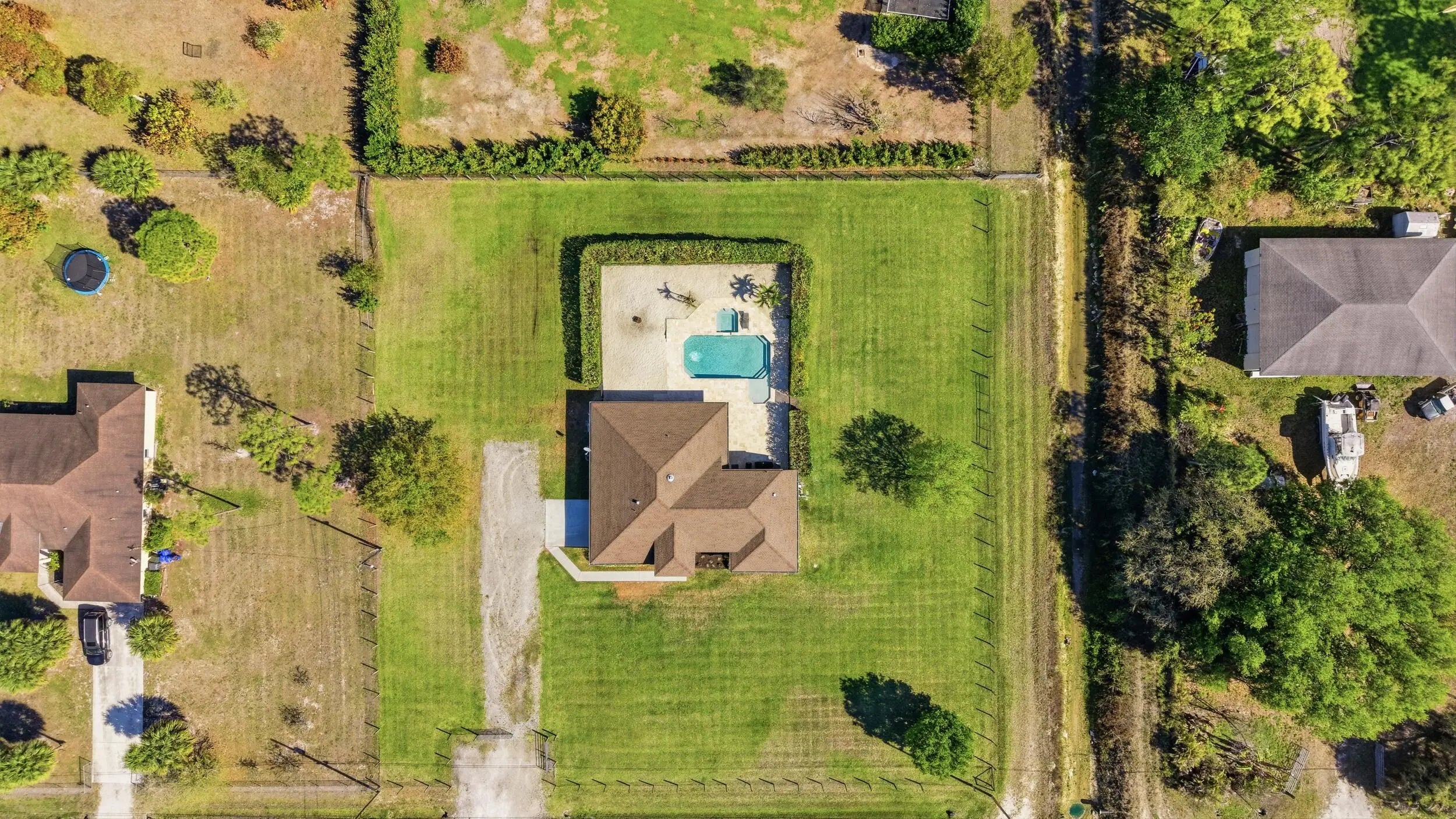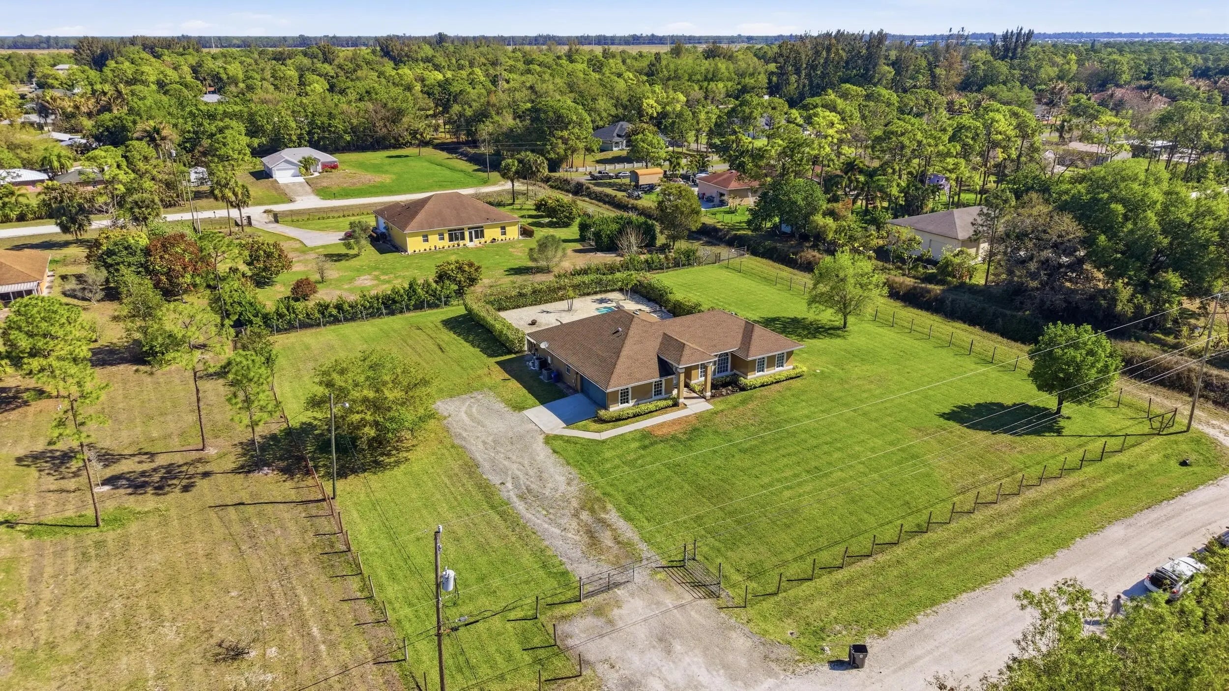 Beautifully maintained 3 bedroom + den, 2 bathroom home situated on a fully fenced 1.31-acre end lot in the desirable Acreage/Loxahatchee area. This spacious home features a split floor plan with over 2,100 sq ft of living space, vaulted ceilings, and a spacious, versatile layout. The open kitchen offers ample cabinetry, a pantry, and overlooks the main living areas, making it ideal for both everyday living and entertaining. The primary suite includes a large layout with a soaking tub and separate shower. The den provides flexible space for a home office, playroom, or additional living area. Enjoy outdoor living with a private pool, hot tub, and a dedicated sand area, ideal for a volleyball court or additional recreation. The property is fully fenced with mature landscaping and offers a private retreat, while the lot offers a ton of space with no HOA restrictions. Conveniently located near shopping, dining, parks, and the growing Westlake area.