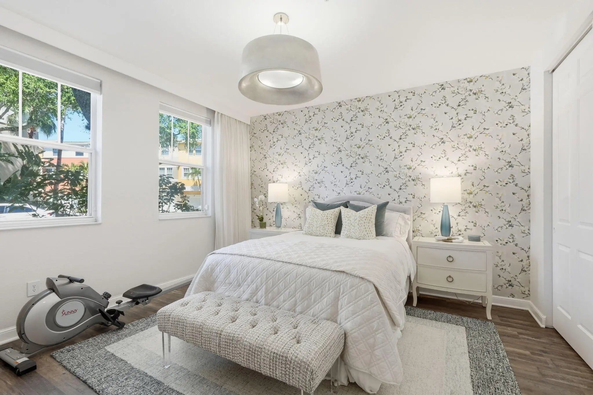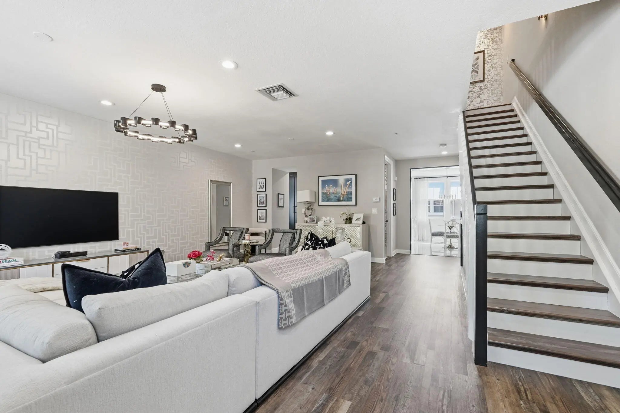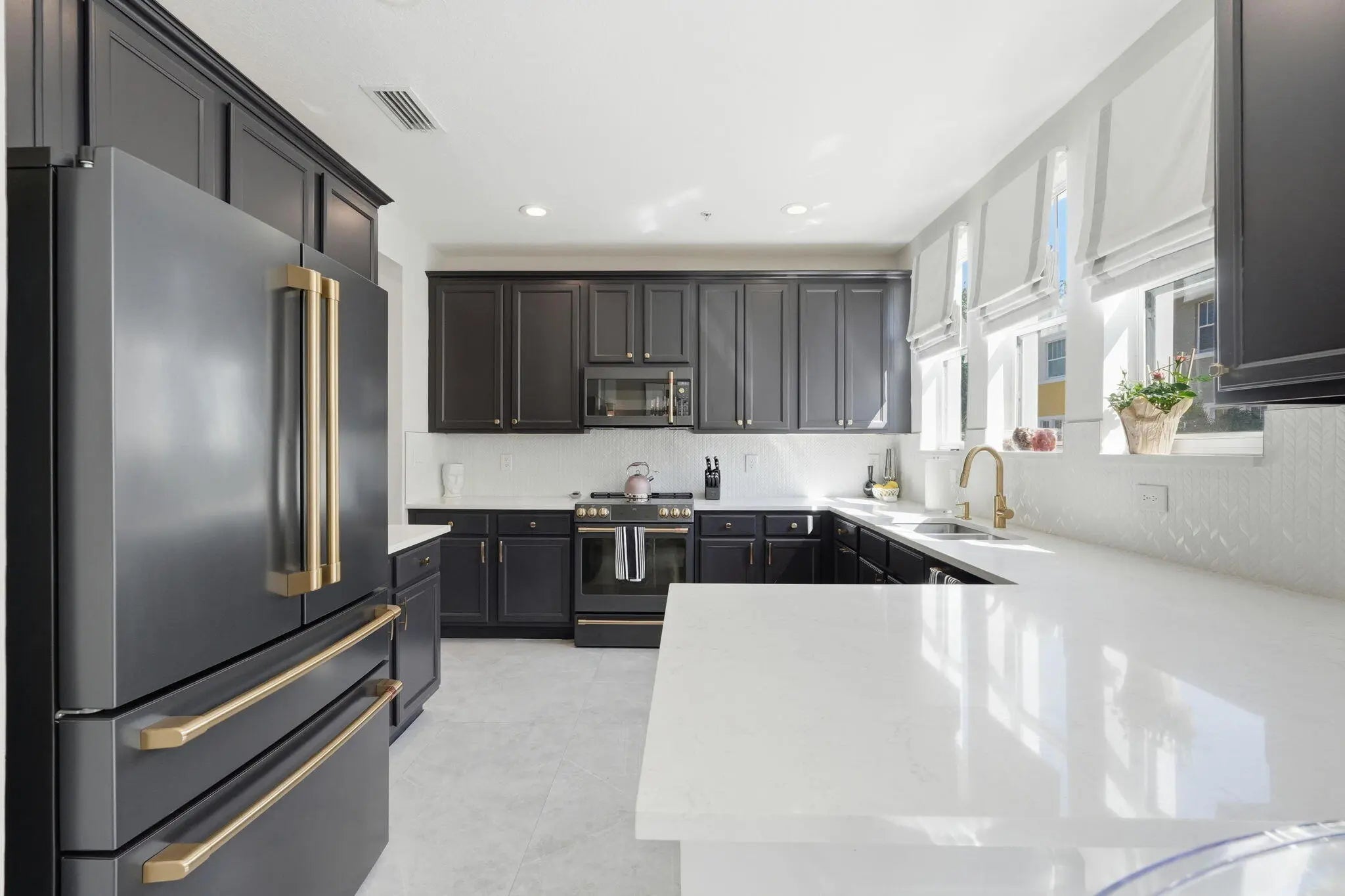 Welcome to an extraordinary opportunity in the heart of West Palm Beach — a fully reimagined, designer-curated luxury residence at 1717 Borrego Way, Unit 4. This stunning three-level townhome offers 4 bedrooms, 3.5 bathrooms, and a spacious 2-car garage, seamlessly blending modern sophistication with high-end custom finishes throughout. Every detail has been thoughtfully upgraded to deliver a truly elevated living experience. Step inside to a beautifully enhanced entry foyer featuring new flooring and refined millwork details that set the tone for the entire home. The first level includes a private guest suite with improved functionality and a fully upgraded bathroom featuring sleek frameless glass shower doors. The second level showcases a showstopping chef's kitchen designed for both beauty and performance. Highlights include custom cabinetry with updated hardware, a built-in pantry, designer backsplash, new flooring, and luxurious countertops. Top-of-the-line appliances include a premium Café Appliances suite and a panel-ready Cove dishwasher, creating a seamless and sophisticated aesthetic. Retreat to the expansive primary suite, complete with custom closets and a fully renovated spa-inspired bathroom featuring new flooring, designer tilework, custom cabinetry, upgraded plumbing fixtures, and curated lighting. Thoughtful touches such as electric blackout shades and custom drapery pockets add both comfort and elegance. Additional upgrades include: • New Samsung stackable washer and dryer with custom cabinetry • Fully renovated powder room with designer finishes • Custom closets in multiple bedrooms • Whole-home water filtration system • Smooth-finish walls and freshly painted interiors throughout • Updated interior doors and hardware • Epoxy-coated garage floors, built-in storage, and upgraded garage system (MyQ compatible) • Integrated alarm system for peace of mind Residents enjoy access to resort-style amenities including a pool, fitness center, and a 24-hour manned security gate, offering both luxury and convenience. Perfectly positioned just minutes from downtown West Palm Beach, pristine beaches, fine dining, and world-class shopping, this exceptional residence delivers the ultimate in South Florida living.