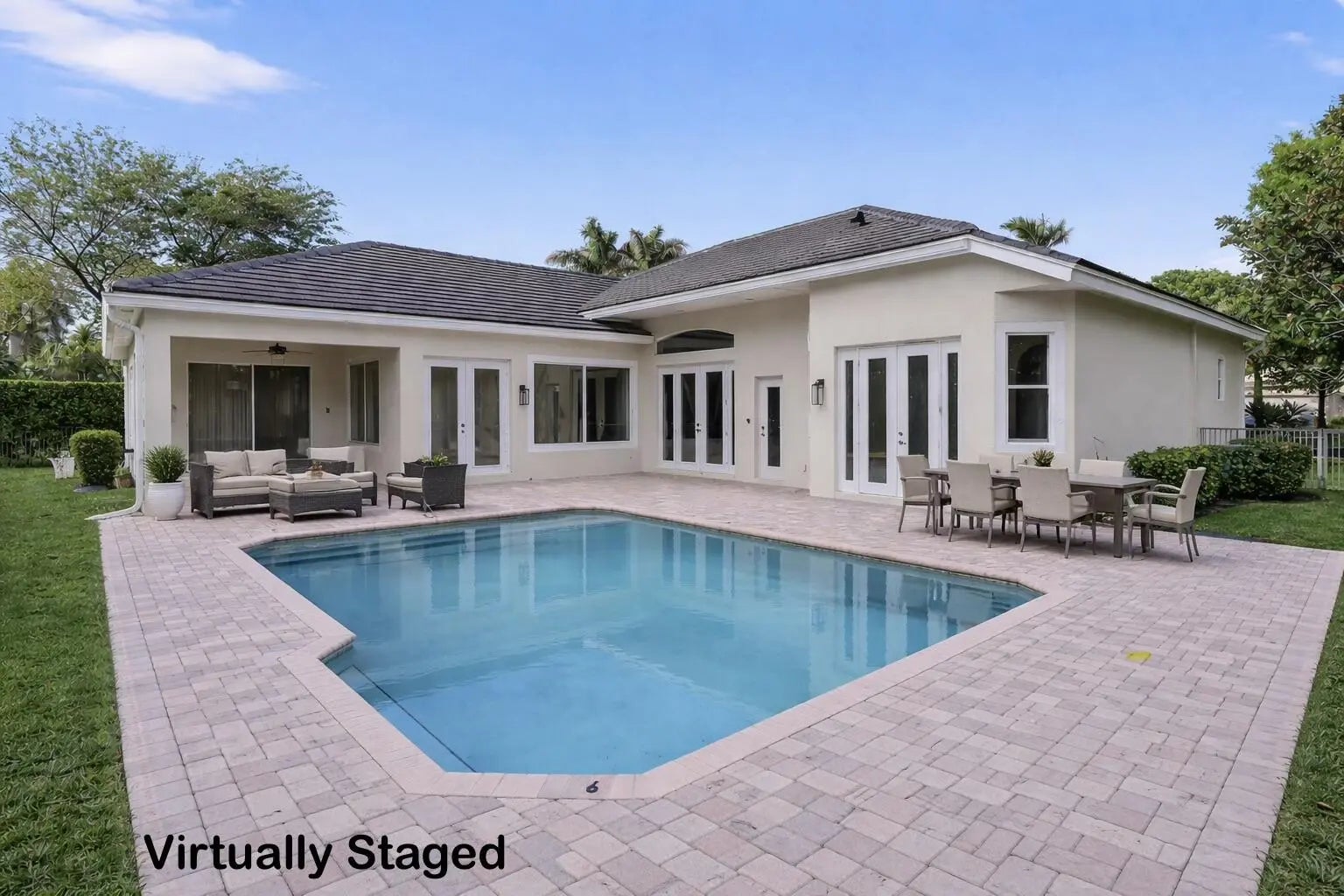 Beautiful spacious home in a private gated community in highly sought after Jupiter. Its location at the end of a cul-de-sac with private backyard setting making it a highly desired location. This large single story home features 4 large bedrooms and 4 full baths with private office/den and oversized playroom. It has a brand-new roof and is newly painted inside and outside. Entire home is recently updated, including high end kitchen and granite bathroom. Natural light fills the interior, highlighting the quality craftsmanship throughout. Close proximity to "A RATED SCHOOLS", beaches, restaurants, shopping, and major highways. This home is perfect for entertaining with a large open floor plan, a spacious covered lanai, and oversized heated pool.