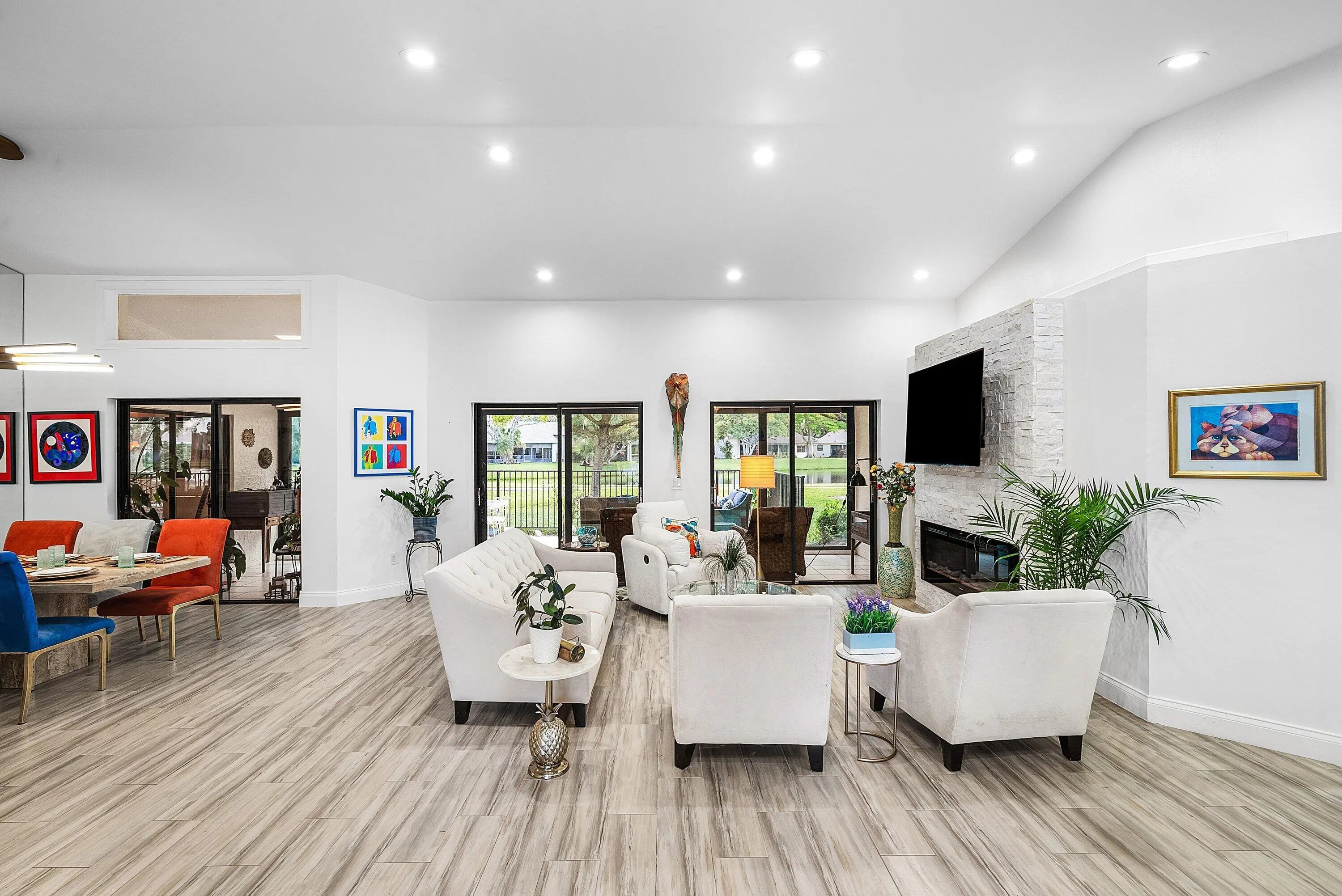 Come Live the 55+ Country Club Lifestyle in this Lake & Golf Front Home*Contemporary Features & Flexible Spaces Make this Estate Home a Fabulous Choice*Set on .3 Acres in a Private Cul-de-Sac, this home has Ample Areas for Entertaining*A Large Living Room w/ a Fireplace, Vaulted Ceilings w/ Great LED Lighting & a Double Entry Front Door to let in the Sunsets*2 Patios-1 Screened & the other Open to Watch our Fantastic Wildlife*Hurricane Windows & Doors Throughout*Also a Large Enclosed Patio adds Bonus Living Space*Boca Delray is all about fun with NO Annual Dues*From our Challenging Par 60 Golf Course to Pickleball, Tennis, Concerts & Parties, Boca Delray's Location is close to Both Downtowns of Boca & Delray, the Beach & Both Airports*A Sensational Club at a Sensible Price*A Real Gem! There is a 4% Capital Contribution paid at closing by the Buyer*Our 55+ Country Club is located on 160 Acres, Our Newly Renovated 12,000 Square Foot Clubhouse has a Cafe, Gym & Weight Room, Exercise Classes by a trained expert, & now we are building a New Front Gate House with added Security. Our Cafe sells the honey we make from our Beehives and our Butterfly gardens are quite serene. I love it so much I live here. If you want a NO DUES Club, we are the answer. I look forward to meeting our newest resident.