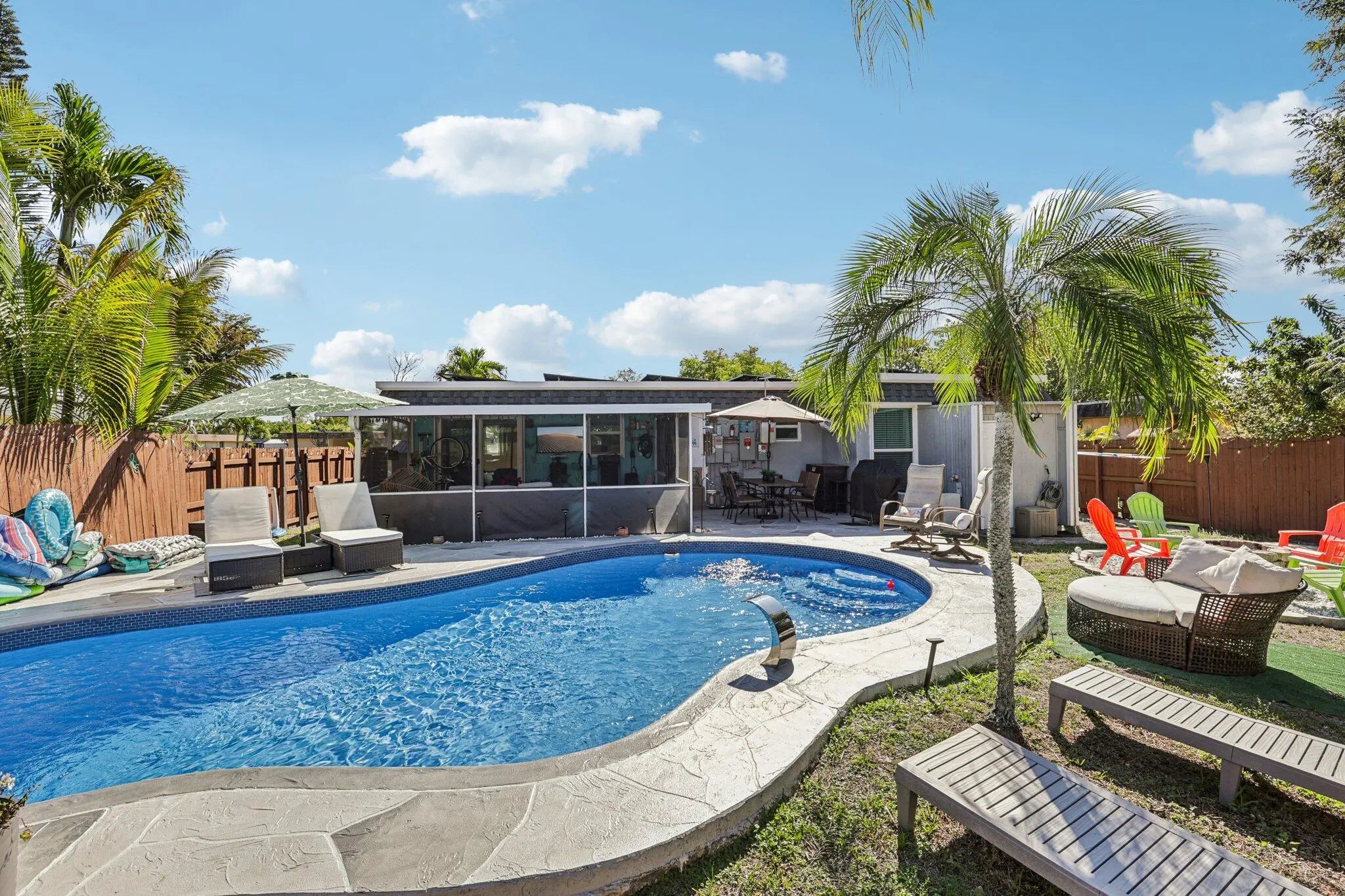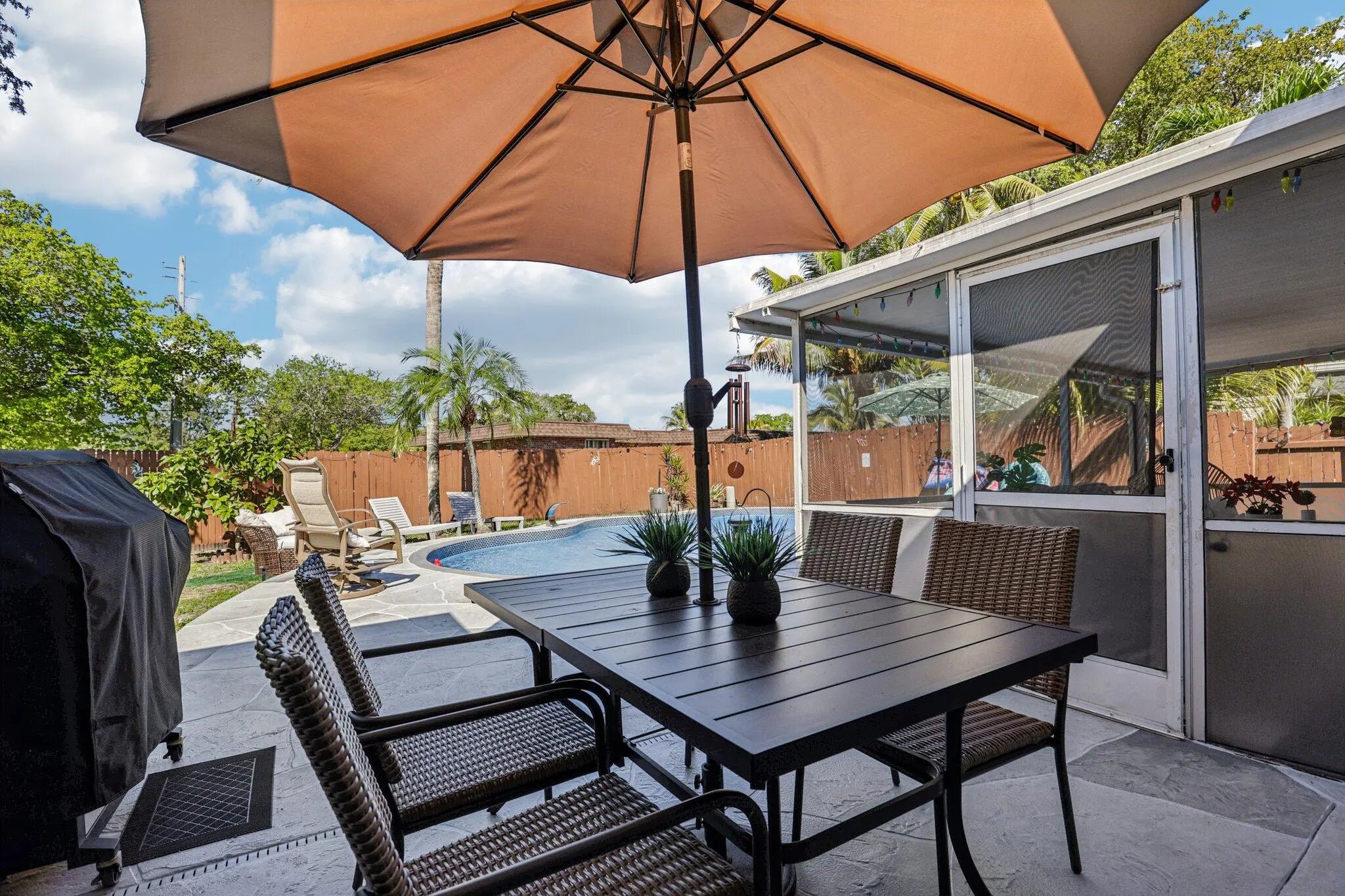 Beautifully maintained pool home with upgrades and an open-concept layout perfect for comfortable living and entertaining. Bright living and dining areas flow seamlessly to a private outdoor oasis. Enjoy your sparkling pool and expansive screened patio, ideal for relaxing or hosting gatherings year-round. The backyard also features a fire pit, storage shed, mature mango and avocado tree. Inside offers upgraded flooring, stainless steel appliances, and a newer washer and dryer. Major updates include a brand-new 2024 roof and CAT5 tinted impact windows for added safety and efficiency. Spacious bedrooms, ample closet space, and a two-car driveway complete the home. Perfect for those looking to enjoy the best of Florida living.