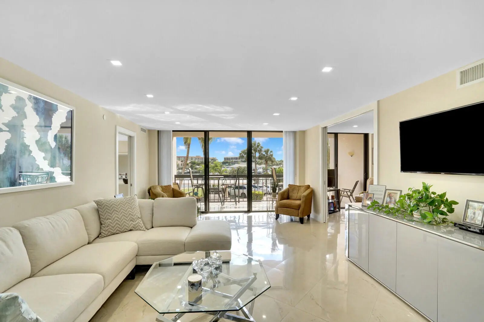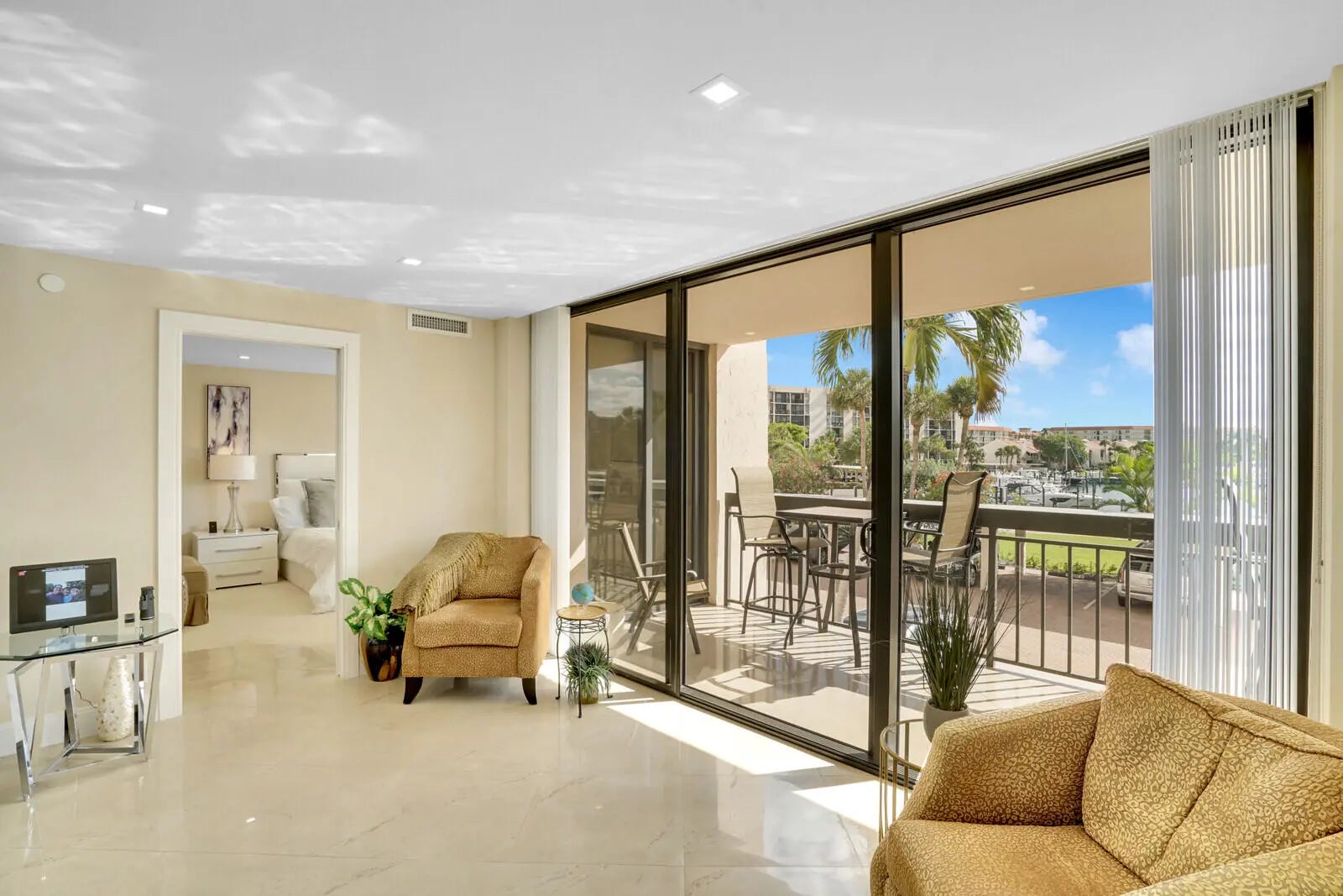 WOW!! Beautiful, upgraded 2BR, 2BA condo located in the resort-style Yacht & Racquet Club of Boca Raton. Beautiful cream/white/stainless kitchen opens to dining room/living room area and extends to the balcony offering lovely, peaceful marina views. Unit features a large split floor plan and impact glass throughout. Only here at YARCOBR can you find a full-service restaurant and bar open six days a week, offering brunch, lunch, happy hour and dinner. Newly renovated and poolside, this Chickee Bar adds to the community's unique appeal. Additionally YARCOBR has 750 feet of private beach, a deep-water marina, three heated pools and two hot tubs. Exciting renovations just completed on the newly-opened state-of-the-art clubhouse that features a 3000 sq ft fitness center, an additional 1600 sq ft exercise studio, several versatile multi-purpose rooms, a full kitchen and pantry for special events, an art room, performance space, conference area, and an administrative office suite. With the addition of 12 new pickleball courts, the already active racquet sports program will be further enhanced, and EV charging stations will soon be available on-site. Don't miss the opportunity to make F-205 yours. YARCOBR truly offers a blend of comfort and high-end coastal living, luxury and convenience - everything you need right at your doorstep. Perfectly positioned between the ocean and the intracoastal on A1A, it offers the ultimate in the Boca Raton resort lifestyle. Call us today!
