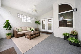 Nestled within the prestigious gated community of Normandy Village, this beautiful residence offers the perfect blend of luxury, comfort, and refined Florida living. Boasting over 1,600 square feet of thoughtfully designed space, the home features three bedrooms, two full bathrooms, and a two-car garage. A set of double front doors welcomes you into a bright, open foyer that flows seamlessly into a spacious living area highlighted by volume ceilings, creating an airy and inviting atmosphere. The kitchen, extensively remodeled in 2021 with over $25,000 in upgrades, serves as the heart of the home with its elegant wood cabinetry, stainless steel appliances, granite countertops and backsplash, modern finishes, ample storage, and a convenient pantry. The primary suite is filled with natural light and offers a walk-in closet along with sliding glass doors that open to the covered lanai. The stunning, updated en-suite bath delivers a spa-like experience with a large walk-in glass shower, dual sinks, and additional storage for linens and towels. Outdoor living is equally impressive, with a private covered lanai providing the perfect setting to enjoy Florida's beautiful weather, while the backyard features pavers ideal for lounging and garden spaces. The home is further enhanced by numerous upgrades, including a new Armored roof installed in 2026 with a transferable warranty, impact windows and doors replaced in 2022, an impact garage door, a newer central A/C system with transferable warranties valid through July 2029, updated electrical, a 2020 water heater, renovated kitchen, luxury vinyl flooring throughout the main living areas, a new washer and dryer installed in 2025, over $11,000 in bathroom renovations, and garage improvements such as attic insulation, a window A/C unit, UV blue light in the A/C system, and built-in cabinetry. Cameras inside home do not convey. Residents of Normandy Village enjoy the benefits of a gated community with low HOA fees, access to three community pools, parks, a tennis court, and included front landscaping maintenance. Ideally located just minutes from Downtown West Palm Beach, fine dining, shopping, and entertainment, the home also offers convenient proximity to the beach and Palm Beach International Airport, making it a truly exceptional place to live.
