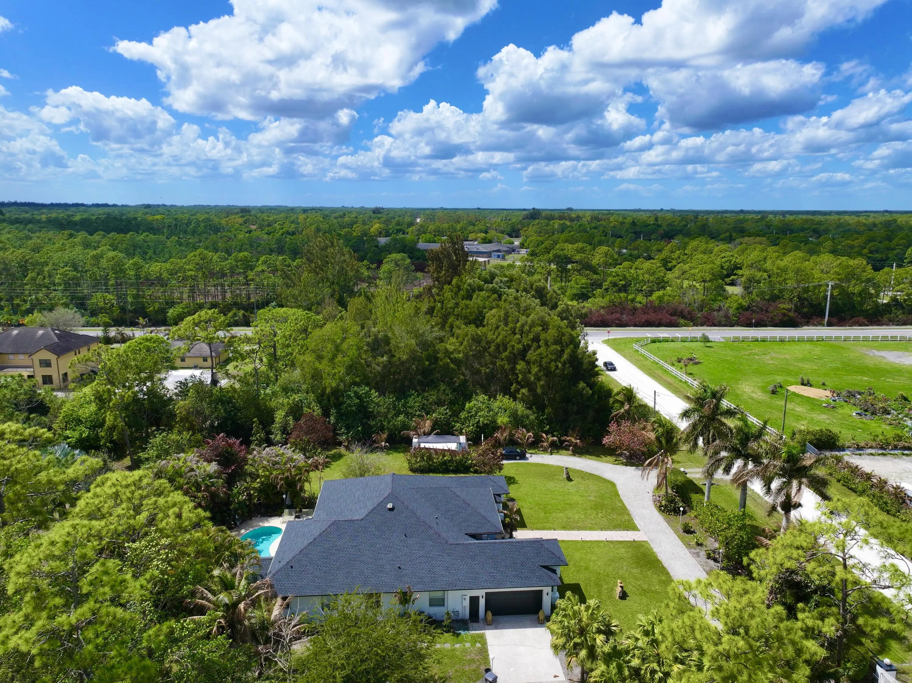4425 TOTAL SQ FT ***. NEW ROOF !! 1.16 ACRES !! LOCATION !! LOCATION !! LOCATION !! MASSIVE HOME IN LOXAHATCHEE/ ACREAGE AREA **. 5 BEDROOM 3 BATHROOM 2 CAR GARAGE , POOL HOME WITH LUSH GREENERY FOR PRIVACY **. FULLY FENCED **. ELECTRIC GATE **. CIRCULAR DRIVEWAY ** 3 WAY SPLIT- EASY TO HAVE PART AS GUEST HOUSE/ IN LAW QUARTERS **. MINUTES WALKING TO PUBLIX, SHOPPING, LIBRARY BANKS, GAS , AND NEW WESTLAKE ER !!!! *** City Water possible and Near by *** Welcome to your private Oasis in the heart of loxahatchee ! Situated on over 1.16 acres, this beautifully positioned property offers the perfect combination of space, privacy, and true South Florida lifestyle Living !!!! Set back on a quiet street with a long private circular drive, this home is surrounded by lush greenery and estate- style properties, creating a peaceful and secluded environment while still being conveniently located near shopping, dining, and top-rated schools !! Enjoy the outdoor living at its finest with a sparkling pool and covered patio, barbecue area, fish pond and entertaining area or just relaxing and enjoying year-round Florida sunshine. ***.The expansive lot provides endless possibilities- bring your boats, RV's animals, or design the backyard of your dreams ***. With Agricultural Residential Zoning and NO hoa , this property offers unmatched flexibility and freedom- perfect for homeowners, hobbyists, or anyone seeking space to live , work and play ***A rare opportunity to own a Full acres+ property in one of Palm Beach County's most desirable acreage communities !!! With NO HOA RESTRICTIONS AND EASY ACCESS TO MAIN ROADS, THIS IS A PRIME OPPORTUNITY FOR EQUESTRIAN ENTHUSIASTS, CONTRACTORS, OR BUYERS SEEKING A FLEXIBLE LIVE-WORK LIFESTYLE ***SCHEDULE YOUR APPOINTMENT FOR A PRIVATE VIEWING TODAY !!!