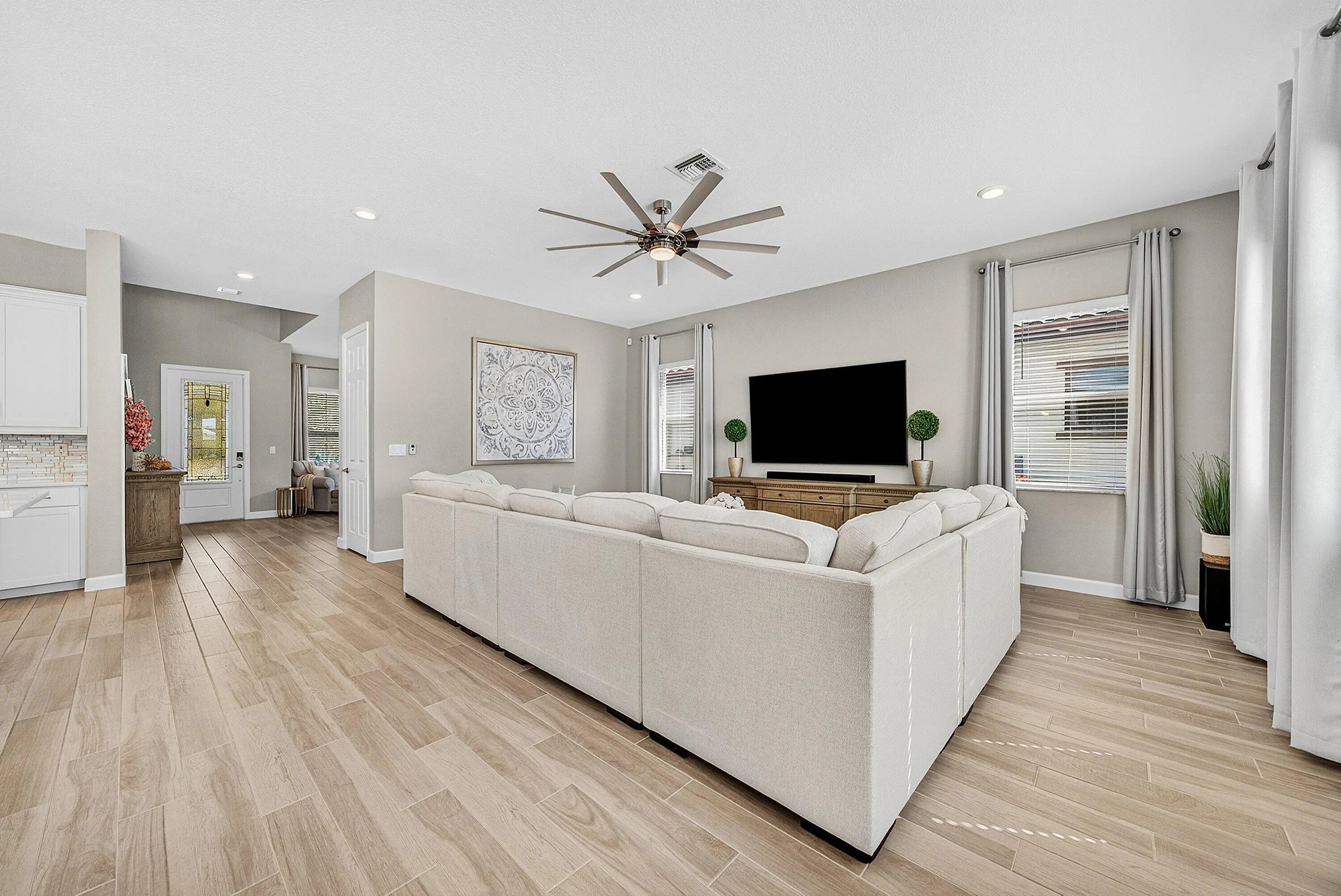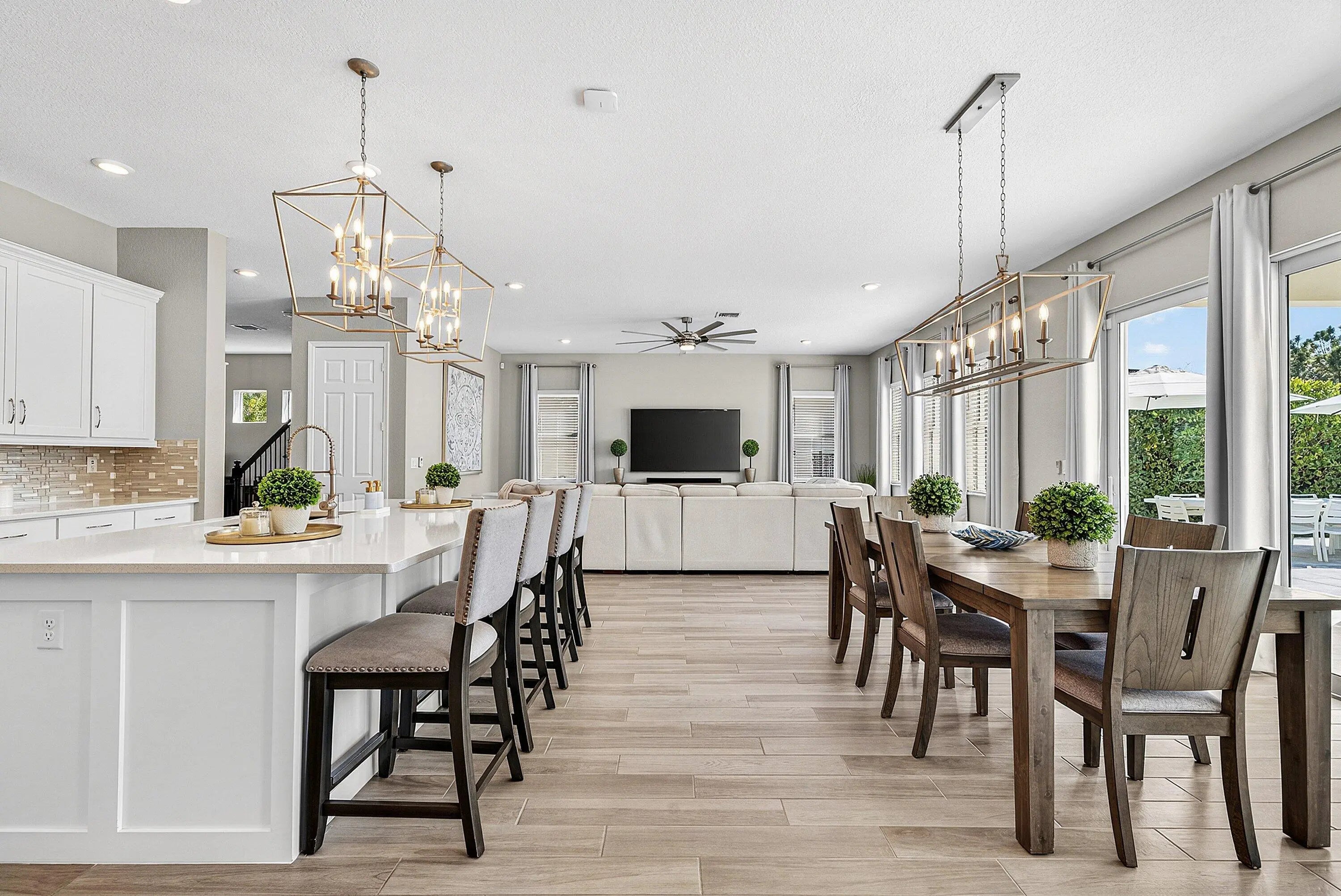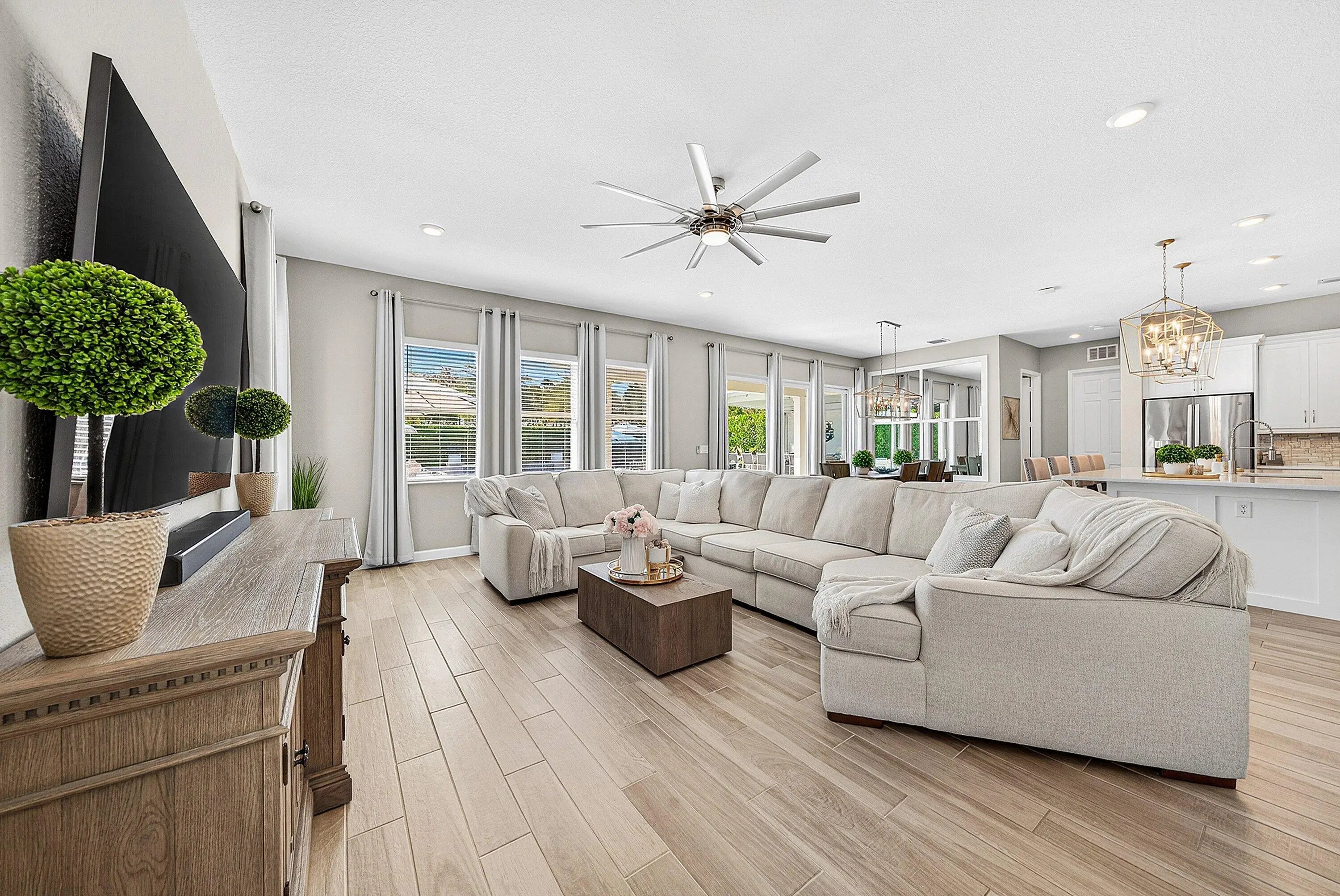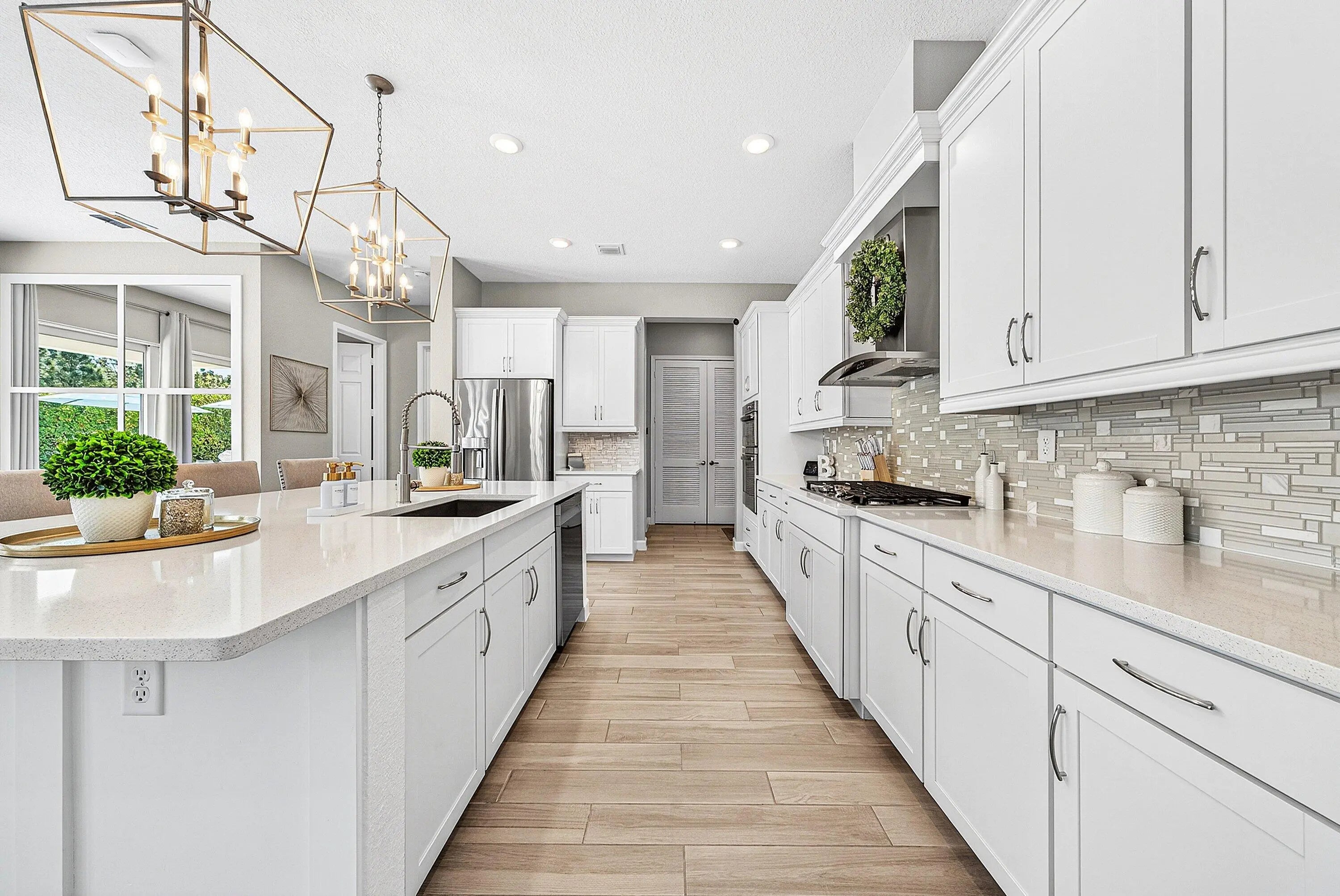Welcome to this highly upgraded Lennar Chelsea model in the award winning Arden community, offering 5 bedrooms, 4 bathrooms, and 3,361 square feet under air. This beautiful home features upgraded flooring throughout with no carpet, an upgraded gourmet kitchen, upgraded glass front door, upgraded stair railing, upgraded light fixtures, ceiling fans in all bedrooms, living room, and loft, custom closets, custom bathroom and office cabinetry, built in safes in the primary closet and office, camera system, and Ring alarm with door and motion sensors throughout. Step outside to a resort style backyard designed for both relaxation and entertaining, complete with a saltwater 40 x 20 pool featuring two sun shelves, bubblers, fire wall, autofill and auto drain, LED lights, and LED water sheers. The covered outdoor kitchen with pergola includes a natural gas grill, flat top grill, ice machine, sink, and two refrigerators. Additional exterior upgrades include solar panels, whole house generator, landscape lighting, permanent holiday lighting, SWAT mosquito system, gutters, privacy landscaping, side walkway, and a fully fenced yard. A rare opportunity to own one of Arden's most impressive Chelsea models with exceptional indoor and outdoor living.