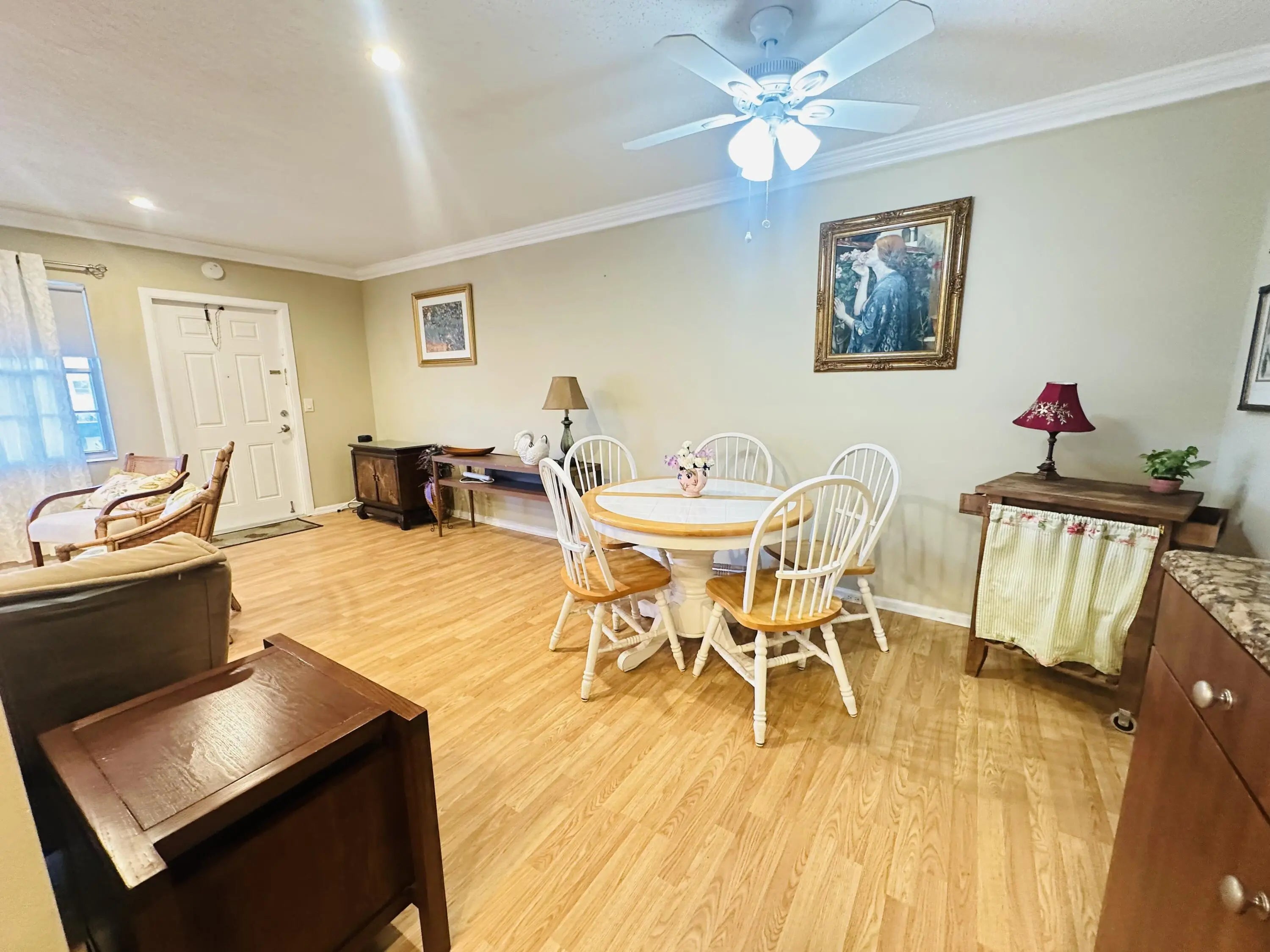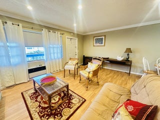 IMMACULATE renovated 1BR/1.5BA 2nd flr condo w/lift access, perfectly situated in a vibrant 55+ community. Beautifully updated kit w/white appl, granite cntrs, dbl sink, recessed ltg, ext cabs for added strg w/a built in wine cooler. Bright, open liv space w/crown molding, Pergo flrs, recessed lts in liv rm & 2 window wall A/C's for great cooling. Bathrms have been nicely updated incl a walk-in shower in primary. Relax on the screened patio w/roll down shutters and a serene garden view. Just steps to pool & tennis & close to West Gate! Enjoy an active, carefree lifestyle in a quiet, well-maintained setting! Century Village offers resort-style living w/a grand clubhouse, shows, classes, clubs, pools, tennis, pickleball, gym, clubs, classes, a courtesy shuttle & MORE! Assoc. Claims 55+