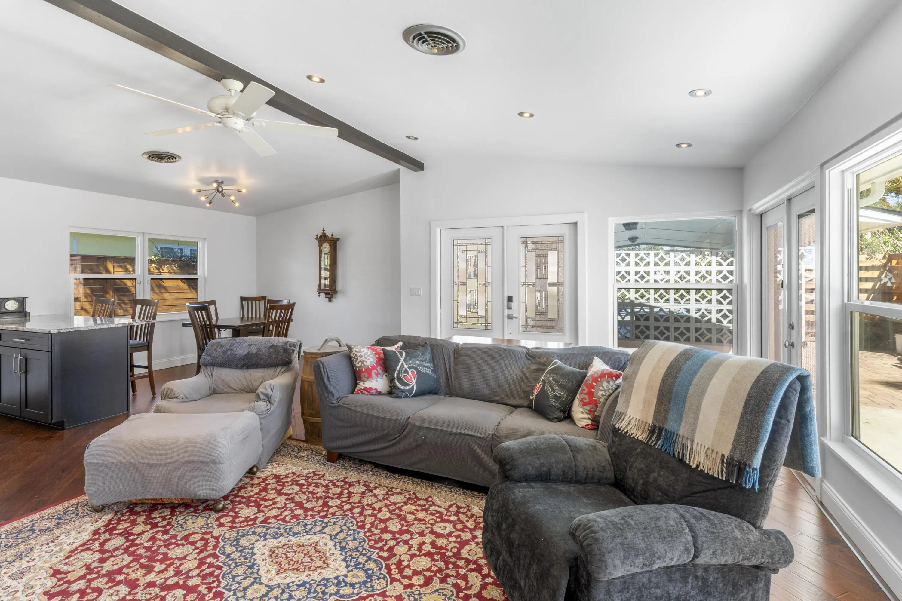 Barrier Island Living in the Heart of Central Beach - Close to Everything. Well-maintained 2-bedroom, 2-bath home offering 1,300 sq ft of coastal comfort in highly desirable 32963. Positioned on a quiet street with parks at both ends, this property provides close proximity to both the Atlantic Ocean and the Indian River Lagoon, as well as Riverside Theatre and the Vero Beach Museum of Art. Major systems have been addressed, including a 1-year-old roof and wind-rated windows. Interior features include engineered wood flooring throughout (tile in baths), updated kitchen and bathrooms at purchase (2014), tankless water heater, whole-house water filtration system, and a heated whirlpool tub in the primary bath. Exterior improvements include privacy fencing.