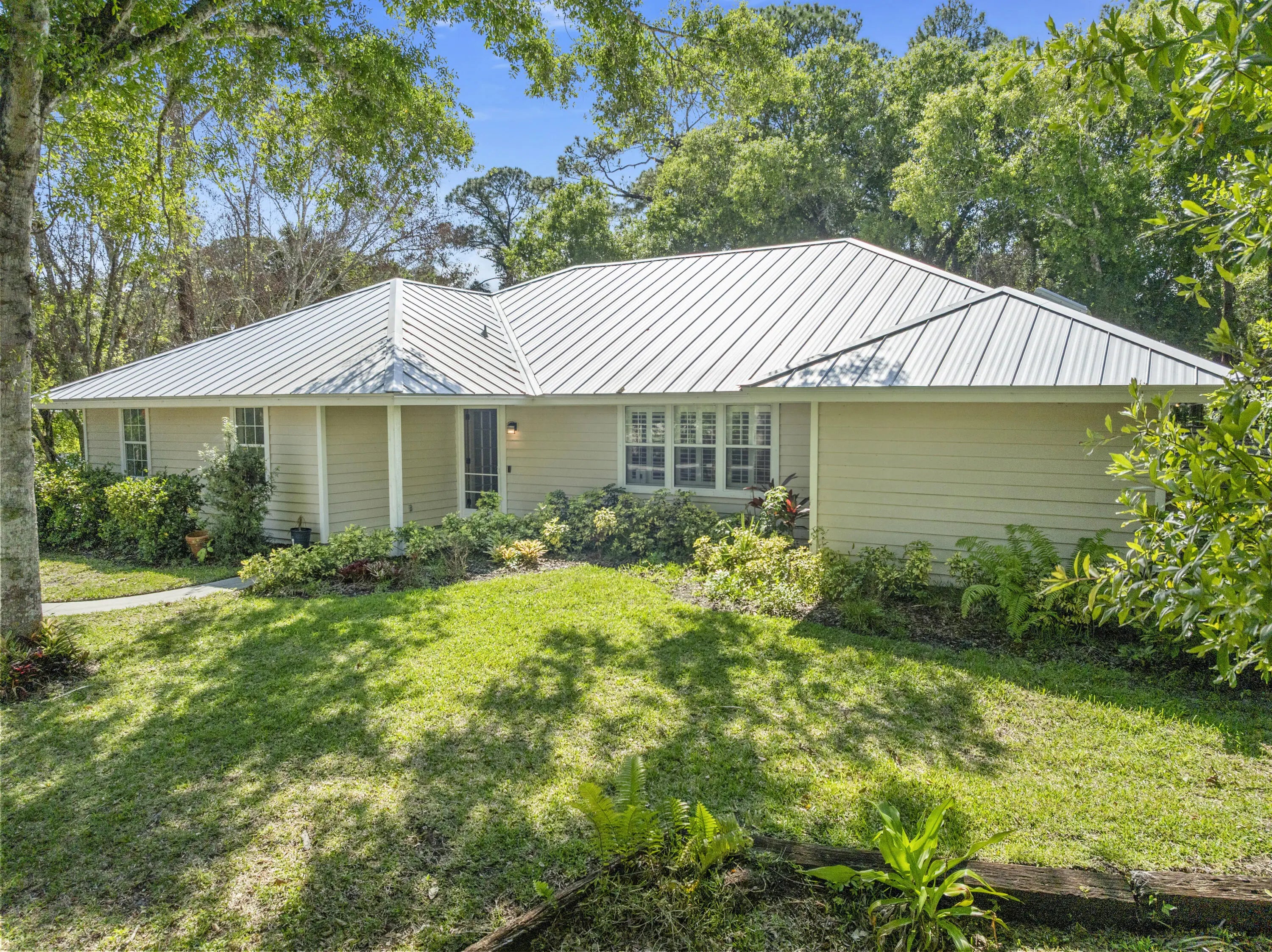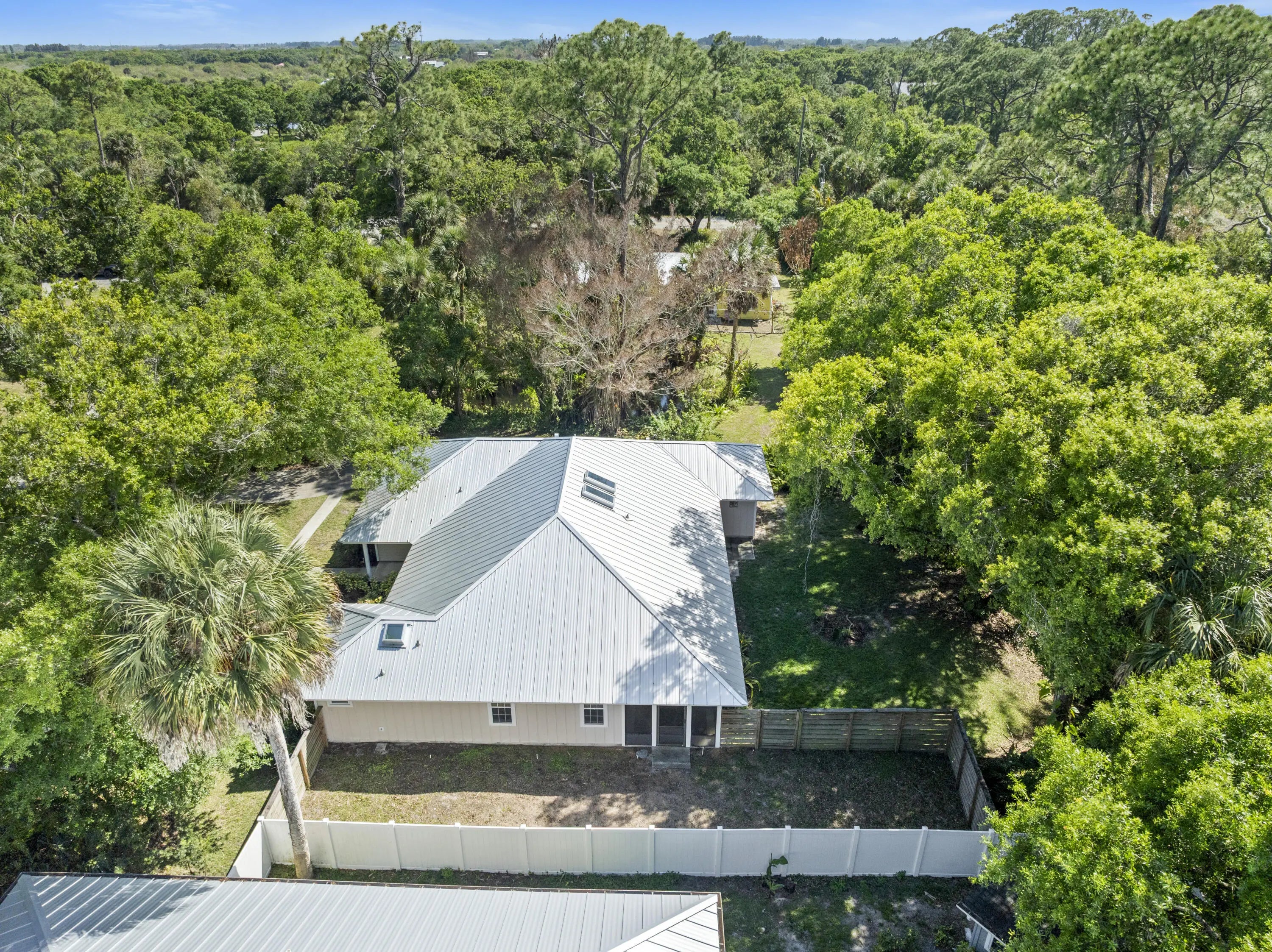 Set on an oversized lot in a quiet, no-HOA neighborhood, this 3BR/2BA split floor plan home offers 1,732 sq ft of comfortable living space with a focus on privacy and flexibility. The yard boasts mature trees, creating a natural beauty that enhances the peaceful setting enjoyed from the screened lanai...perfect for relaxing or entertaining. Inside, the spacious layout features a versatile bonus room ideal for a home office, second living area, or playroom. Major updates include a standing seam metal roof with new skylights (2 years old), remodeled master bath shower, new well pump, and fresh exterior paint. Located just minutes from shopping, dining, parks, and the beach, this home combines convenience with a private, laid-back setting. A must see!!