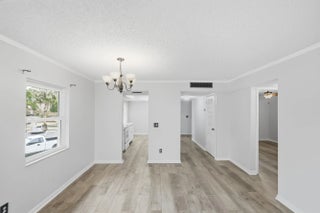 Come take a tour of this Beautiful 2-bedroom, 2-bath corner condo located on the second floor at Tropic Groves! This well-maintained home features updated plank wood flooring throughout, a beautifully updated primary bathroom, and fresh interior paint that gives it a bright, clean feel. Enjoy relaxing by the sparkling community pool and take advantage of the convenient location—just minutes from shopping, dining, and a short drive to the beach.