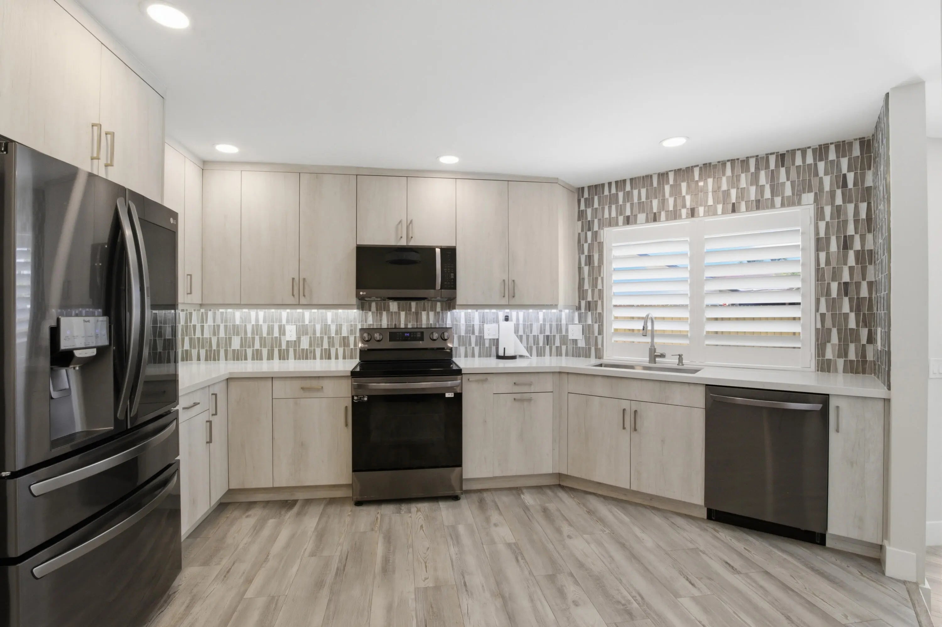 Move-in ready and a must-see! This beautifully updated one-story 3edroom, 2 bath pool home offers incredible value. Featuring impact windows and doors throughout, a custom kitchen with LG appliances, quartz countertops, and a beverage center. Updated bathrooms include marble showers, frameless glass enclosures, adult-height vanities, and quartz tops. Enjoy luxury vinyl flooring, updated baseboards, doors, and hardware. Updfated garage door with epoxy floor. The backyard is perfect for entertaining with an in-ground pool, spacious deck, pergola, and new fence. Updated lighting fixtures including recessed lights, Plantation Shutters, Built in closets in all bedrooms, turf in rear yard, updated landscaping and lighting in front of home, new HVAC ductwork, new electrical panel interior,