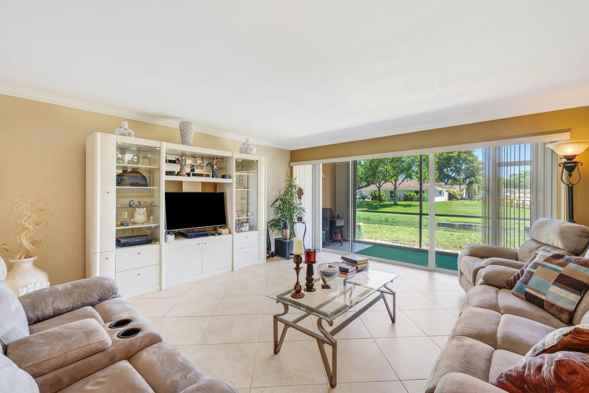 Well-maintained and updated 2-bedroom, 2-bathroom lakefront ground-floor condominium located in a quiet, established neighborhood. This inviting home offers a spacious and functional layout with abundant natural light and serene water views. The open living and dining areas flow seamlessly to a private, screened patio, perfect for relaxing or enjoying peaceful lakefront scenery. The updated kitchen is well-appointed with ample cabinet space and stainless steel appliances, while both bedrooms are generously sized. The primary suite has a large walk-in closet, en suite bathroom, patio access and tranquil lake views. Guest bedroom is an en-suite making it convenient for visitors. Featuring newer water heater and 1 year old A/C with 8yr remaining, transferable warranty. Dedicated dining area has French doors that lead into a well lit flex room, making it a versatile home office/ study space. Convenient ground-floor access adds ease and comfort, ideal for everyday living. In unit washer and dryer. Unit offers 2 assigned parking spaces directly in front and ample guest parking. Isla Merita features a clubhouse and pool and is nestled in a well-cared-for, all ages and pet friendly community, offering a calm, residential atmosphere while still being close to lots of shopping, dining, and local amenities. Well ran association with solid financials. Negotiable furniture makes this turnkey property ideal for a vacation home or primary residence and is truly a must see! Association screening and approval required.