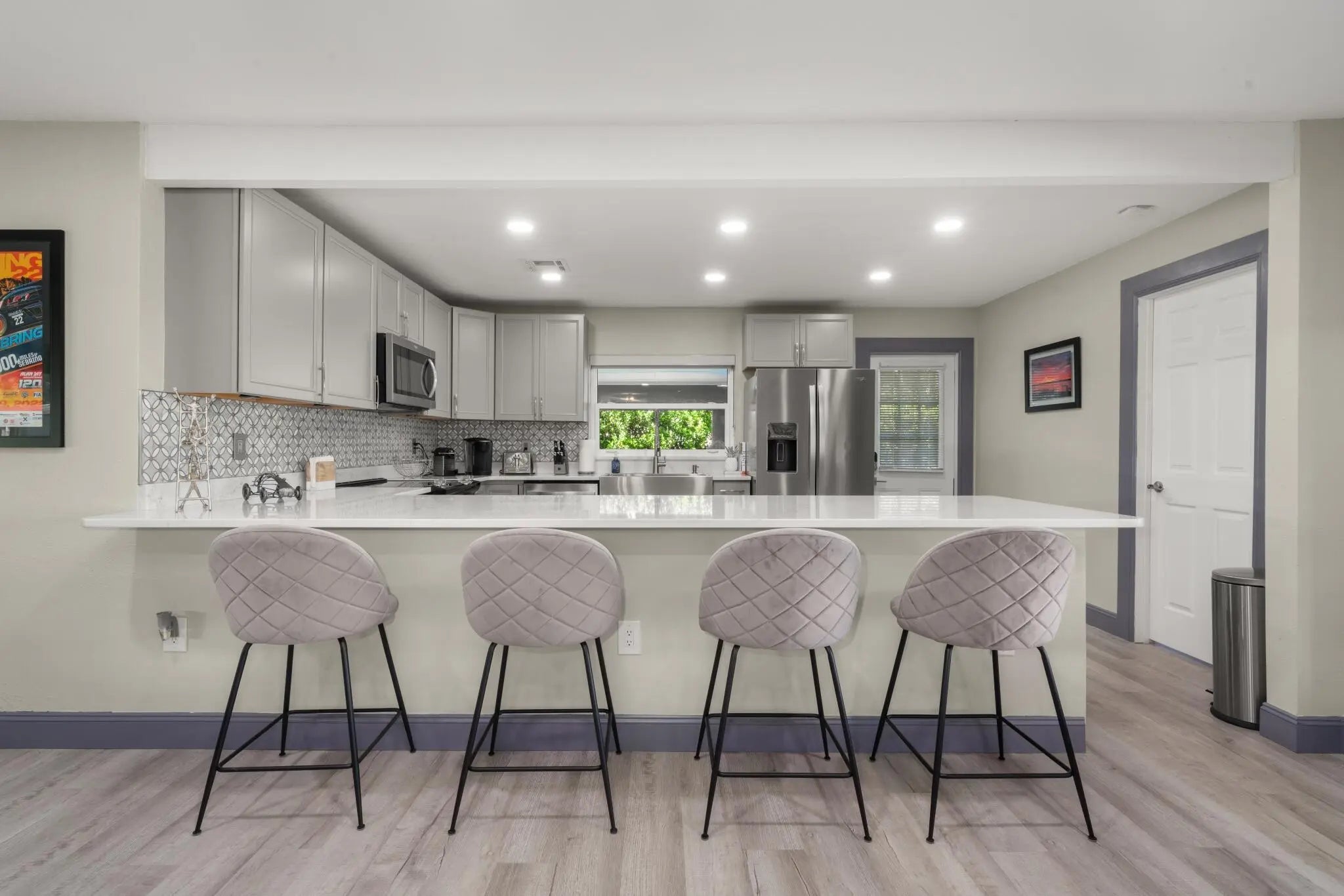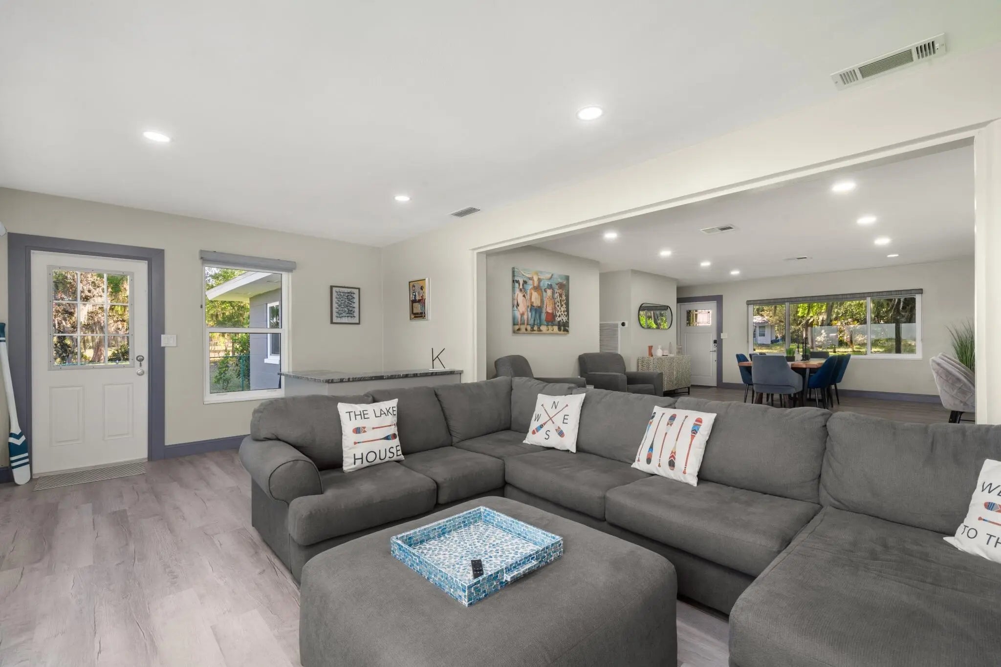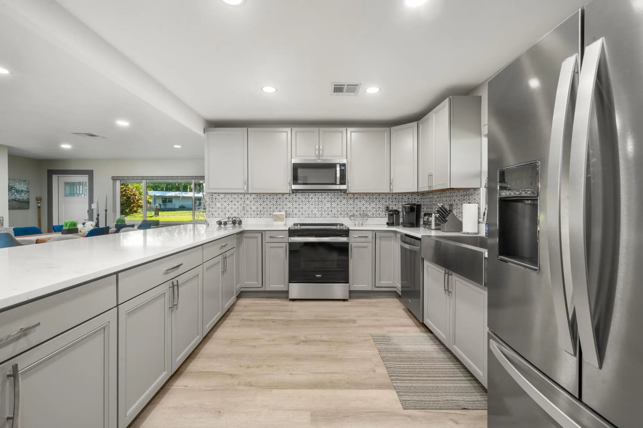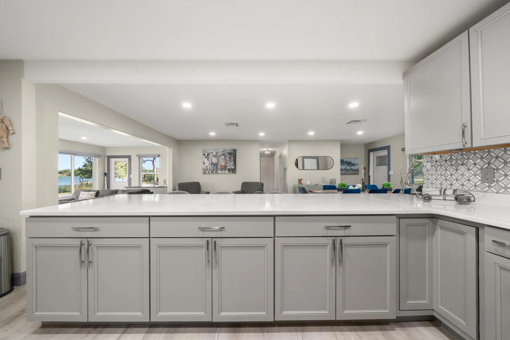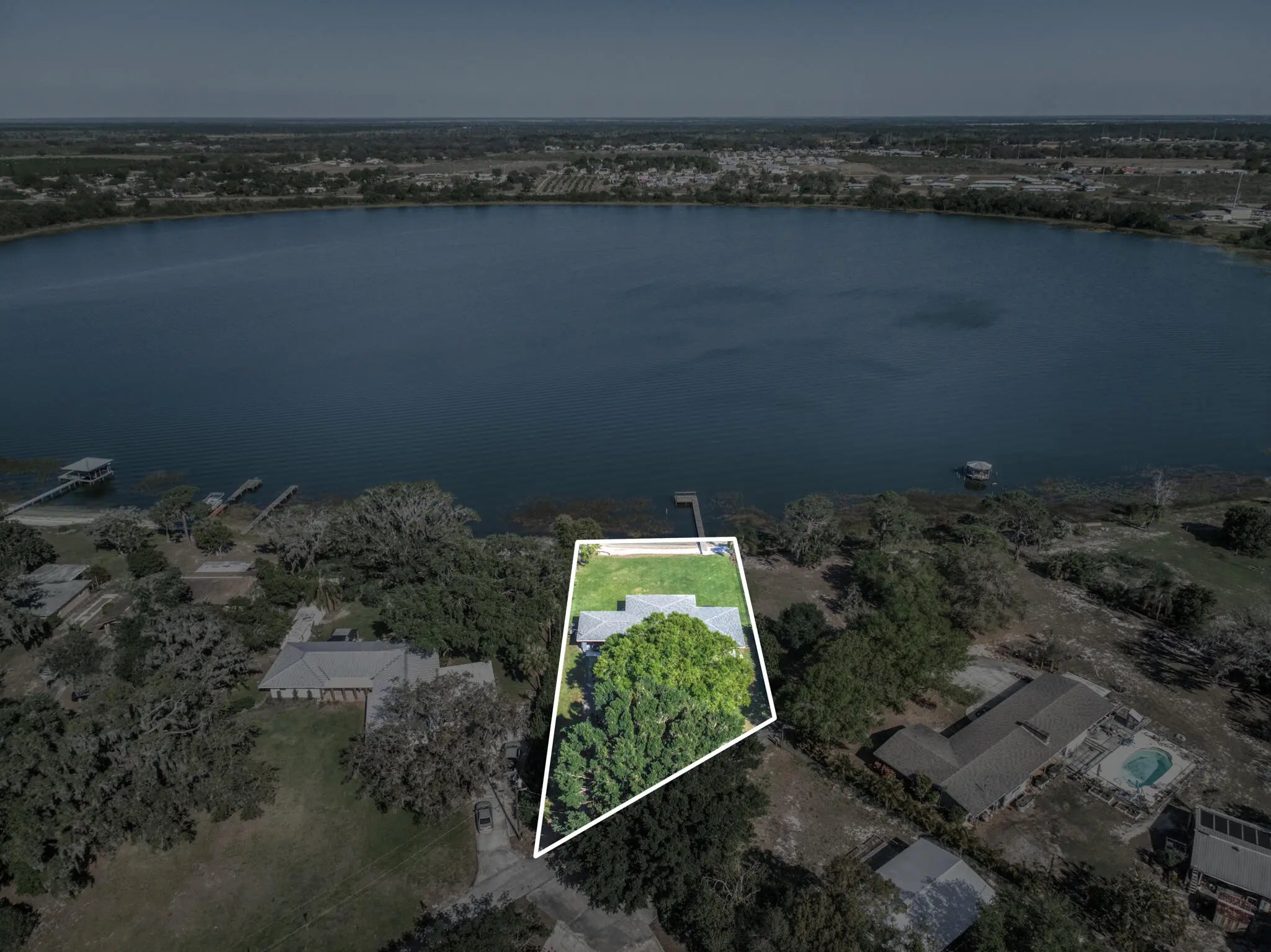 Completely remodeled 4-bed, 3-bath smart lakefront home on a quiet cul-de-sac, just minutes from Sebring's historic downtown circle & Sebring International Raceway. Inside, enjoy a brand-new kitchen featuring quartz countertops, Whirlpool stainless steel appliances, and a high-capacity Rheem tankless water heater. Smart-home upgrades include Kevo WiFi-enabled door locks, a Nest thermostat, WiFi attic fan, and a WiFi sprinkler system for effortless living.Windows with custom window treatments and motorized blinds in the living room easily allow you to enjoy the lake view. The 6-seat hot tub overlooks the lake or make the most of your private dock for fishing, boating, or simply soaking in the sunsets.Furniture is negotiable, making this home an easy, move-in ready escape. Turn off SR17 onto Assembly Point Drive. Once you reach the cul-de-sac at the end of Assembly Point Drive, turn right onto Dinner Lake Dr. The property is the last home on the left.