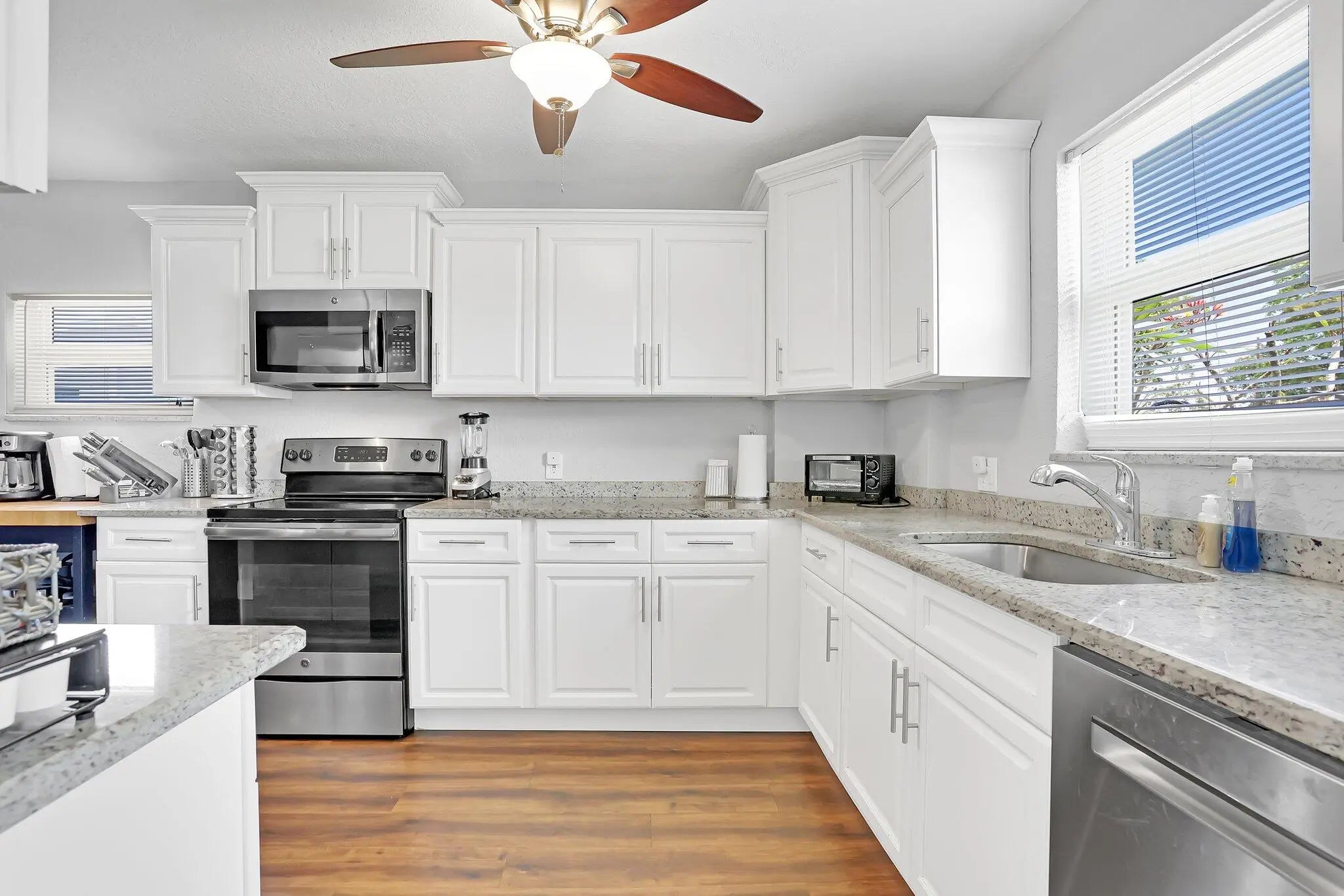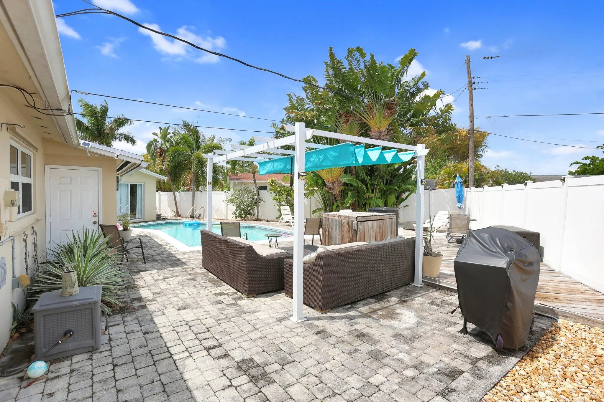 Beautifully updated 4BR/3BA pool home on a corner lot in East Deerfield Beach with a detached guest cottage and full bath—ideal for guests or income. Features a split-bedroom layout, updated baths, ceramic tile and cork wood floors, and a modern kitchen with granite counters and stainless steel appliances. Upgrades include impact windows/doors, newer roof, new AC, fresh paint, Nest thermostat, and Ring doorbell. Enjoy a private backyard oasis with a heated pool (new heater), paver patio, gazebo, and fenced yard. Circular driveway, no HOA, and just minutes to the beach, dining, and shopping. Perfect as a primary home, vacation getaway, or short-term rental investment.