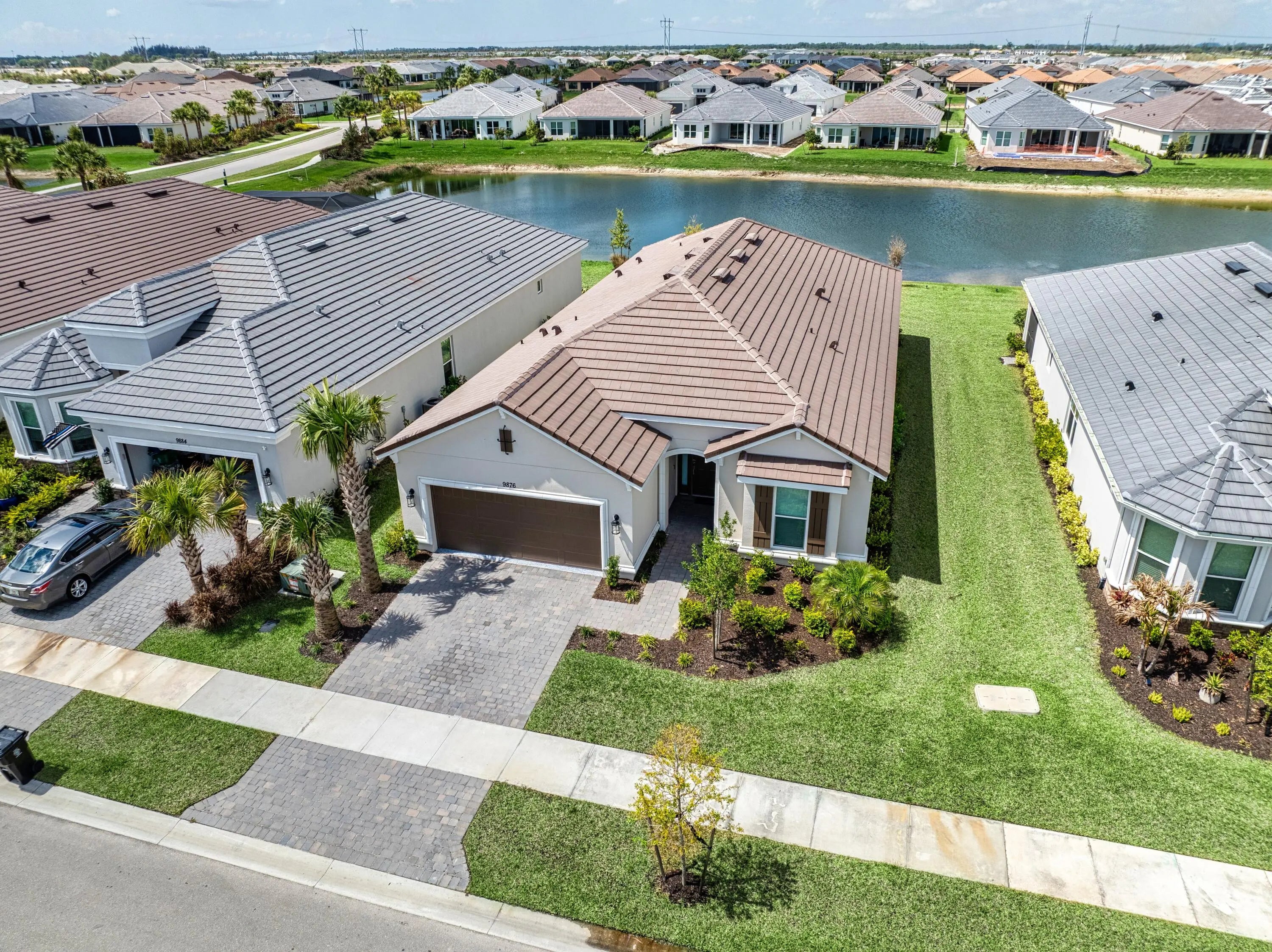 Welcome to this beautifully appointed 3-bedroom, 3-bath home with a versatile den, located in the highly sought-after Esplanade at Tradition. Perfectly positioned to capture a stunning, serene lake view with spectacular sunsets, this home offers the ideal blend of luxury and comfort. Featuring a durable tile roof and full impact windows, this residence provides both style and peace of mind. Inside, you'll find a spacious open-concept layout where the living, dining, and kitchen areas flow seamlessly together—perfect for entertaining or everyday living. The heart of the home is the expansive kitchen, complete with a massive center island, gas range, and ample cabinetry—ideal for cooking and gathering. The oversized primary suite is a true retreat, offering generous space, a large walk-in closet, and a spa-like bathroom with dual sinks and an upgraded walk-in shower. Two additional bedrooms provide comfort and privacy for guests, including one with its own en-suite bathroom. The enclosed den with doors offers flexibility for a home office, media room, or additional guest space. Enjoy peaceful mornings and breathtaking sunsets overlooking the lake from your private outdoor space. This home truly combines thoughtful design, high-end features, and an unbeatable location.