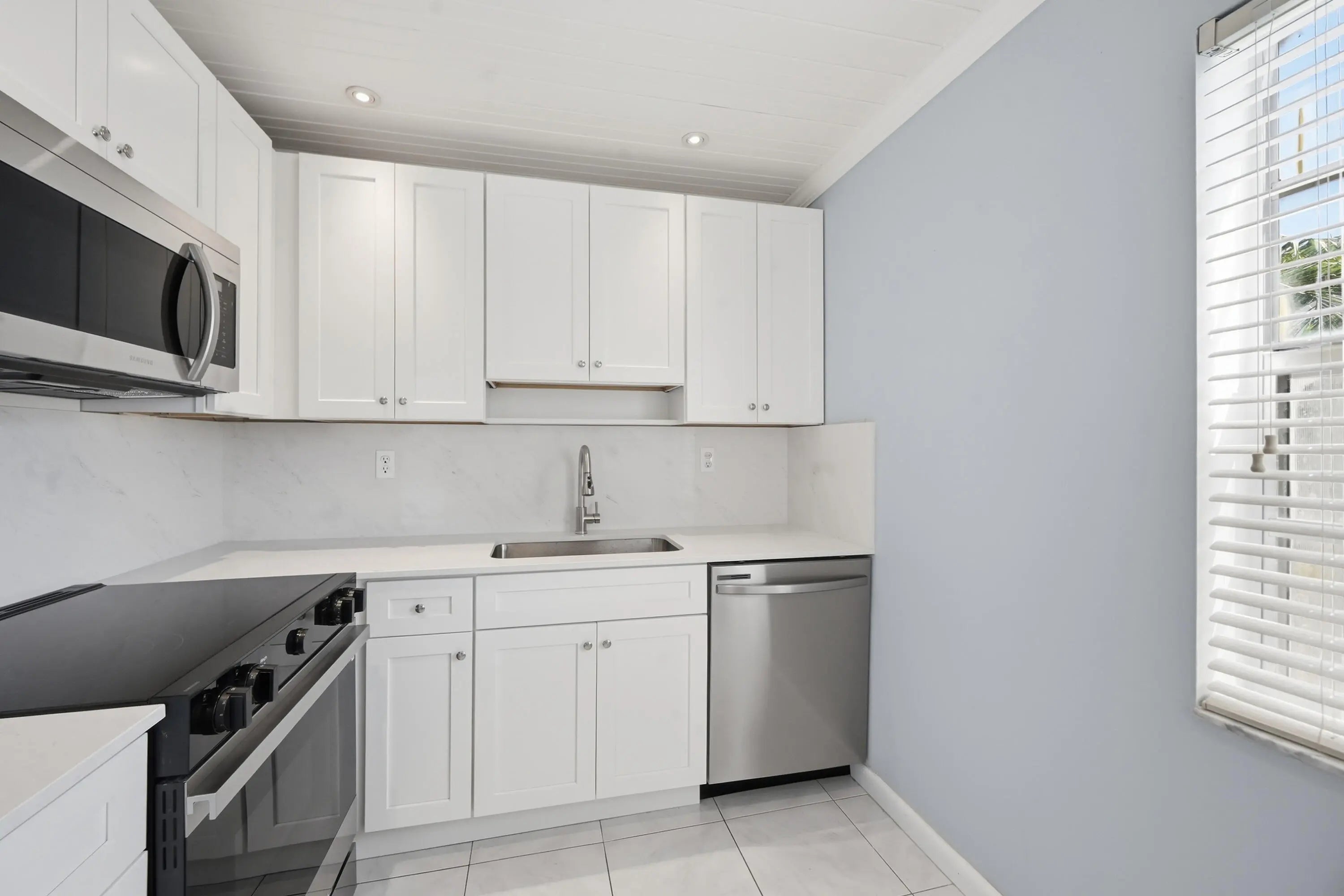 Beautifully renovated 2BR/2BA second-floor condo in the desirable Kings Point Burgundy community. This move-in ready unit features modern Shaker-style cabinetry, sleek quartz countertops, and brand-new stainless steel appliances. Enjoy updated flooring throughout and fully remodeled bathrooms with stylish finishes. Relax on your private covered balcony, perfect for morning coffee or evening unwind. Convenient in-unit washer and dryer included. Located just steps from a private pool, with elevator access in the building for added ease. A perfect blend of comfort, style, and convenience! Corner unit with lots of light!