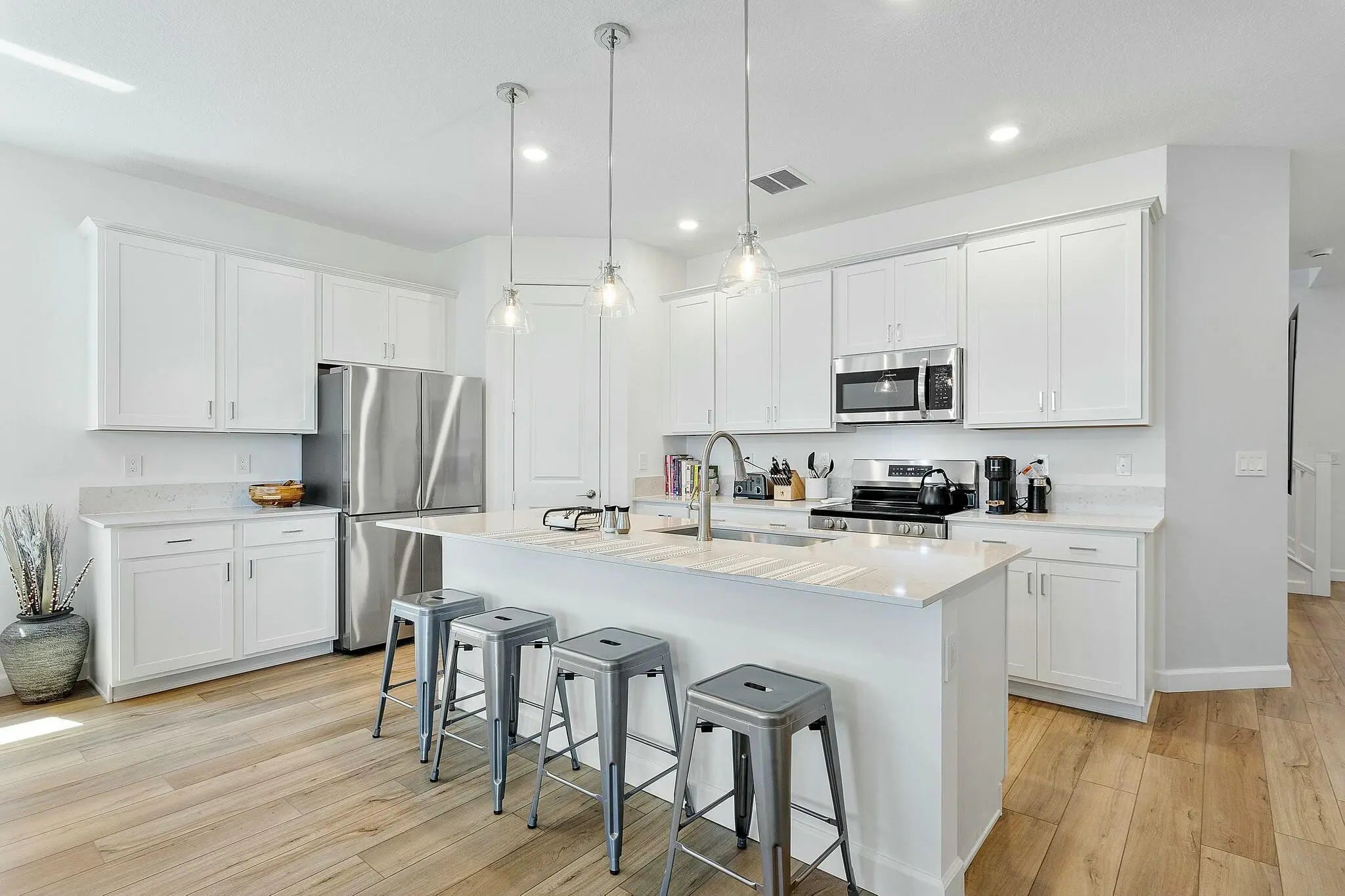 Presenting a beautifully designed, contemporary, and extensively upgraded new residence located in the highly sought-after, sold-out single-family homes section of Delray Trails,a vibrant community. This exceptional home is just a 10-minute drive from the bustling downtown area of Delray Beach, offering both convenience and an active lifestyle. This impressive 4-bedroom, 3-bath home includes a generous loft space, blending modern style with superior comfort. The open-concept layout showcases sleek finishes and stylish décor throughout. The house comes fully furnished, allowing for a seamless and carefree move—simply bring your clothes and settle in. At the heart of the home is a grand kitchen island, ideal for entertaining guests. The kitchen features stainless steel appliances and plenty of counter space, catering to every culinary need. Each spacious bedroom is equipped with massive, customized closets, providing ample storage. The bathrooms are all upgraded with striking fixtures and frameless shower enclosures, adding a touch of luxury to everyday living. All furniture and furnishings are brand new and beautifully selected to complement the home's modern aesthetic. This residence is set on a professionally landscaped lot with a privacy hedge, ensuring a serene and private outdoor environment. The home is equipped with a state-of-the-art security system, including cameras, high-speed Internet and landscaping for added convenience and peace of mind. Residents of Delray Trails enjoy a wealth of on-site amenities, including swimming pools, a clubhouse, tennis and pickleball courts, a fitness center, and scenic walking trails. Experience the best of South Florida living at an exceptional value. Kids below 19 years old are not allowed to reside full time in the community. Minimum rental is for 6 months.